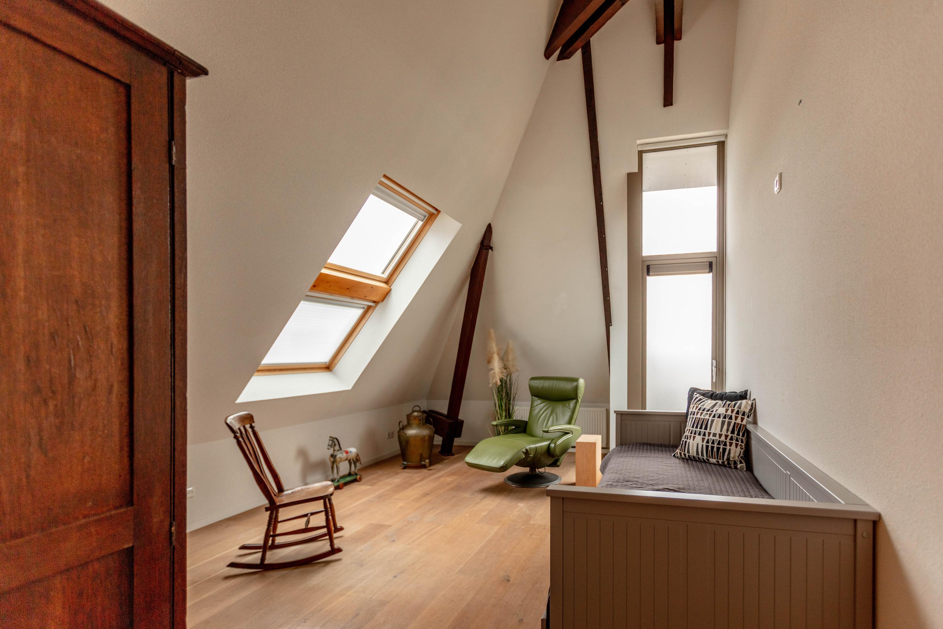 De bijzonder sfeervolle woonkamer is indrukwekkend door de unieke hoogte en fraaie zichtbare kapconstructie. De open keuken bevindt zich aan de achterzijde en beschikt over een kookeiland, volop kastruimte en diverse inbouwapparatuur. Vanuit de keuken is er prettig zicht op de woonkamer met een gezellig zitgedeelte en een apart eetgedeelte.