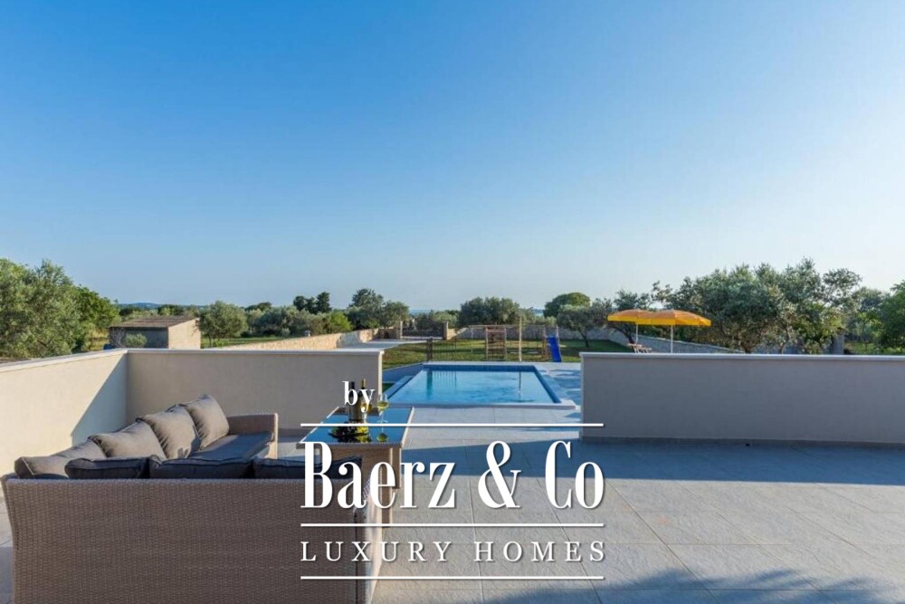 تقدم فيلا فازانا حضوراً راقياً على ساحل إستريا، مع ميزة الإطلالة النادرة على منتزه بريجوني الوطني. شُيدت الفيلا على أرض بمساحة 2,237 متر مربع، وتتموضع بعناية على بُعد 700 متر فقط من الشاطئ، ما يوازن بين الاندماج في الطبيعة وسهولة الوصول إلى أجمل شواطئ كرواتيا.