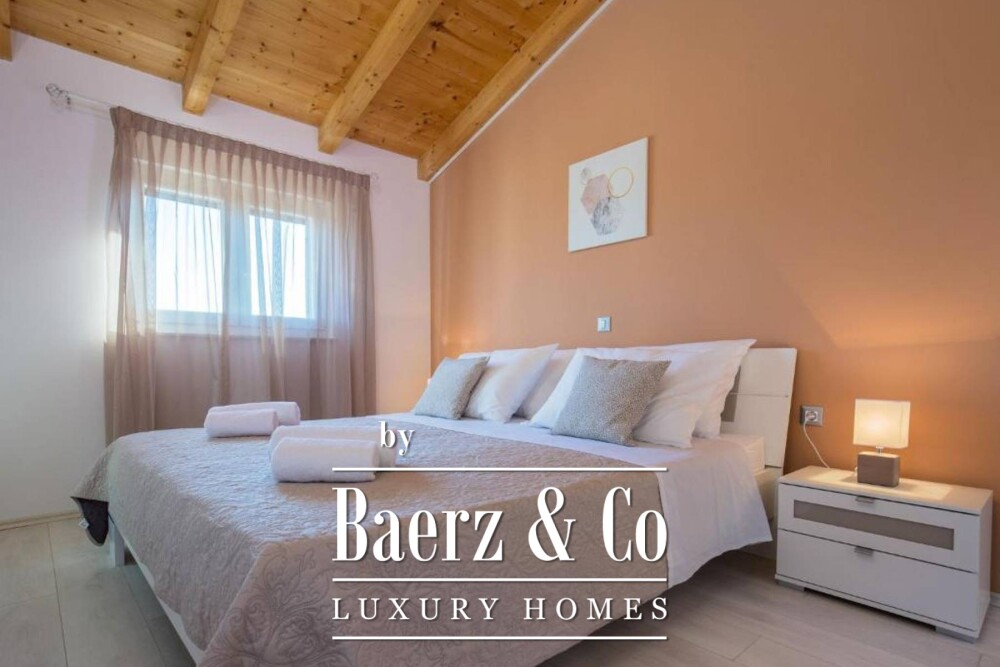 تحتوي هذه الملكية على مساحة سكنية تبلغ 180 متر مربع، وتتبنى أسلوب الإشراق والخصوصية. يبدأ الطابق الأرضي من مطبخ مصمم خصيصاً ويؤدي إلى غرفة معيشة واسعة ومنطقة لتناول الطعام، كل منها يتصل بسلاسة بالتراسات وحوض السباحة والحدائق الناضجة. تطل ثلاث غرف نوم في الطابق العلوي على أرخبيل بريجوني– ليكون كل منظر بمثابة حوار يومي مع الأرض والبحر والسماء. هناك ثلاث حمامات موزّعة بعناية لدعم الاحتياجات اليومية والاسترخاء معاً.