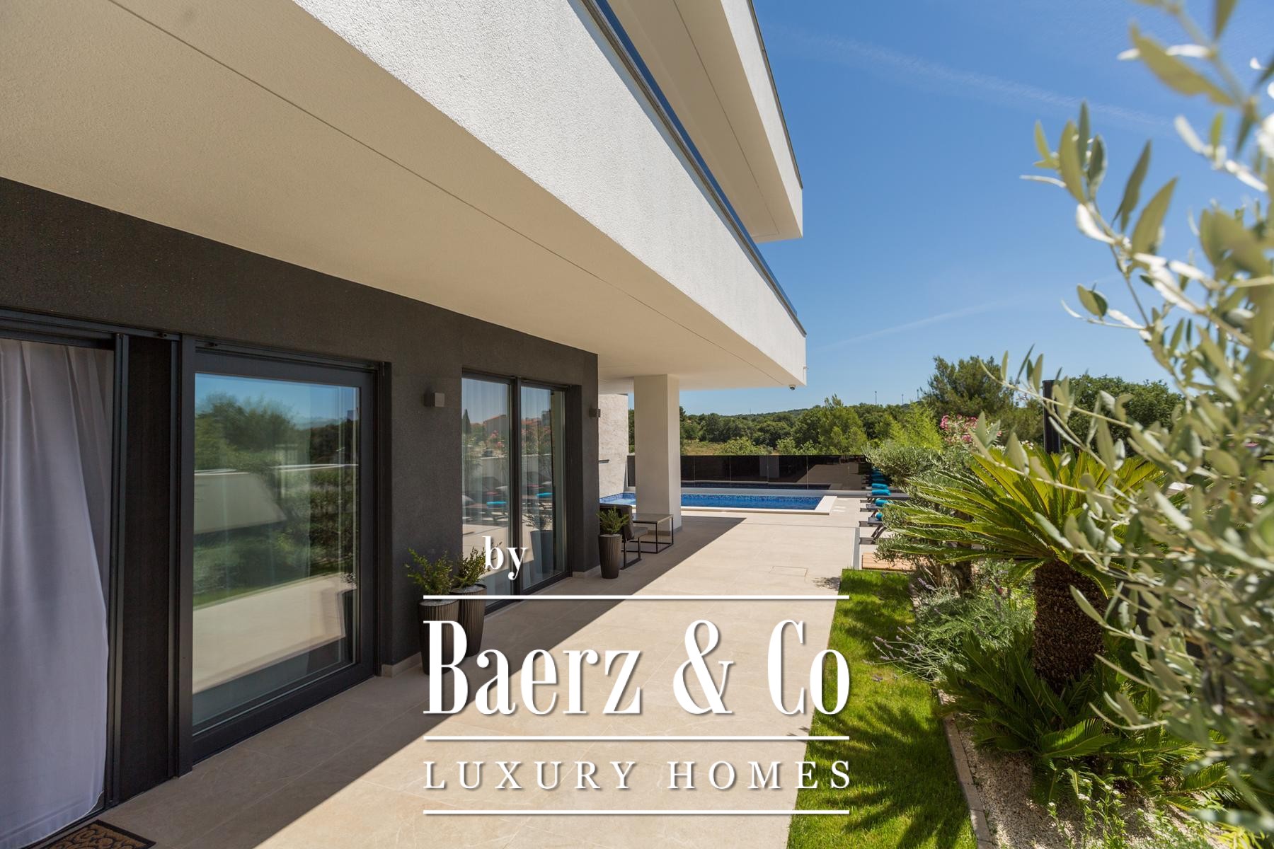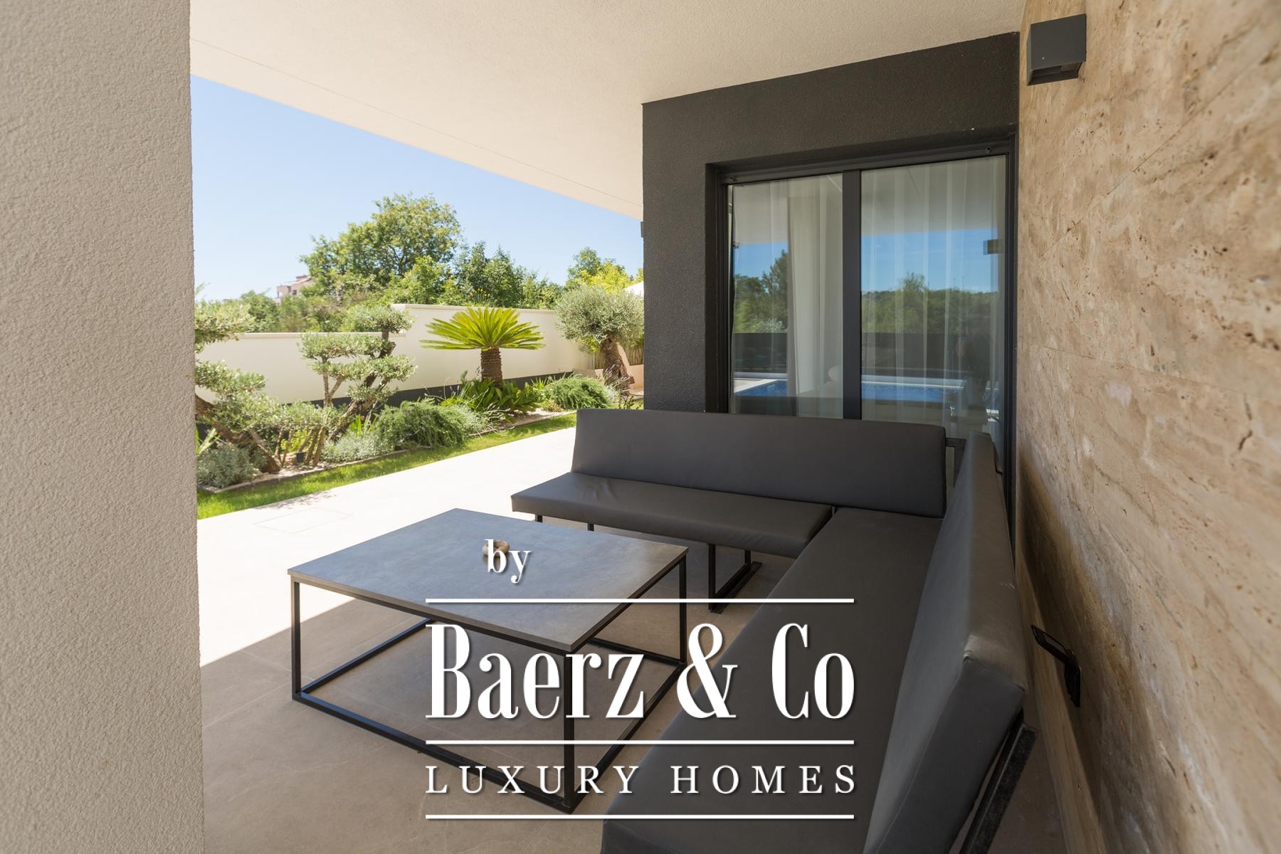 تاون هاوس ميدولين هو فيلا معاصرة تقع في إحدى المناطق الساحلية المرغوبة بإستريا. تم الانتهاء من بناء هذا المسكن الجديد عام 2024، ويقع على قطعة أرض تبلغ مساحتها 450 م² على بُعد 400 متر فقط من البحر الأدرياتيكي، مع توجه جنوبي مدروس يضمن إضاءة الطبيعة طوال اليوم. يمتد تاون هاوس ميدولين على مساحة 200 م² موزعة على مستويين، موفراً انتقالاً سلساً بين المساحات الداخلية والخارجية. في الداخل، تحتل المطبخ العصري مكانة مركزية في الطابق الأرضي المفتوح، ويتصل بمساحة معيشة واسعة. تسمح النوافذ الكبيرة بدخول الضوء الطبيعي وتوفر إطلالات على المساحات الخضراء، مع إمكانية الوصول المباشر إلى تراس مسقوف وحوض سباحة جذاب. يتميز الفناء الخارجي بأجواء هادئة، ويضم شلالاً بجدار حجري، ونباتات استوائية مختارة بعناية، ومطبخاً صيفياً، ومنطقة للشواء، مع عناية خاصة لتحقيق الخصوصية وسهولة الاستخدام.