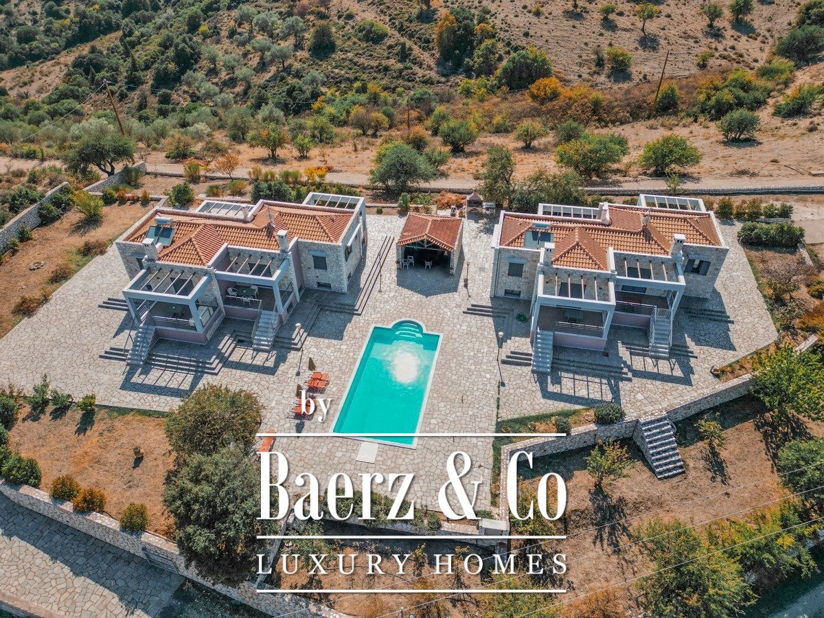 تختلف تصاميم الغرف الرئيسية: تحتوي فيلتان على غرفتي نوم رئيسيتين مع حمام واحد، فيما توفر فيلتان أخريان ثلاث غرف نوم (بما في ذلك غرفة رئيسية) وحمامين لكل منهما. المجموع عبر جميع الفيلات هو ست غرف نوم واثنا عشر حمامًا، مما يضمن الخصوصية والراحة. أنظمة الإنذار، والتدفئة المستقلة، وأنظمة فان كويل، وتكييف الهواء، ونظام تسخين مياه شمسي مدمجة جميعها بشكل غير ملحوظ لراحة عصرية. يبعد المجمع عن أستروس 11 كم، وعن البحر 15 كم، وعن نافبليو 44 كم، مما يجعله ملاذًا هادئًا مع وصول استراتيجي. لمن يبحث عن فيلا فاخرة للبيع في أورييني ميليغو، يقدم هذا المجمّع مثالًا للأناقة المقيدة وإمكانية الاستثمار.