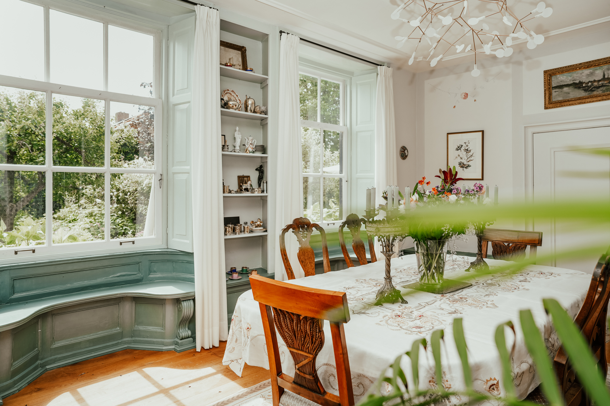 في الخارج، تشكل الشرفات الفسيحة ومسبح مدفأ بطول 10 أمتار تحيط به أشجار الفاكهة وأحواض الزراعة المرتفعة ملاذًا خاصًا. وخارج الأسوار النباتية، تقدم روسوم حياة قروية حميمة تحيط بها مناظر أنهار، وعلى بُعد دقائق من طريق A2 السريع المؤدي بسرعة إلى أوترخت وأمستردام. يُعد عقار روسوم الريفي من أكبر مجمعات المزارع في المنطقة، موفرًا مزيجًا نادرًا من المساحة والراحة والأصالة.