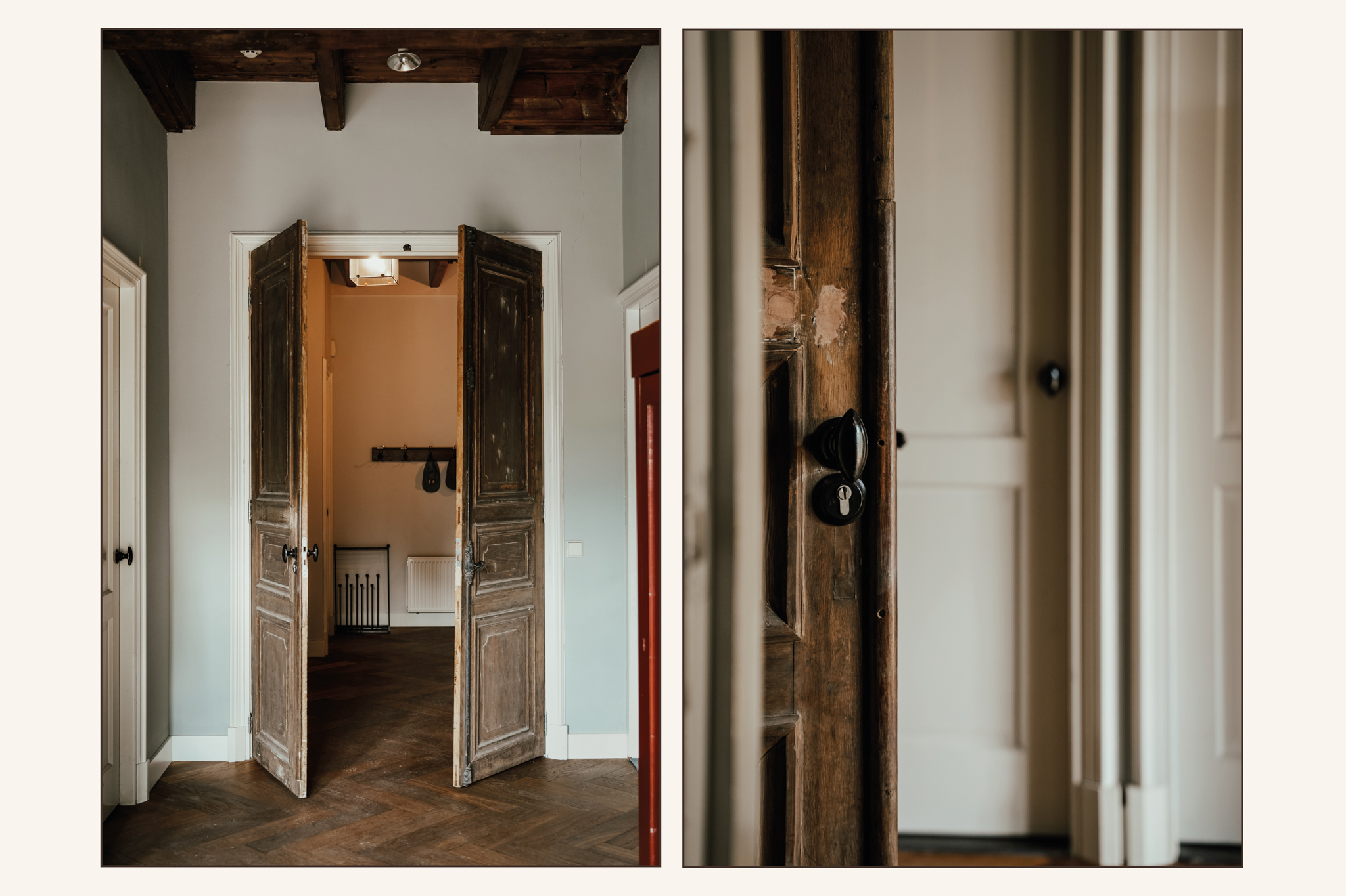 في الأعلى، تتقاسم ثلاث غرف نوم وحمامين الطابق الأول مع مكتب مشرق تحت السقف المصنوع من القش، مجهز للعمل أو الاسترخاء. وتكتمل الطوابق العليا بغرفتي نوم إضافيتين، وحمام رابع، وعليّة لعب، جميعها مزودة بأجهزة تحكم حرارية عصرية توفر التدفئة أو التبريد، بالإضافة إلى أنظمة كفاءة طاقة تؤمن تصنيف طاقة +A.