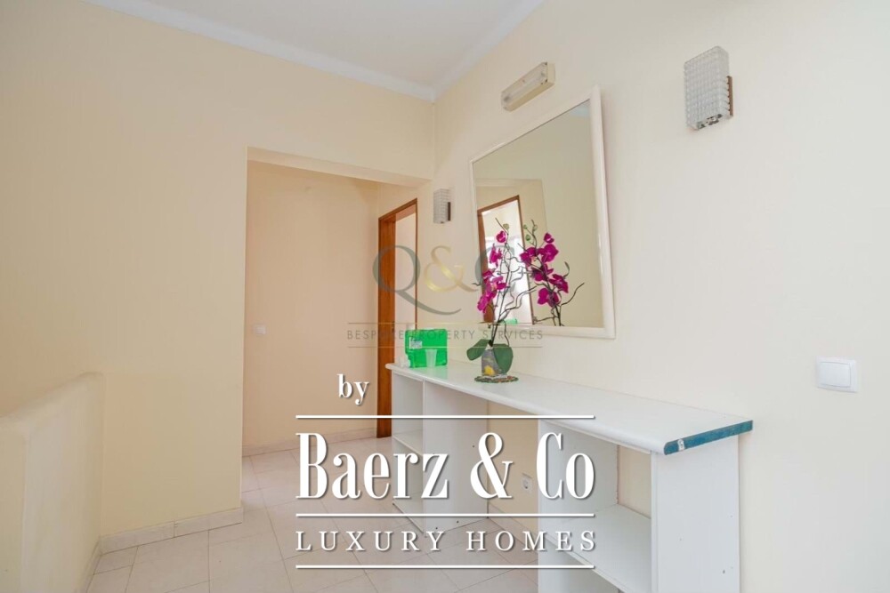 في الطابق العلوي، تستقبل ثلاث غرف نوم إضافية الضوء الطبيعي، من بينها غرفة رئيسية مع حمام خاص وغرفتان تتشاركان حمامًا ثالثًا. تفتح غرفتا نوم على تراسات خاصة، فيما تؤدي السلالم إلى شرفة على السطح تطل باتجاه البحر. تم تصميم المساحات الخارجية للاستمتاع بالسكينة، بمسبح مواجه للجنوب، وتراسات واسعة، ودش خارجي وسط الحديقة. يوجد بئر ماء يغذي نظام المياه والصرف الرئيسي، ويدعم إمكانيات تنسيق الحدائق. توفر مواقف سيارات واسعة ومرآب راحة إضافية مع الحفاظ على الخصوصية. تمثل هذه الفيلا المعروضة للبيع في سانتا باربارا دي نيشي تجسيدًا هادئًا لإيقاعات الحياة الجنوبية البرتغالية وجمالها الطبيعي.