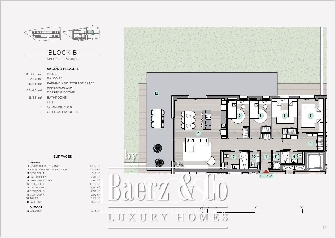 تتميز المساحات الداخلية بمواد بسيطة ومساحات تخزين مدمجة مصممة خصيصاً، بينما يتم إثراء أسلوب الحياة الخارجي بشرفة لكل وحدة وحدائق مصممة للخصوصية وإطلالات بانورامية على سيتجيس والبحر. وتشمل وسائل الراحة المشتركة حديقة متوسطية مزروعة بنباتات طبيعية، حمام سباحة، مناطق استرخاء على السطح بأسِرّة بالي، ومسارات للمشي حيث ينعم السكان بلحظات اجتماعية وفردية على حد سواء. يوفر المرآب الآمن تحت الأرض وغرف التخزين المخصصة راحة إضافية وطمأنينة.