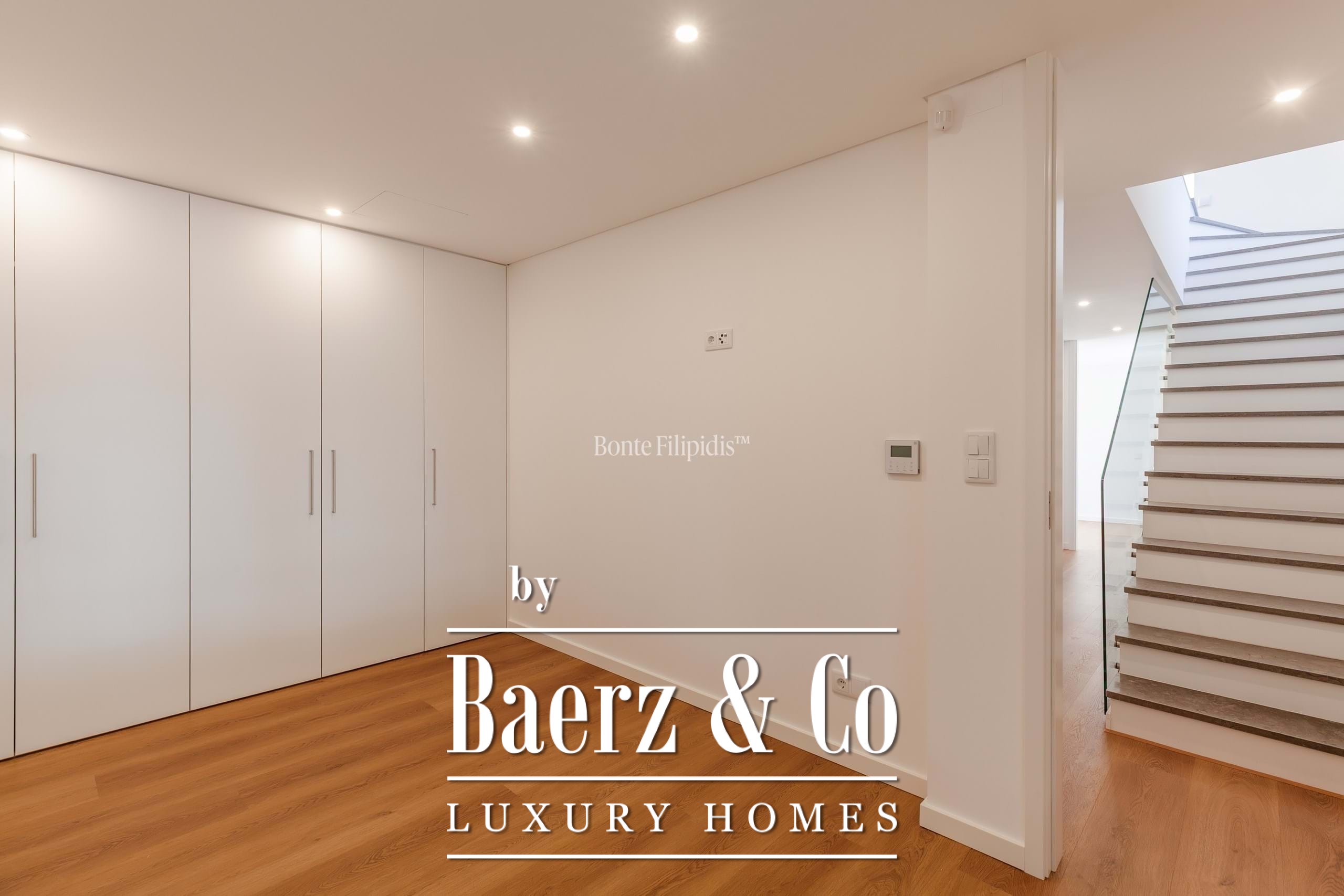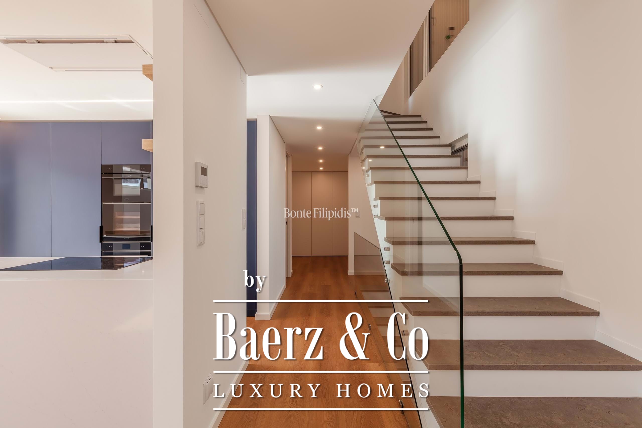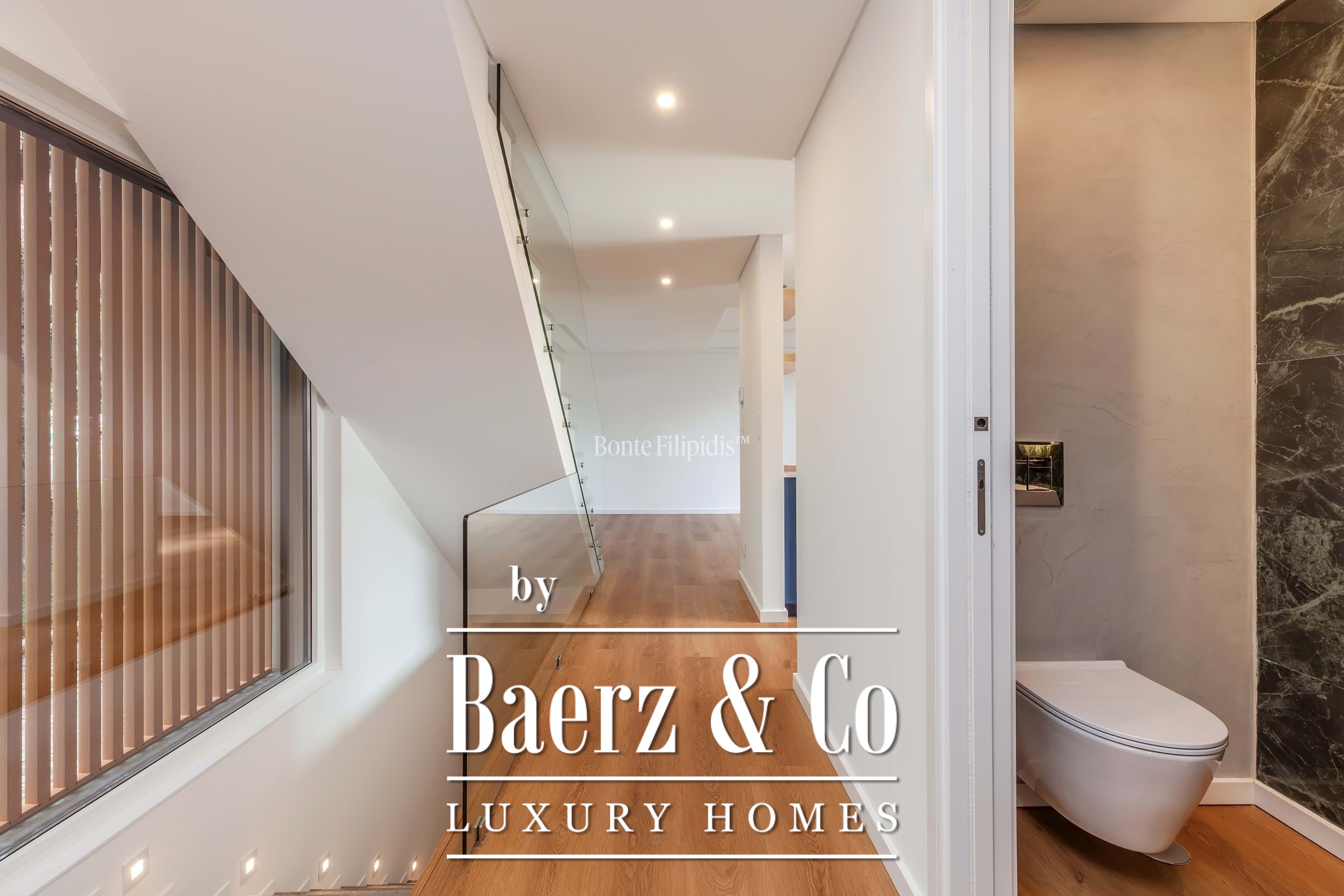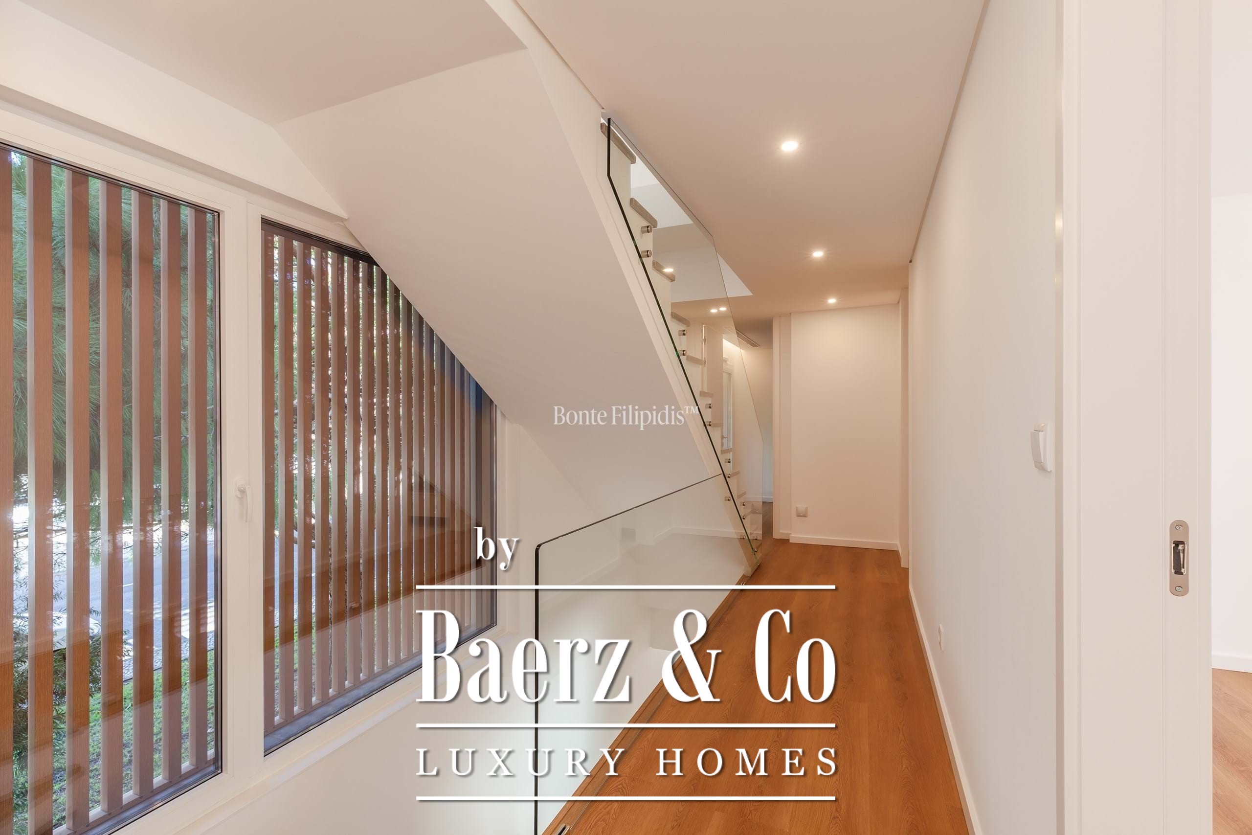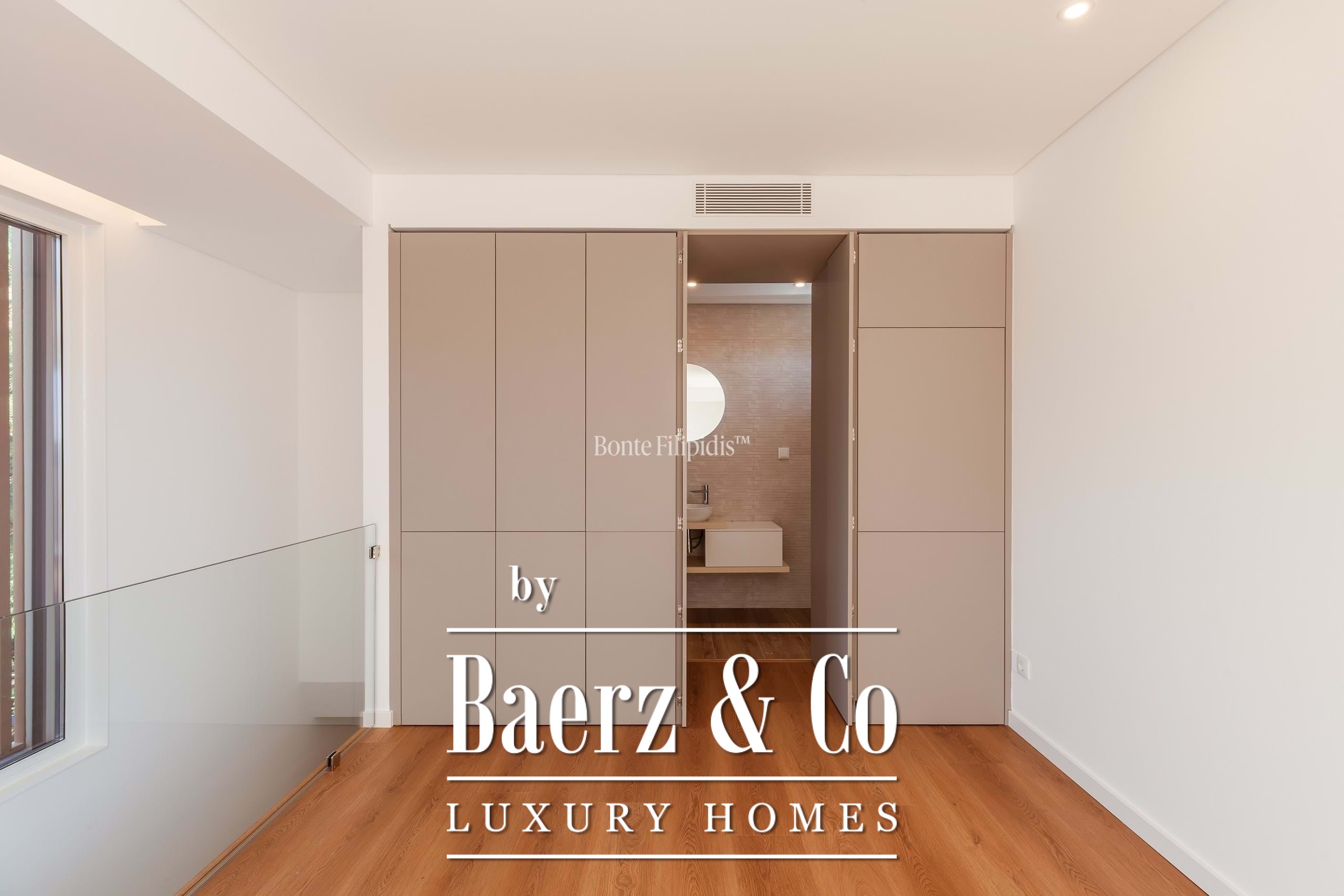 Dieses Stadthaus in Carcavelos e Parede vereint zeitgenössische Architektur mit einer zurückhaltend eleganten Wohnatmosphäre und erstreckt sich über 217 m² auf drei durchdachten Ebenen. Die offene Küche, ausgestattet mit erstklassigen Geräten, geht harmonisch in den Wohnbereich über und schafft helle, lichtdurchflutete Räume mit fließendem Übergang zur Außenterrasse und den gestalteten Außenbereichen. Eine zusätzliche Suite im Eingangsbereich sorgt für Vielseitigkeit und Privatheit, ideal für Gäste oder flexible Wohnkonzepte.