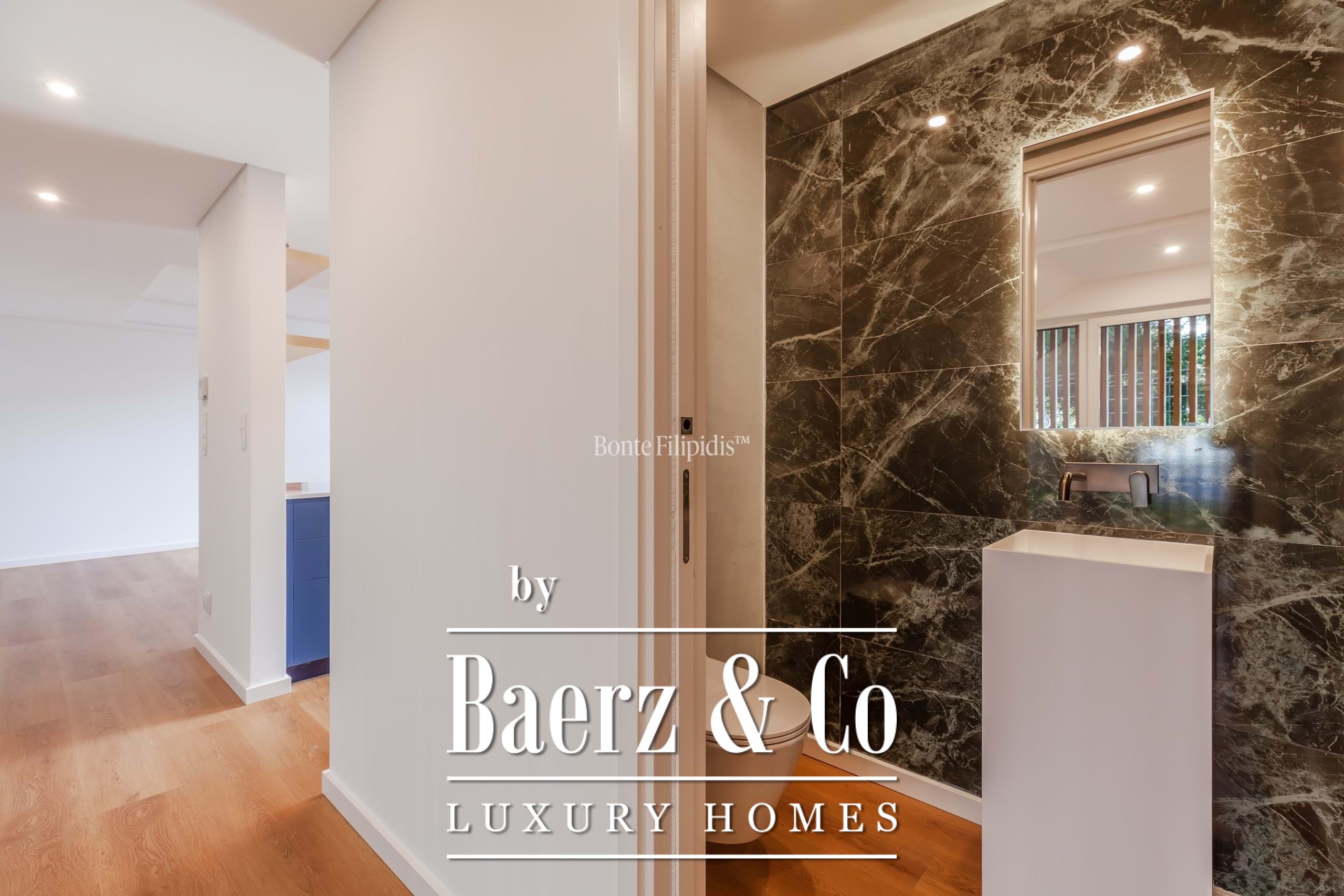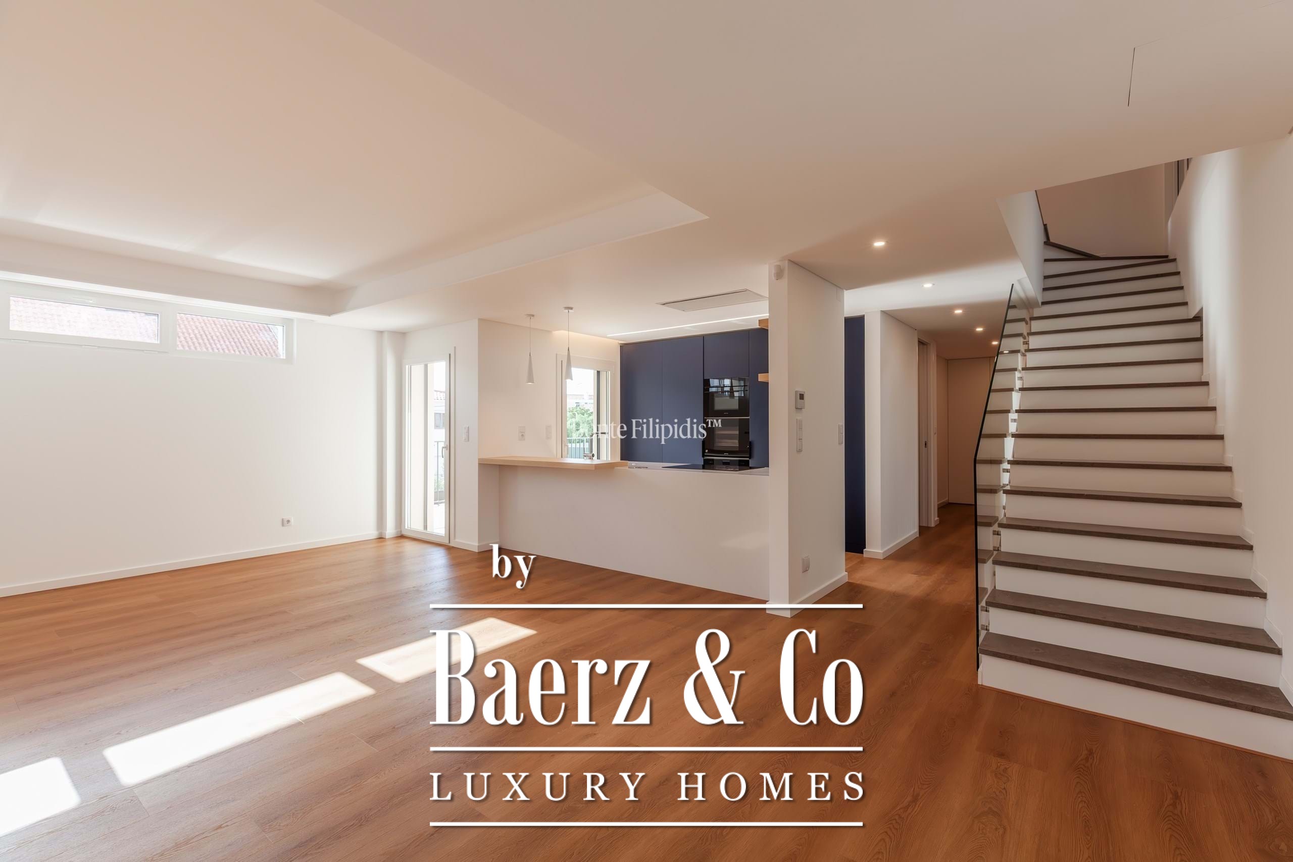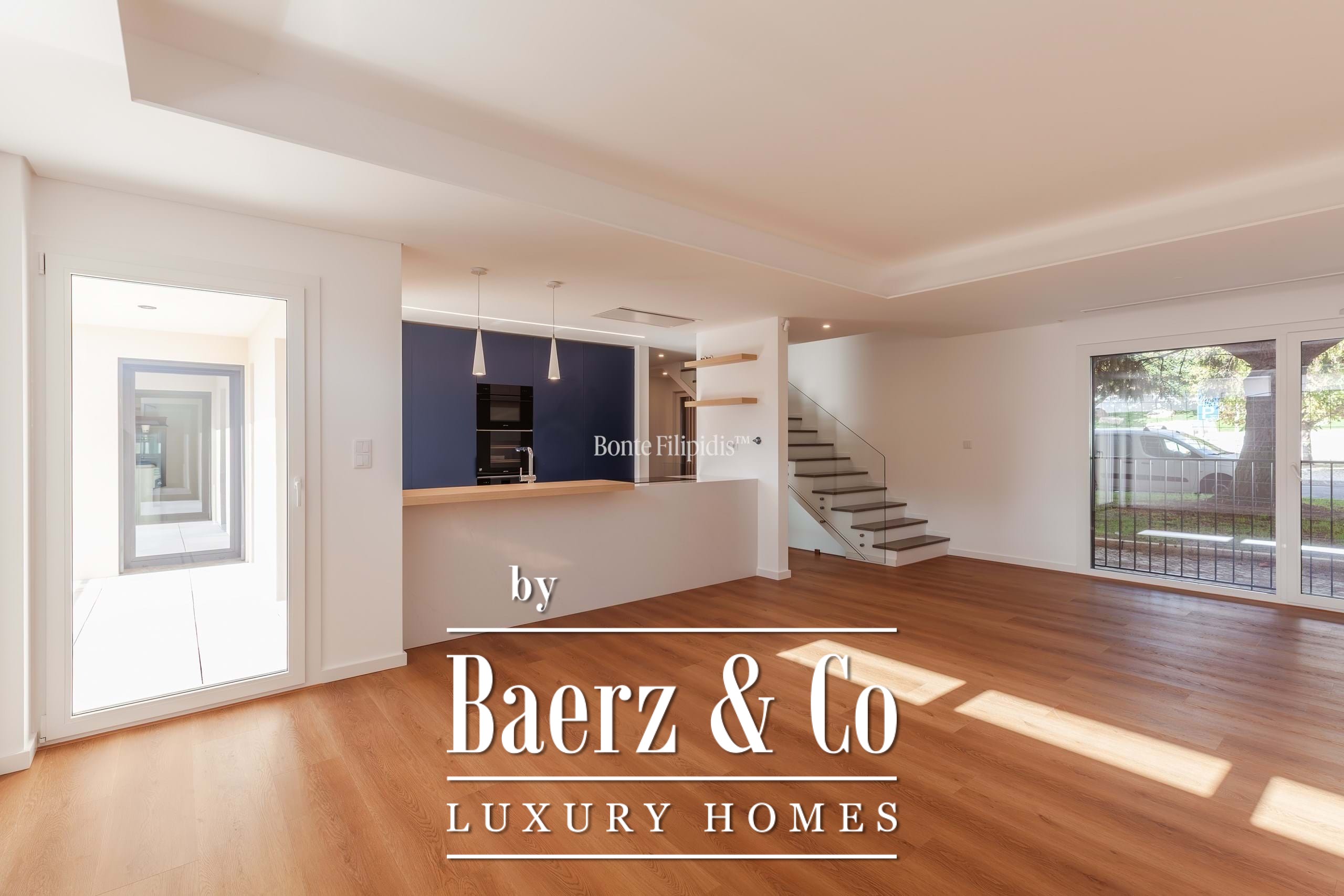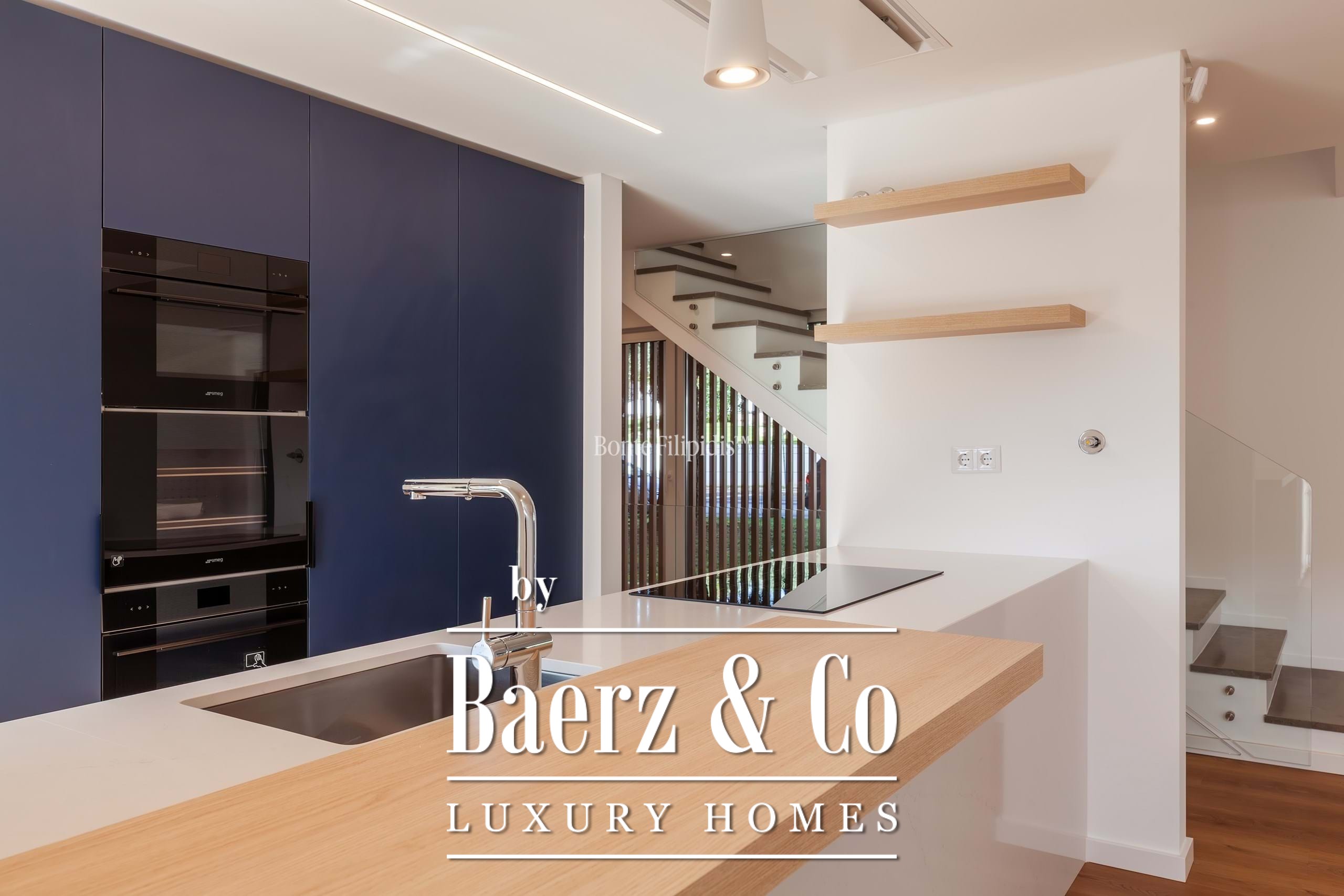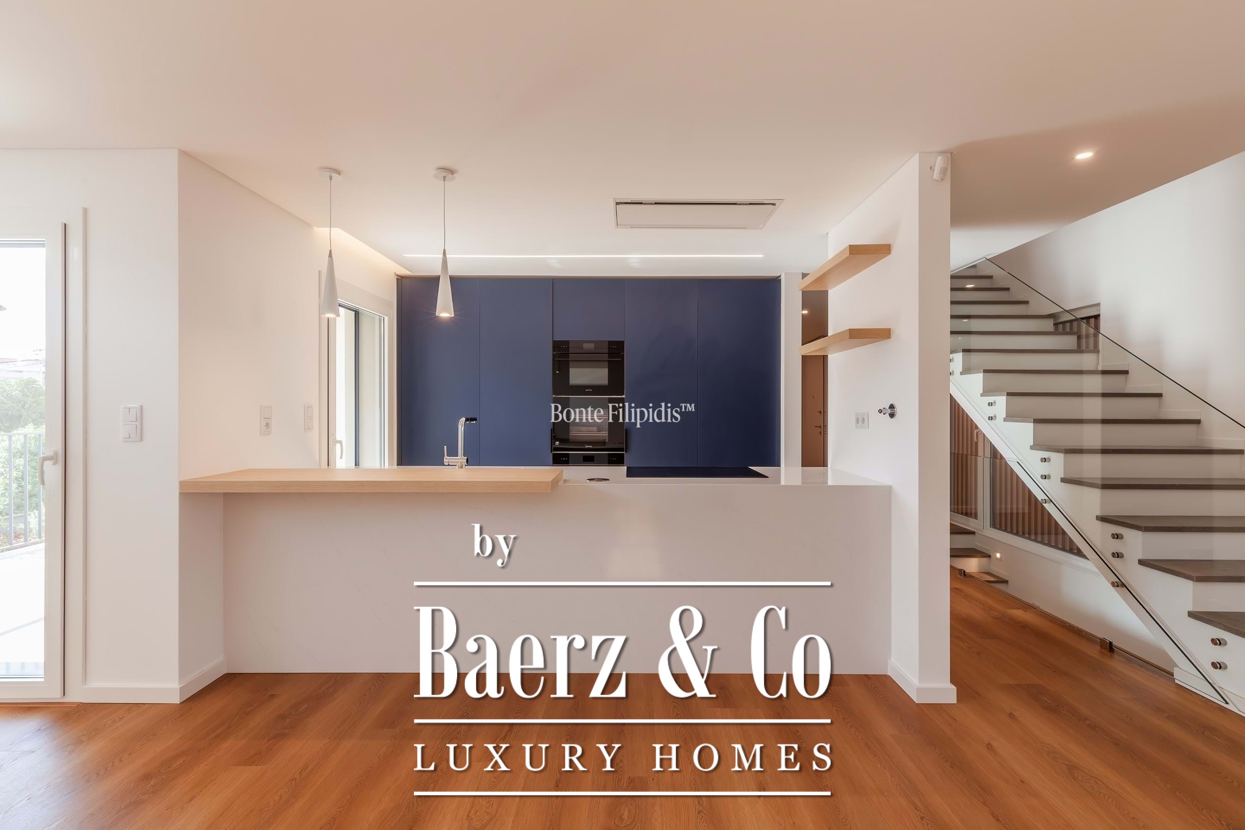 Dieses Stadthaus in Carcavelos e Parede vereint zeitgenössische Architektur mit einer zurückhaltend eleganten Wohnatmosphäre und erstreckt sich über 217 m² auf drei durchdachten Ebenen. Die offene Küche, ausgestattet mit erstklassigen Geräten, geht harmonisch in den Wohnbereich über und schafft helle, lichtdurchflutete Räume mit fließendem Übergang zur Außenterrasse und den gestalteten Außenbereichen. Eine zusätzliche Suite im Eingangsbereich sorgt für Vielseitigkeit und Privatheit, ideal für Gäste oder flexible Wohnkonzepte.