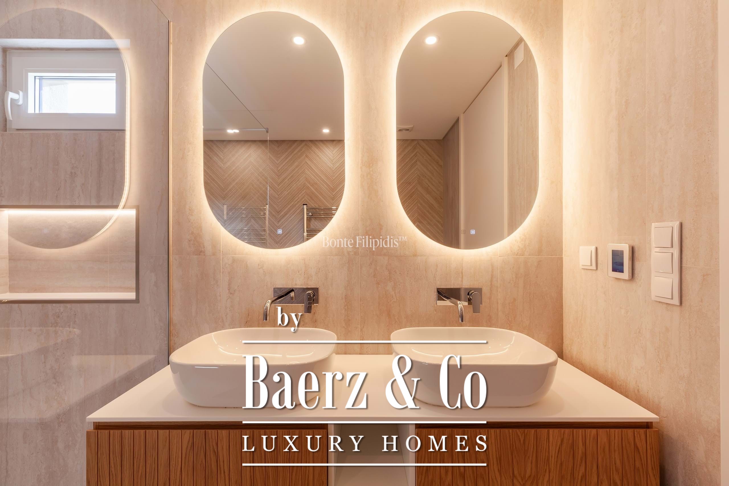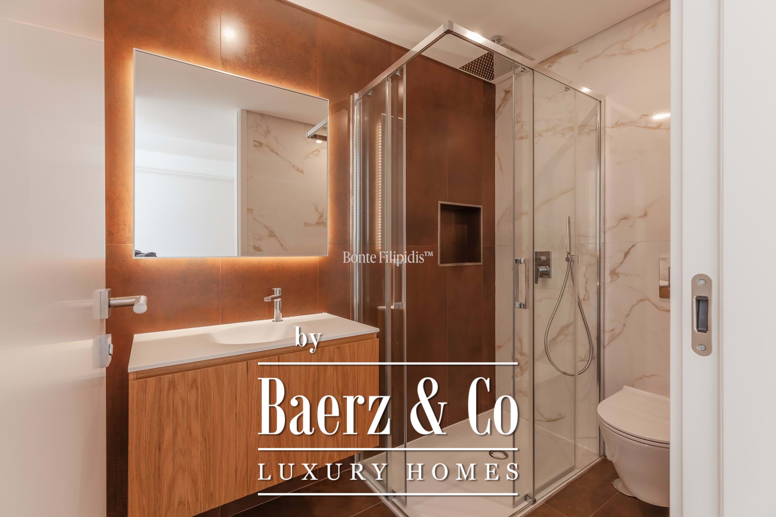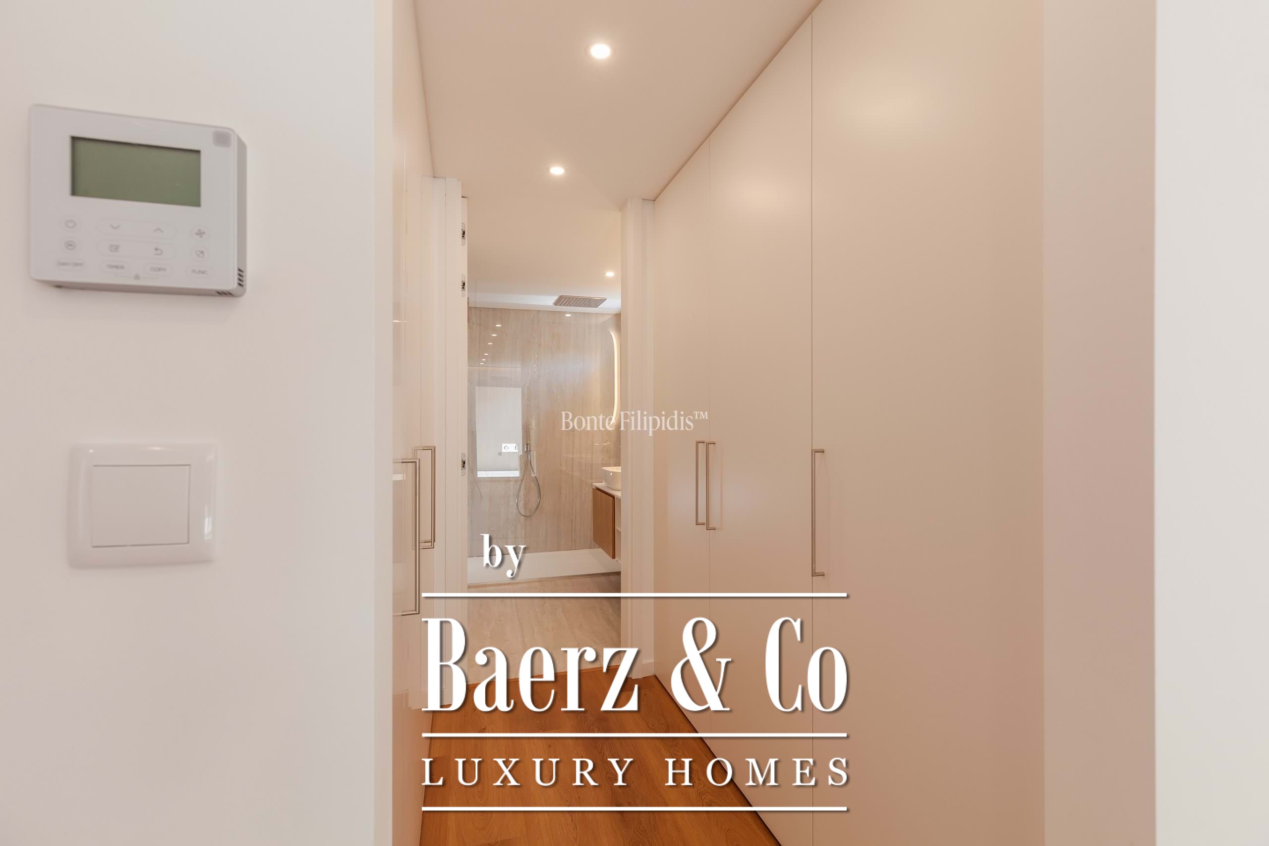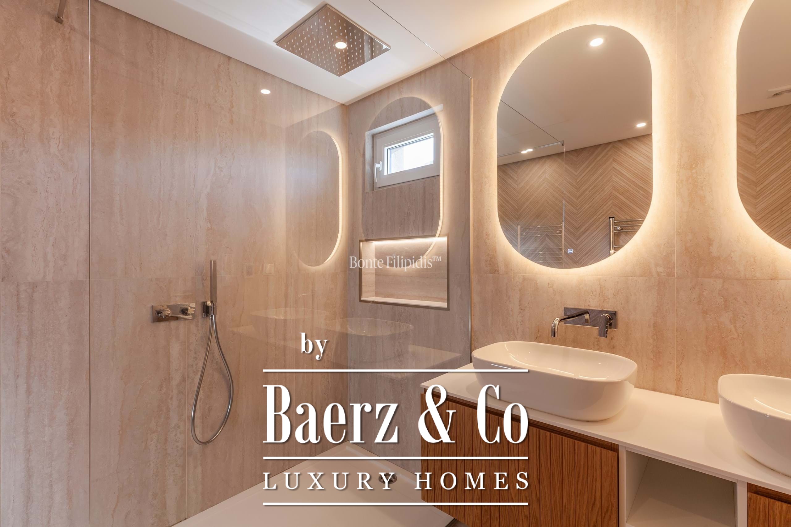 Im Obergeschoss bietet die Hauptsuite einen begehbaren Kleiderschrank; zwei weitere Schlafzimmer und ein gemeinsames Bad schaffen Raum für das Familienleben. Das vielseitig nutzbare Zimmer im Dachgeschoss mit eigenem Badezimmer und Zugang zur großzügigen Terrasse bildet einen perfekten Rückzugsort für Sonnenuntergänge, Erholung und ruhige Momente unter dem Küstenhimmel. Jedes Badezimmer ist mit elektrischer Fußbodenheizung ausgestattet; Nachhaltigkeit ist durch Solarpaneele und eine vorinstallierte Ladestation für Elektrofahrzeuge fest integriert.