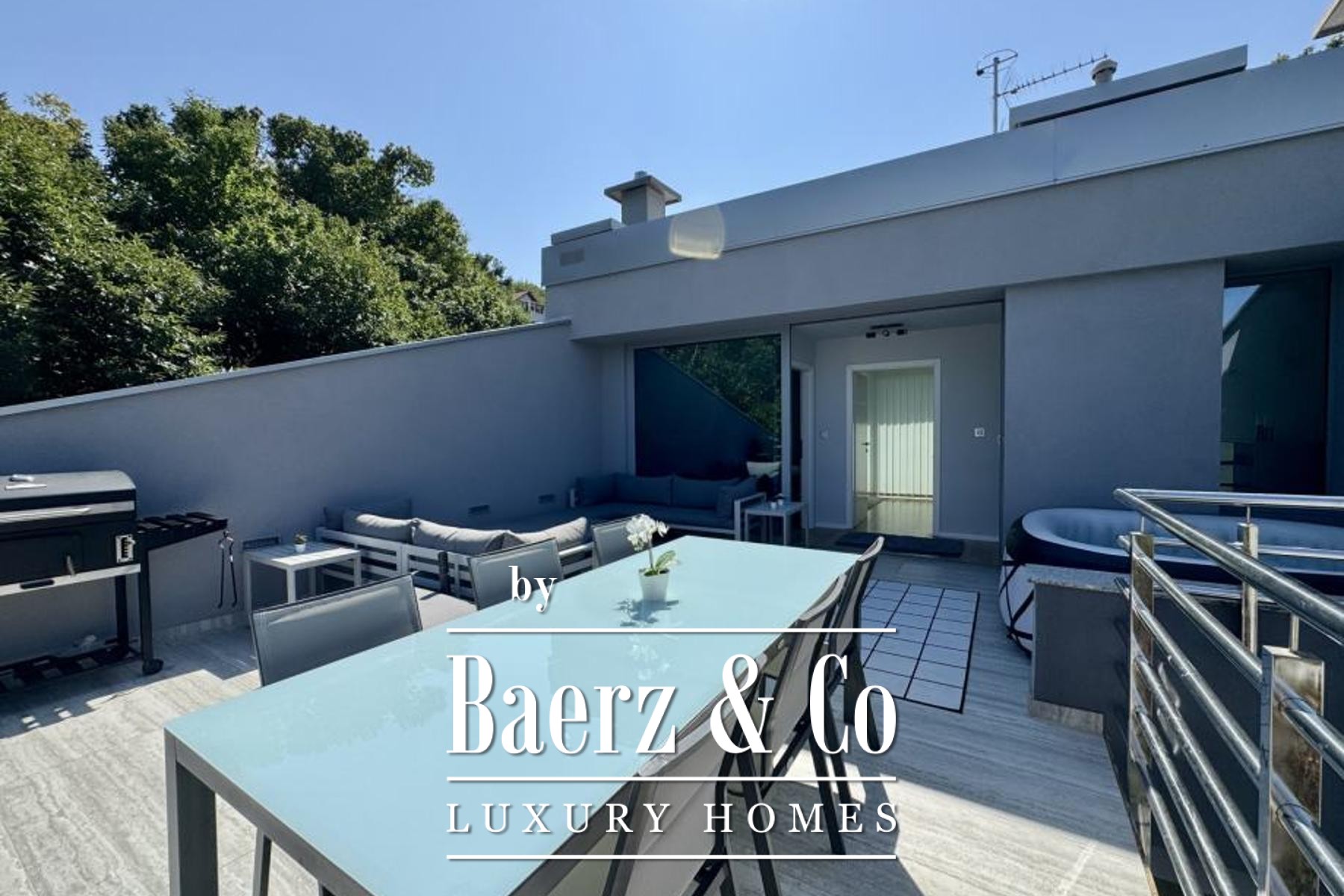 Auf der dritten Etage erstreckt sich das Hauptschlafzimmer zu einer überdachten Terrasse und Ensuite-Bad, die in eine großzügige 40 m² große Dachterrasse mit Jacuzzi führt – mit Aussicht auf Sljeme sowie die Stadt im Norden und Osten. Ein Garten, großzügige Parkmöglichkeiten für bis zu fünf Fahrzeuge und aktuelle Modernisierungen – darunter neues Dach, Fassade, Terrassen mit italienischer Keramik, modernisierte Beleuchtung und Daikin-Klimaanlage – unterstreichen den zeitgemäßen Komfort. Diese luxuriöse Wohnung zum Verkauf in Podsljeme, diskret in einer ruhigen Sackgasse gelegen, bietet eine außergewöhnliche Perspektive auf das anspruchsvolle Leben in Zagreb.