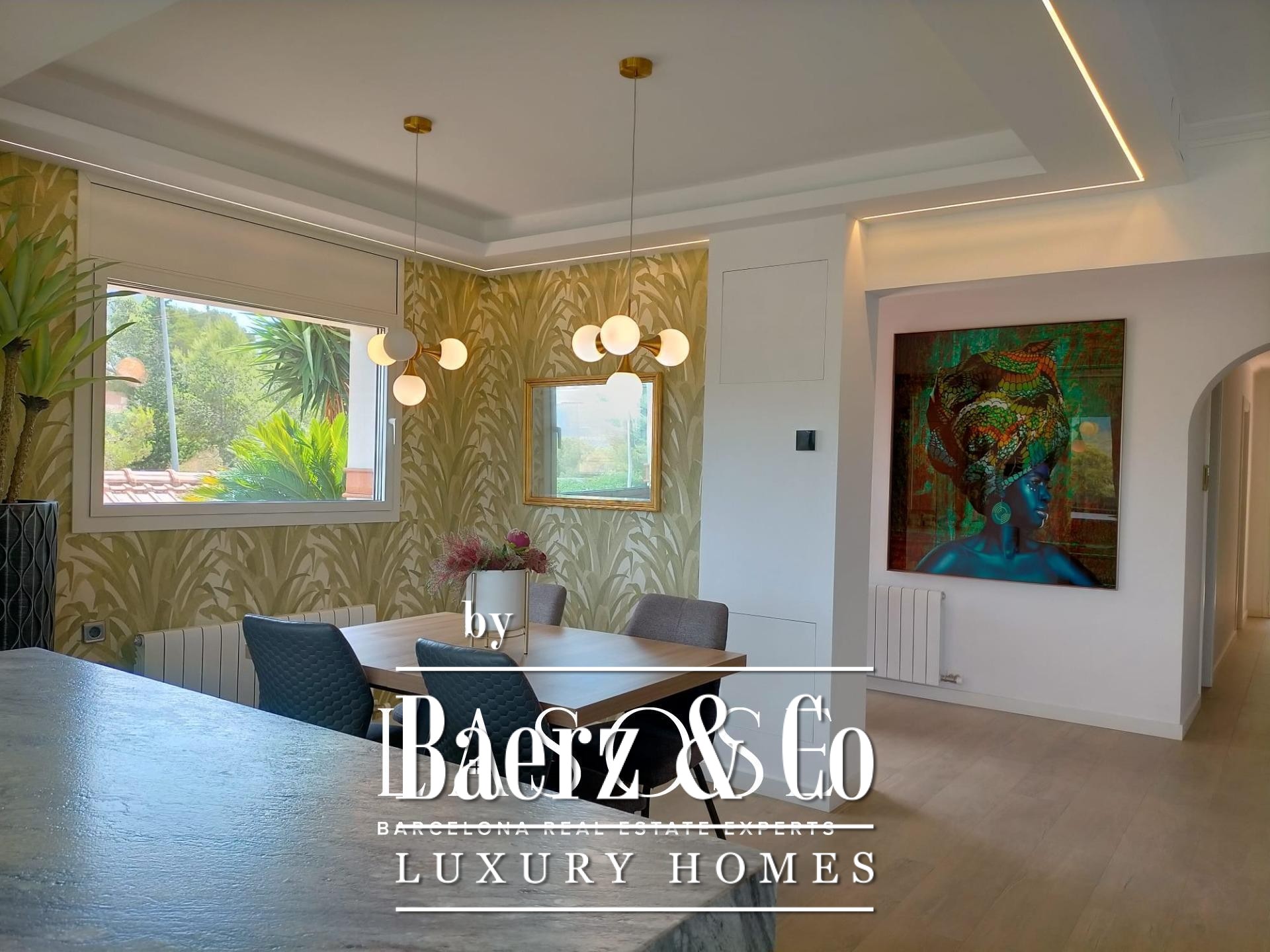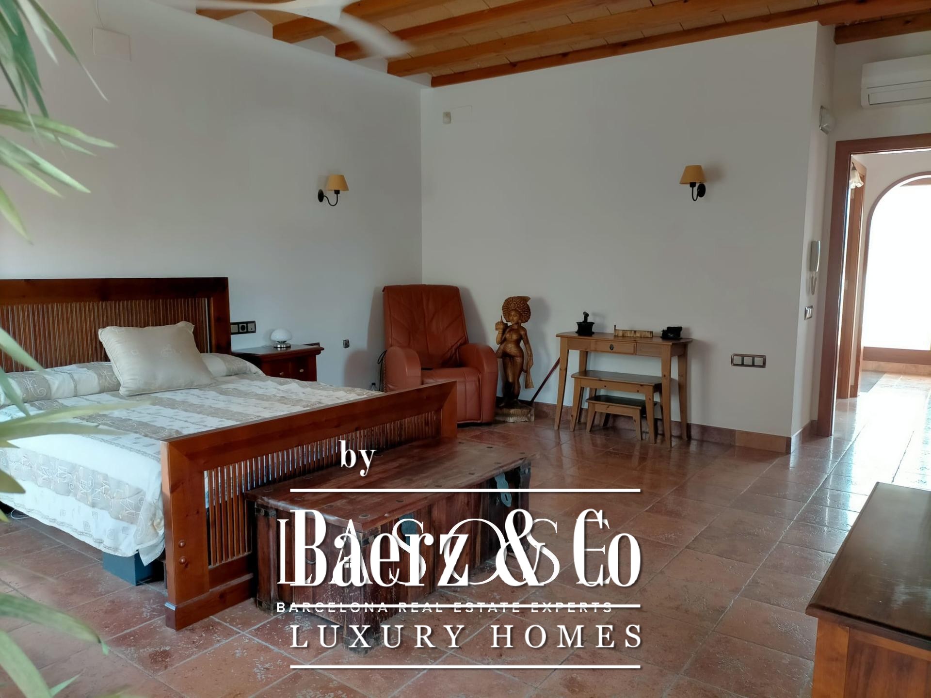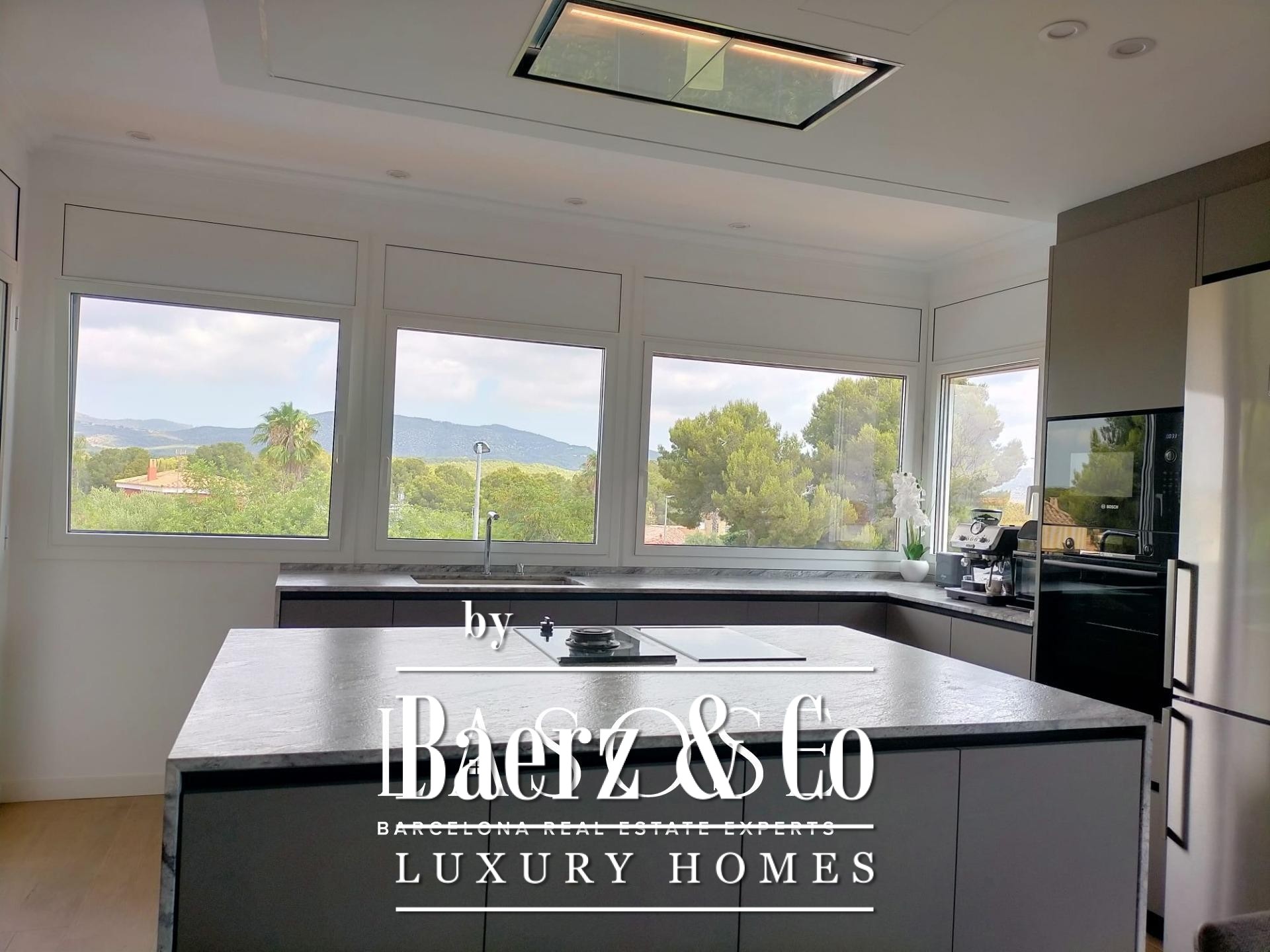 Die Villa Sant Pere de Ribes befindet sich ruhig gelegen im angesehenen Wohngebiet Els Cards, zwischen Sitges und Sant Pere de Ribes, wo Privatsphäre und Panoramablicke jeden Wohnmoment prägen. Diese Villa mit fünf Schlafzimmern und drei Bädern vereint traditionelle spanische Architektur mit zeitgemäßer Raffinesse. Die kürzlich renovierten Innenräume bewahren authentische Details wie Rundbögen und natürliche Texturen und bringen gleichzeitig klare, moderne Linien und warme Farbtöne ein. Das offene Hauptgeschoss verbindet Küche, Ess- und Wohnbereich fließend und wird durch Sonnenlicht aus Fenstern auf zwei Seiten erhellt. Ein markanter Kamin bildet das Herzstück des Wohnbereichs und schafft das ganze Jahr über einen einladenden Treffpunkt.