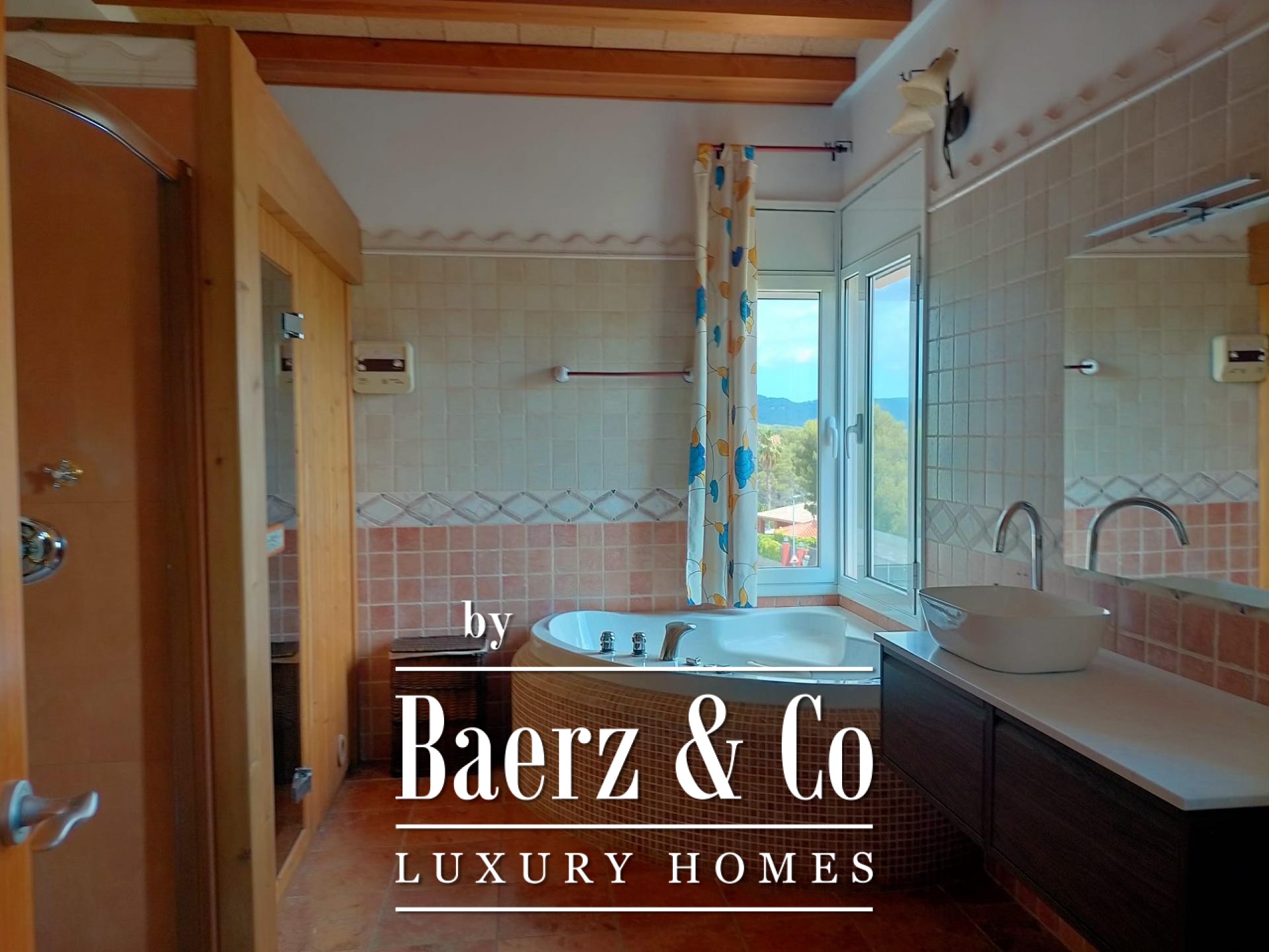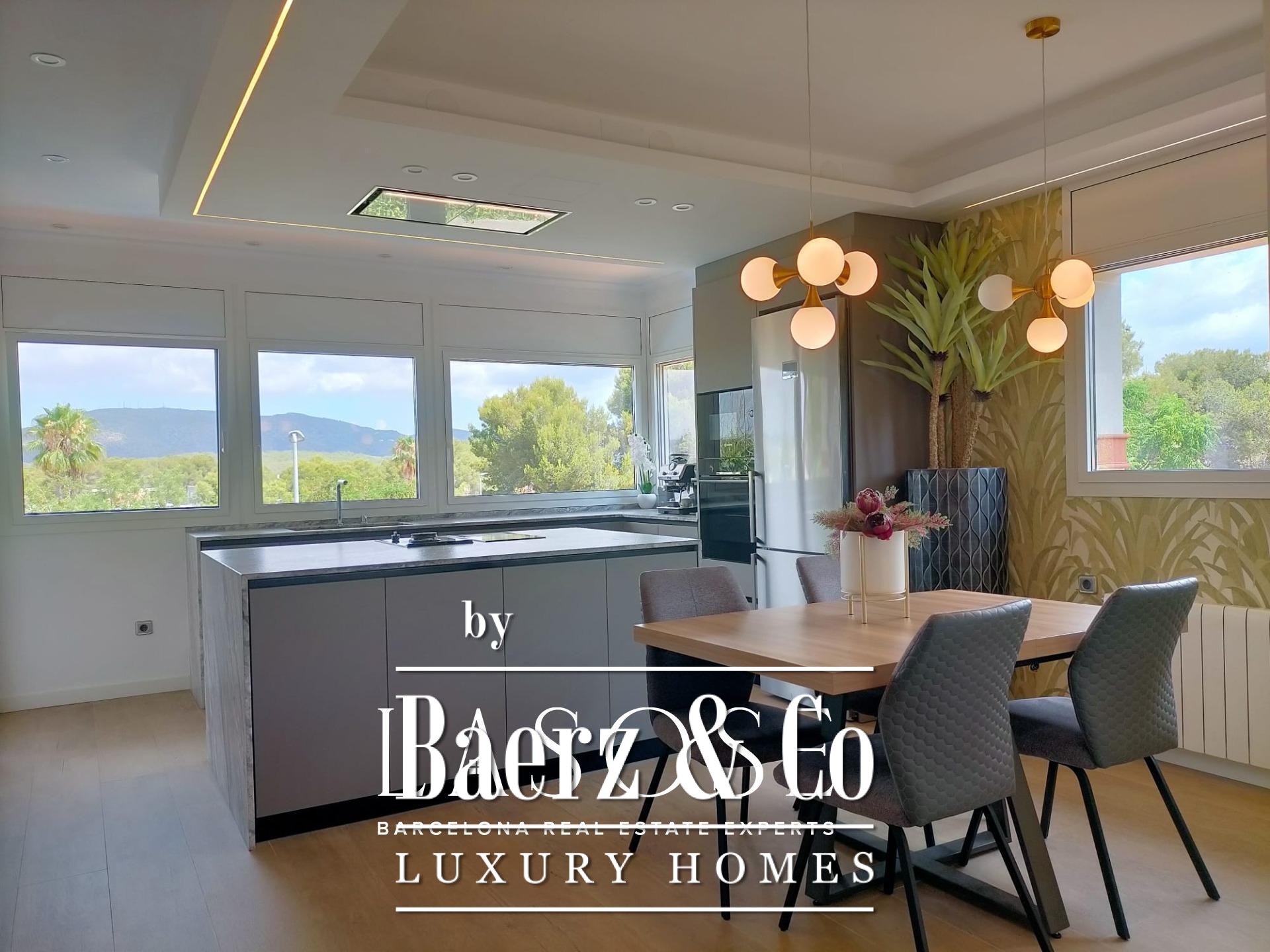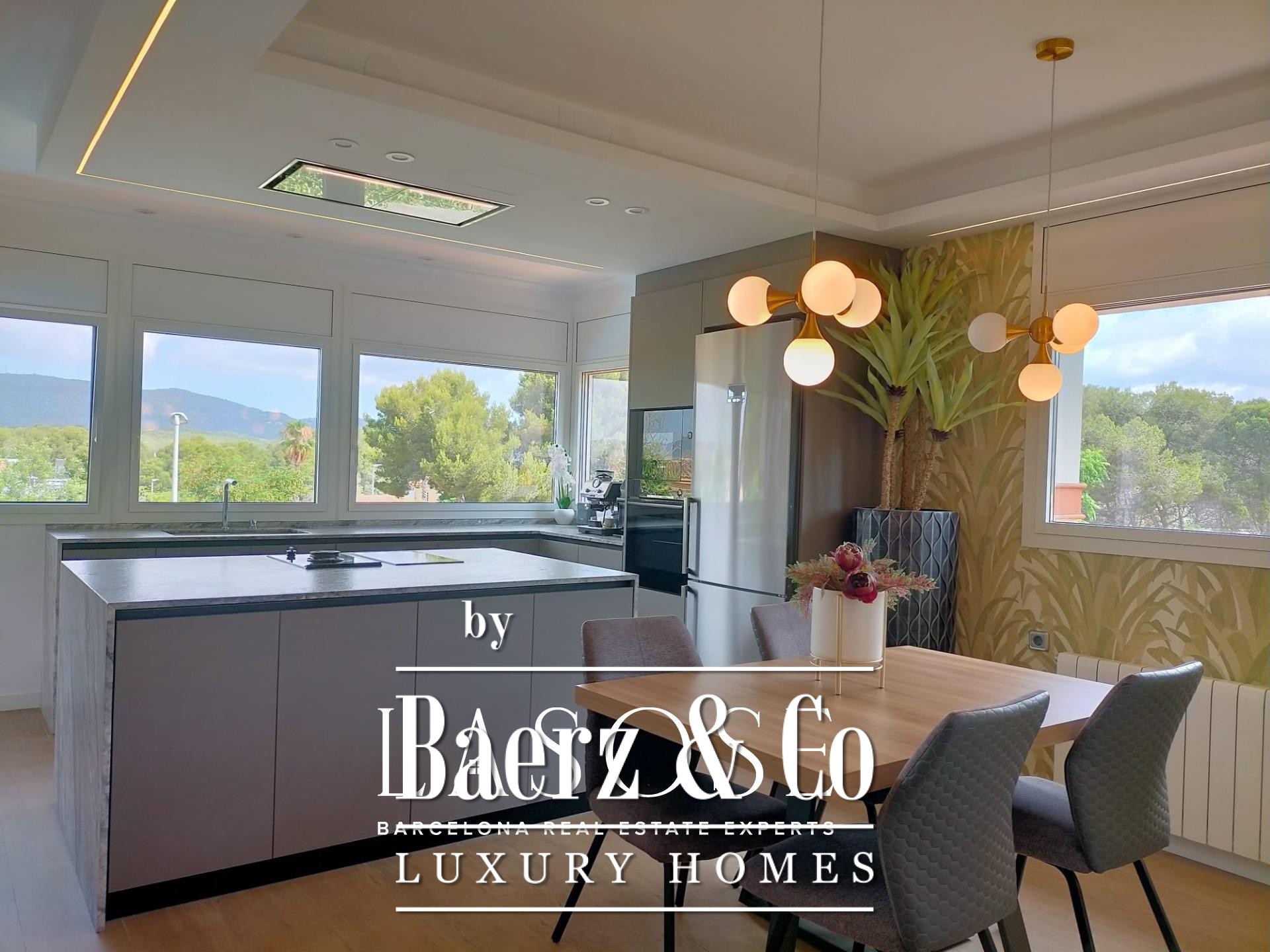Die Villa Sant Pere de Ribes befindet sich ruhig gelegen im angesehenen Wohngebiet Els Cards, zwischen Sitges und Sant Pere de Ribes, wo Privatsphäre und Panoramablicke jeden Wohnmoment prägen. Diese Villa mit fünf Schlafzimmern und drei Bädern vereint traditionelle spanische Architektur mit zeitgemäßer Raffinesse. Die kürzlich renovierten Innenräume bewahren authentische Details wie Rundbögen und natürliche Texturen und bringen gleichzeitig klare, moderne Linien und warme Farbtöne ein. Das offene Hauptgeschoss verbindet Küche, Ess- und Wohnbereich fließend und wird durch Sonnenlicht aus Fenstern auf zwei Seiten erhellt. Ein markanter Kamin bildet das Herzstück des Wohnbereichs und schafft das ganze Jahr über einen einladenden Treffpunkt.