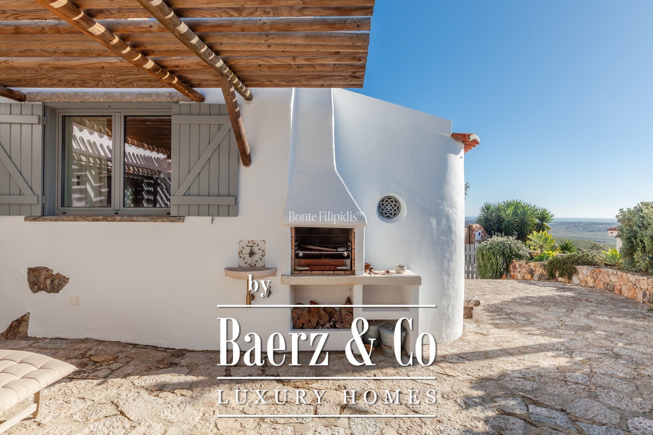 Villa Alcabideche welcomes you to a world of refined calm, nestled in the heart of a natural park with sweeping sea views. This two-bedroom property, recently renovated to a high standard in 2020, offers 130 m² of living space on a 180 m² plot, blending modern convenience with architectural character. The living and dining area, anchored by a cozy fireplace, flows seamlessly into a fully equipped kitchen and onwards to a private patio with a barbecue area, making the villa ideal for both quiet moments and entertaining.