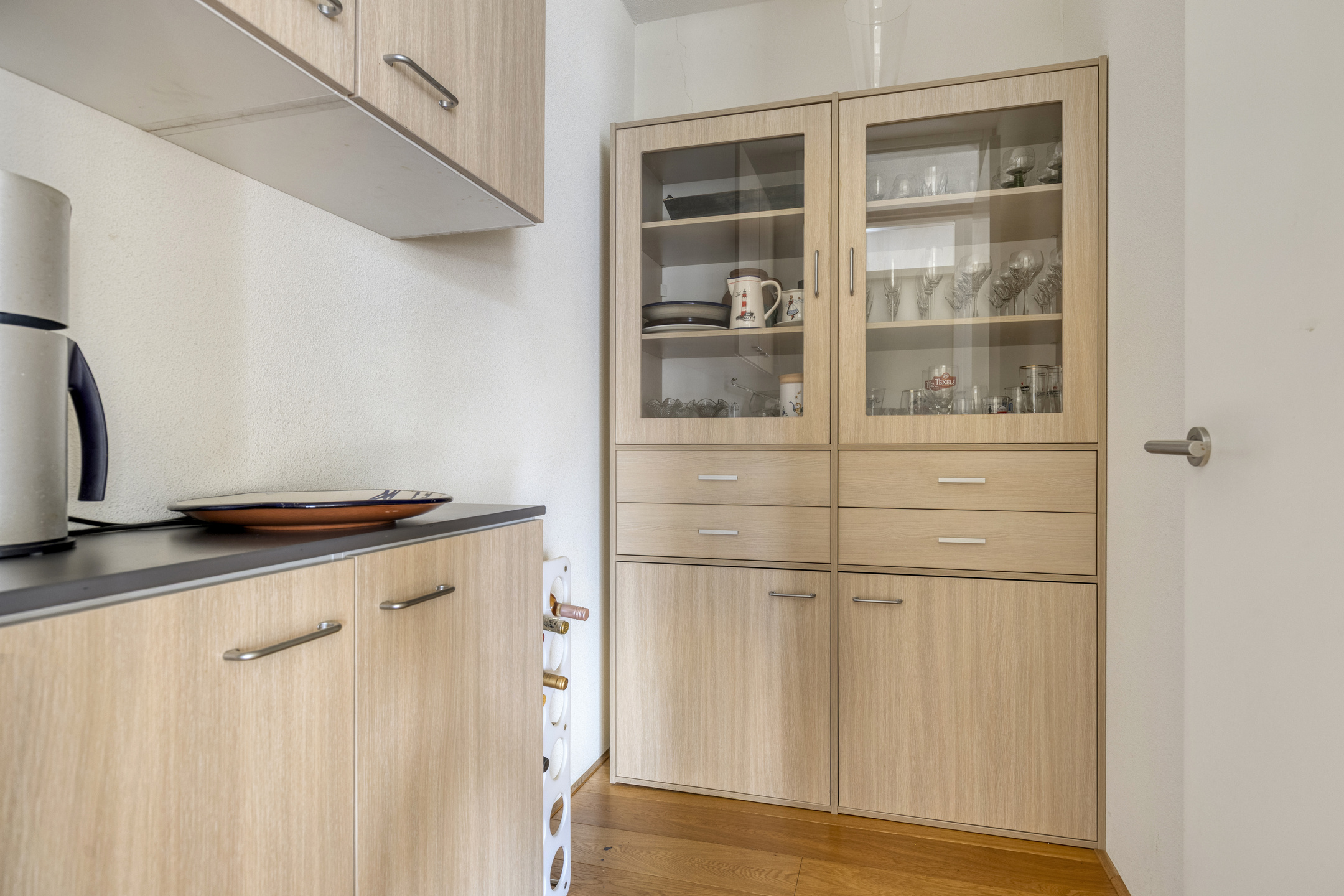Via the central entrance with intercom system you reach the front door of the apartment. The spacious hallway provides access to all rooms. On the right-hand side is a separate toilet with washbasin. Further along the hallway, on the left, is the technical room, which houses the washing machine connection, the WKO (thermal energy storage) installation and the mechanical ventilation system. This room is also highly suitable for use as additional storage space.