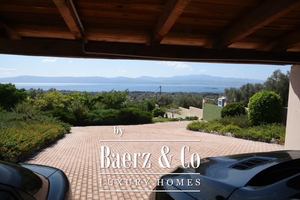 Covered parking for four cars, a mechanical room, and an external structure with guest house potential add to the versatility and privacy. Two gated entrances with electric garage doors assure discreet access. Offered fully furnished and meticulously maintained since its 2011 construction, this villa represents a rare opportunity to acquire an exceptional property in Amarynthos—one where privacy, light, and timeless design are perfectly balanced.