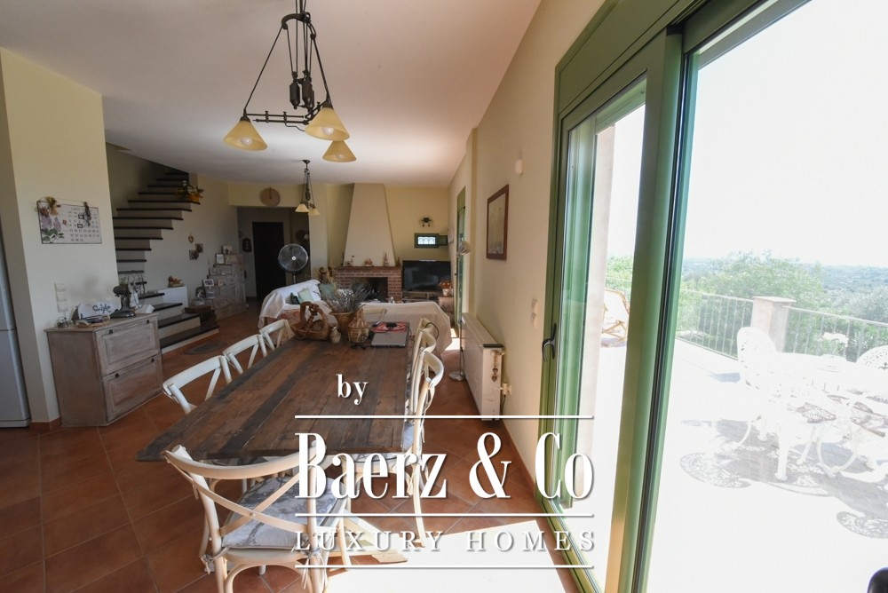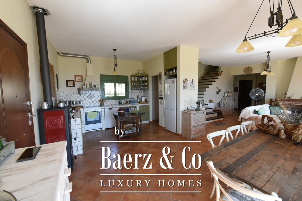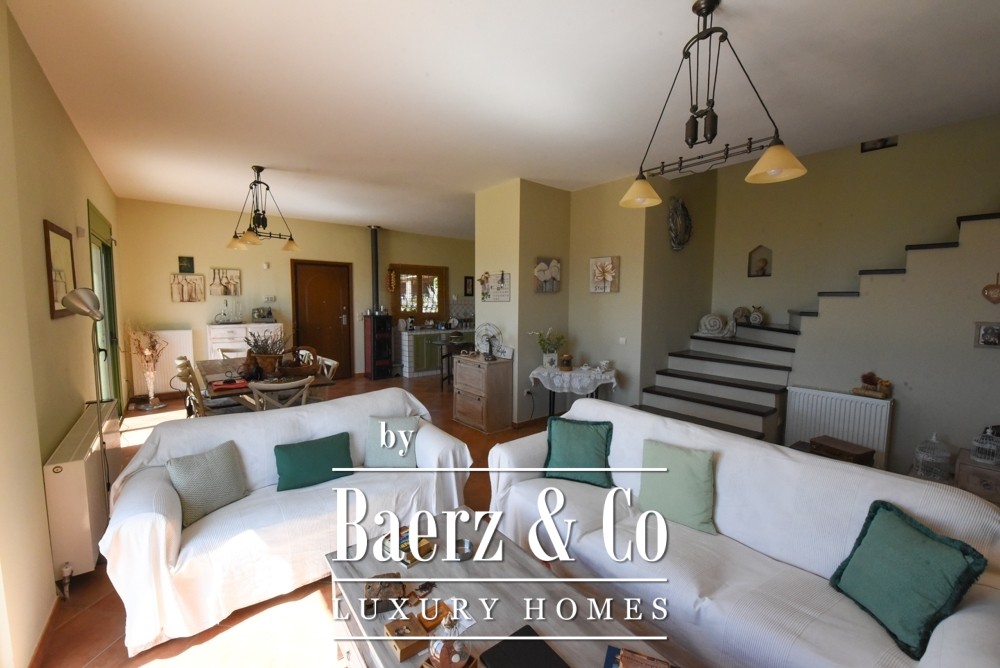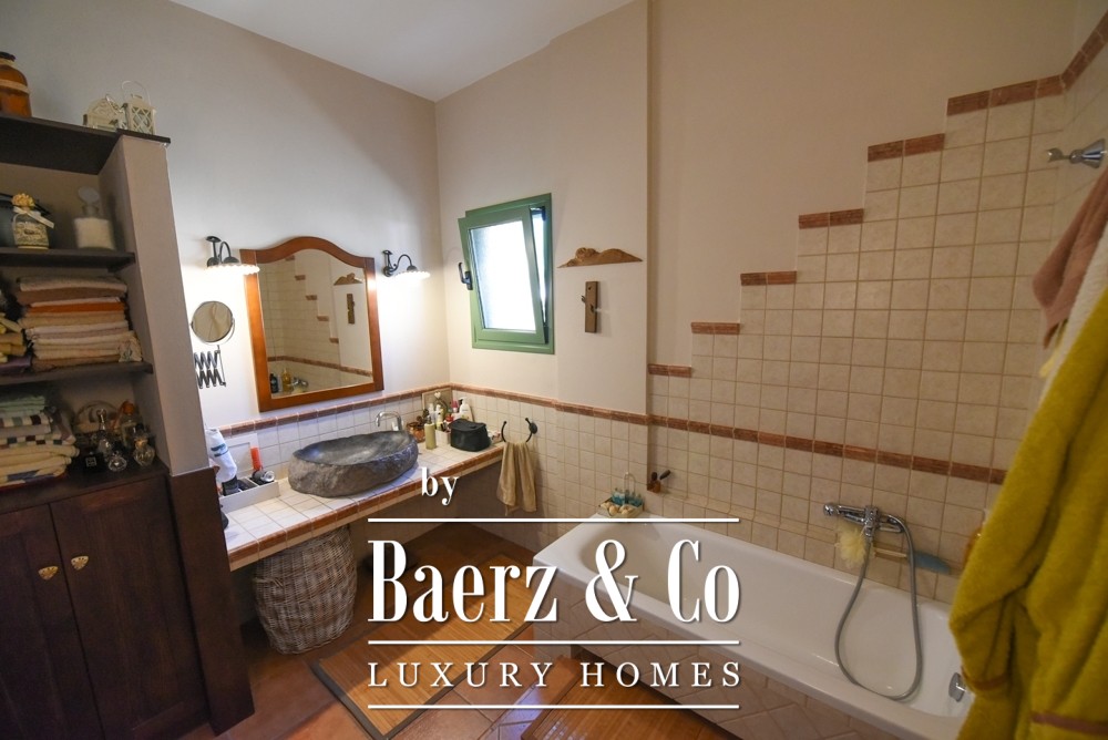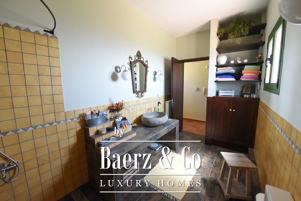 Tuscan-style villa Amarynthos captures Mediterranean elegance and contemporary comfort across 365 square meters and three levels, set in a peaceful corner of Greece. This villa enjoys panoramic sea and mountain views, offering both tranquility and an effortless connection to nature. Every room is shaped by generous volumes and a timeless aesthetic—five bedrooms, three bathrooms, a guest WC, and two walk-in closets are all thoughtfully designed, ensuring both function and refined character.