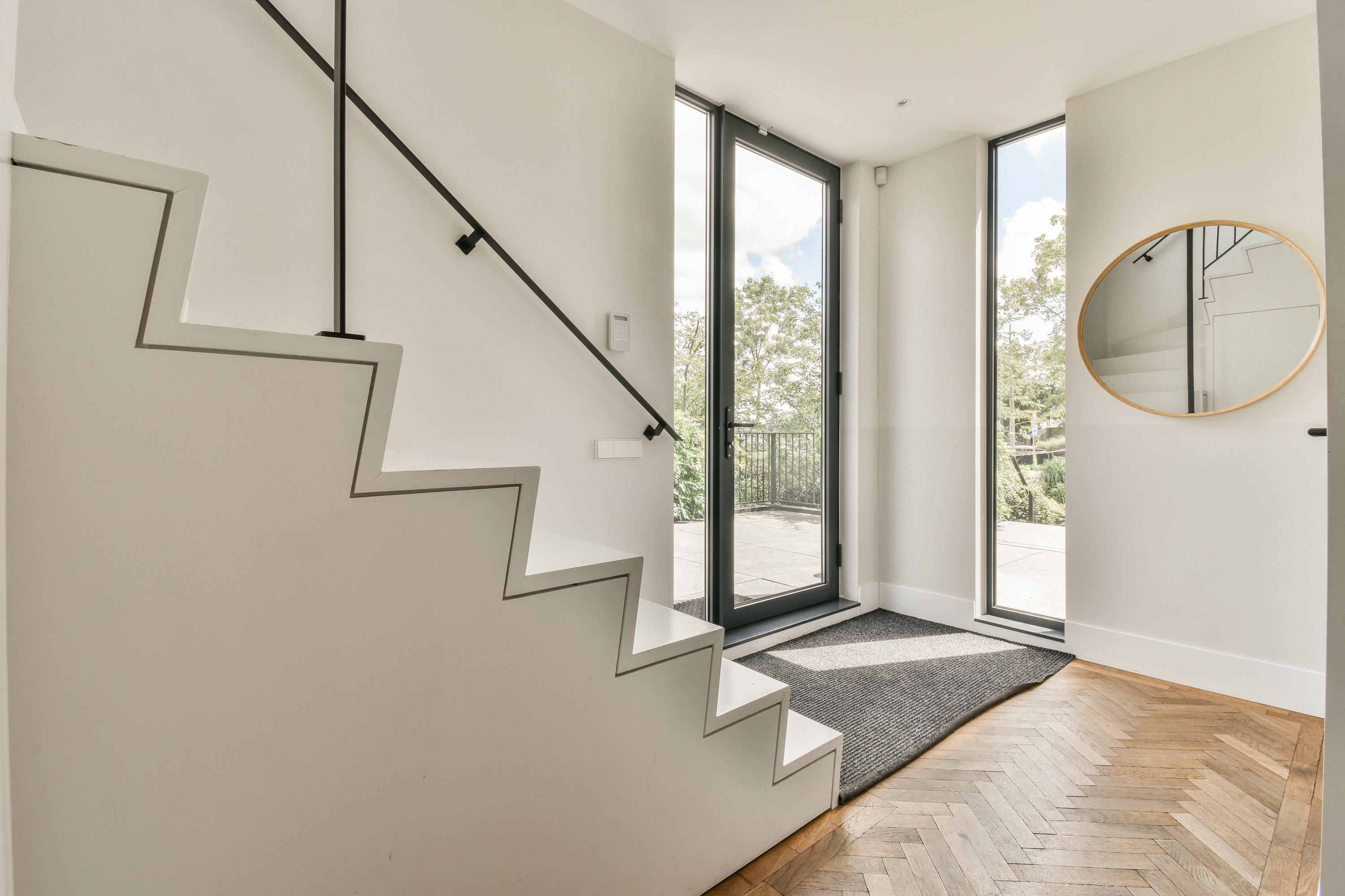 A staircase leads to the first floor, where peace and privacy are key. At the front of the home is the spacious bedroom, offering panoramic views of the Amstel. This room includes a large walk-in closet and a luxurious en-suite bathroom with a freestanding bathtub, double vanity, walk-in shower and toilet. At the rear is a second large bedroom, also with an en-suit bathroom. This bathroom is equipped with a double sink, walk-in shower and toilet. A bright landing connects the rooms and enhances the overall sense of space and refinement.