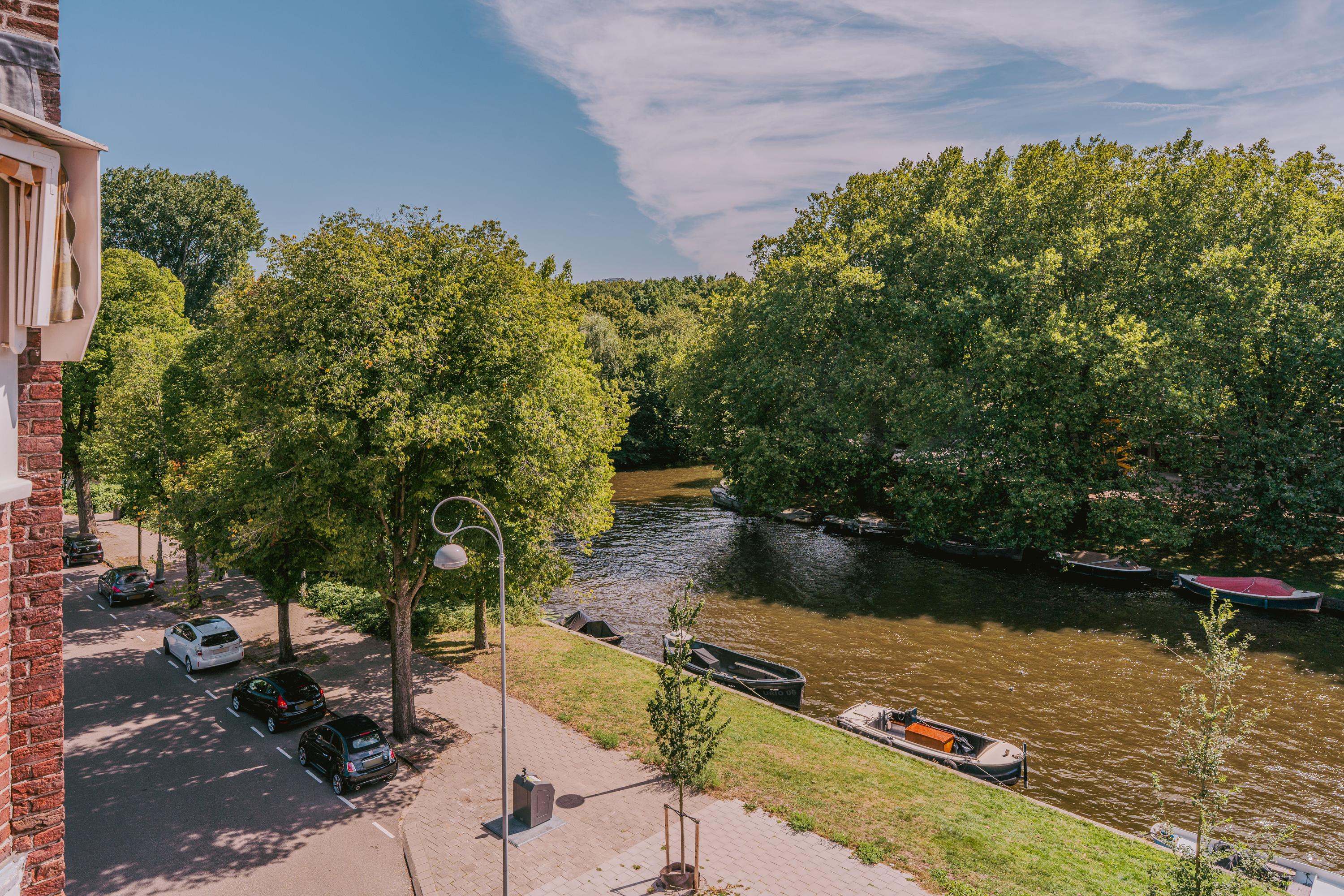 In a prime location in Amsterdam South, directly on the water and overlooking the Beatrixpark, lies this corner apartment of approximately 184 m². The apartment is spread over the third and fourth floors and features five bedrooms, including a studio with its own kitchen, three bathrooms, and a west-facing roof terrace.
