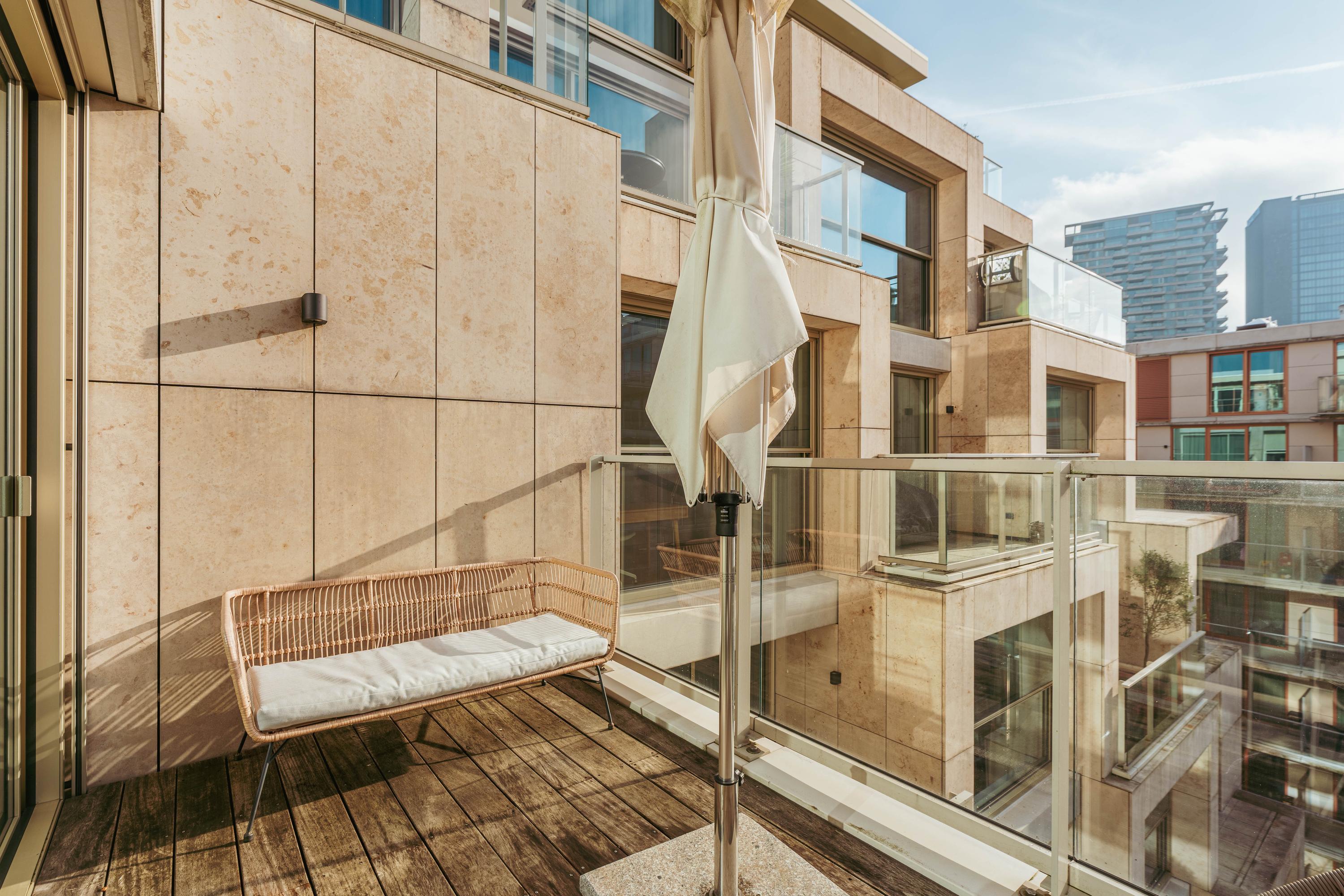 The apartment complex 'The Grid' consists of 68 luxurious residences. Completed in 2021, the building is characterised by its stepped façade and thoughtful design. The spacious lobby features an extra-high ceiling and forms the heart of the building. Situated directly along the street, with plenty of glass and views of the internal garden, it is a wonderful meeting place. The building also includes a shared indoor bicycle storage area and a parcel delivery room.