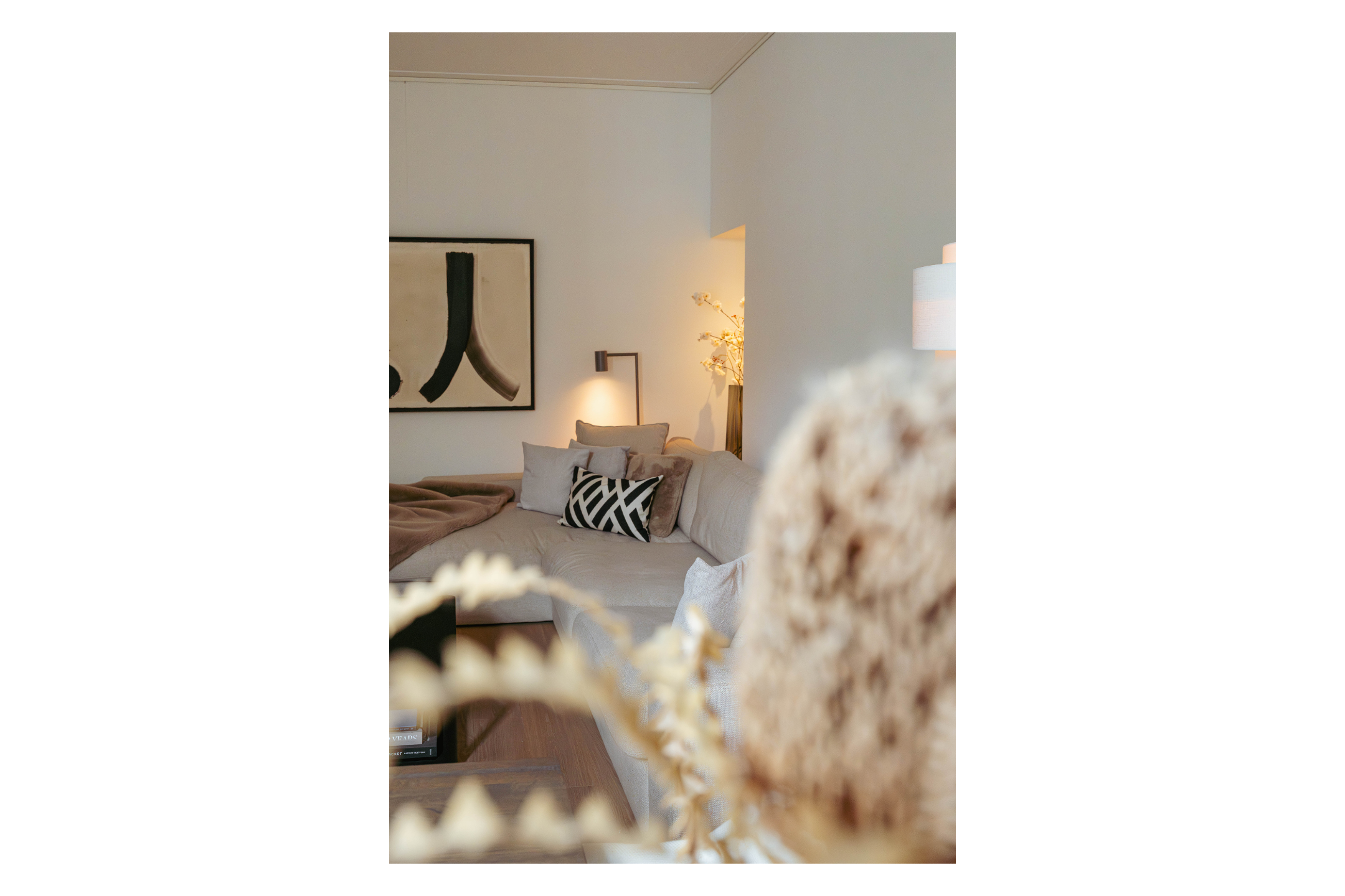 The apartment is located on the second floor, where the high ceilings and authentic features of the Amsterdam School style immediately catch the eye. You enter into the modern, sleekly finished kitchen, equipped with high-quality built-in appliances: a five-burner gas stove with extractor, combi-oven, fridge-freezer, dishwasher, and Quooker. Large, decorative windows allow plenty of natural light to flow in, creating an elegant and inviting atmosphere. The adjoining living area offers ample space for a generous sitting area and a large dining table. The charming niches with built-in spotlights and the characteristic bay window with tilt-and-turn windows add extra character to the room and provide a lovely green view over De Lairessestraat.