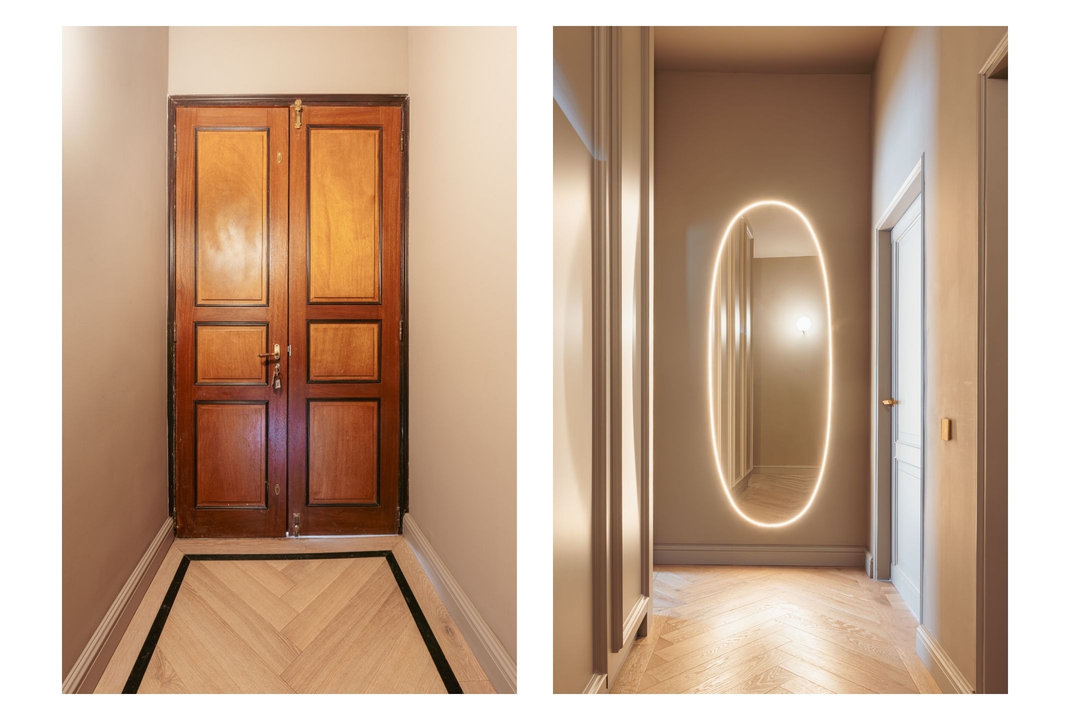 Apartment Amsterdam Canal District South is found on Keizersgracht, in a distinguished national monument dating to 1690. This 84 m² residence occupies the second floor of an immaculately maintained canal house, renovated in 2022 and 2023 with an eye for understated luxury and architectural continuity. Crossing the marble entrance hall, one enters a space defined by refined details: high ceilings, paneled doors, herringbone wooden floors with black inlay, and a harmonious palette animate the generous living room. The original classical ceiling rose and marble fireplace frame a sense of historical resonance, juxtaposed with the comfort of modern underfloor heating throughout.
