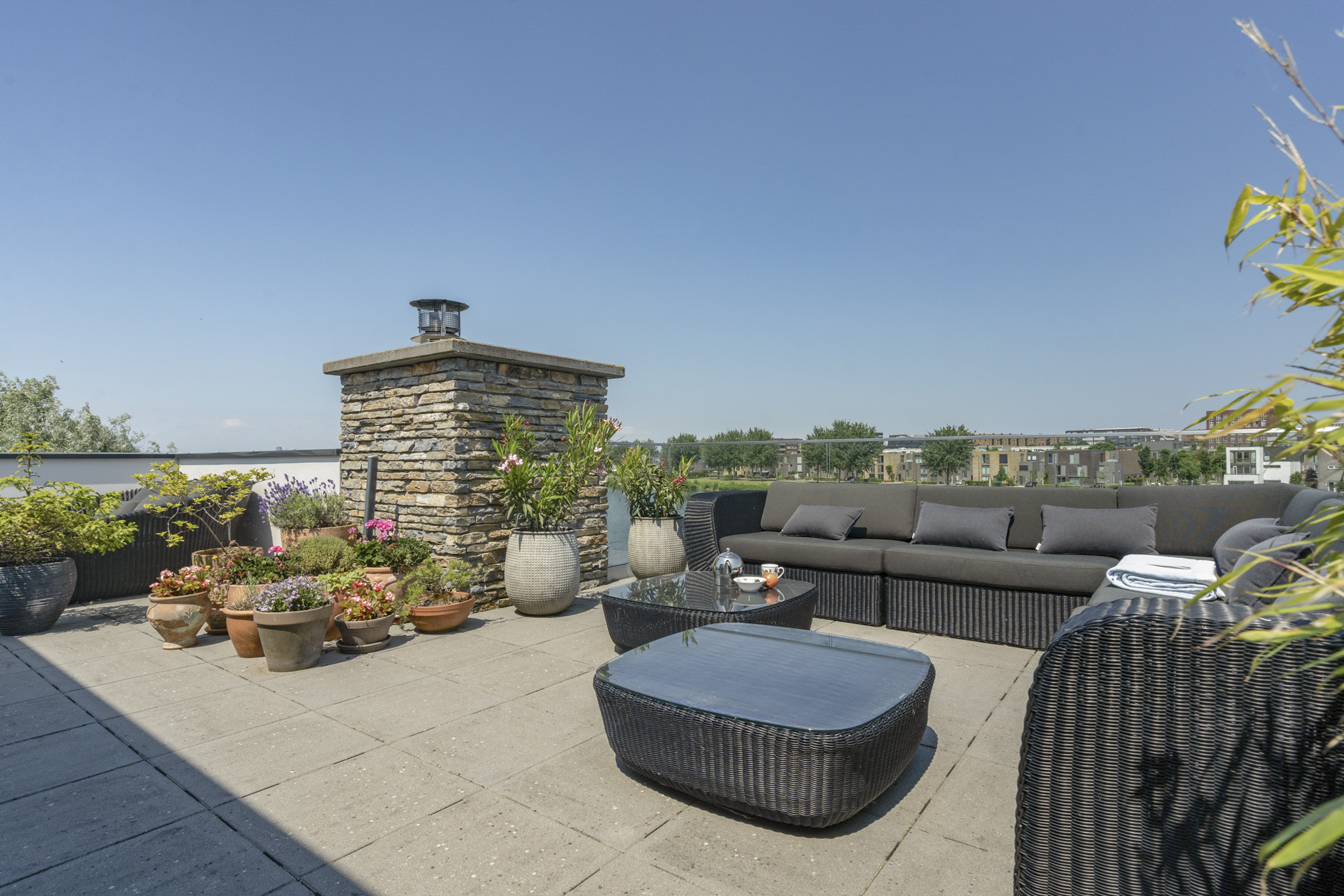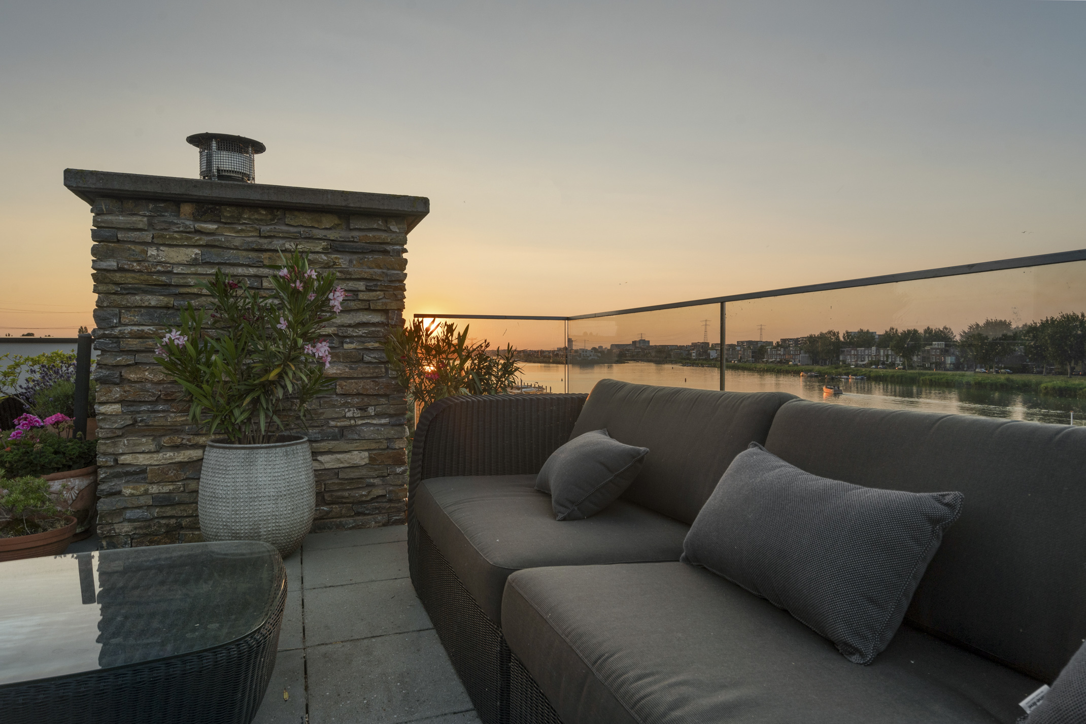 This dream villa exceeds all expectations with panoramic views from every floor over the water, a sensational rooftop terrace, 7 (bed)rooms, 3 luxurious bathrooms, an integrated garage and parking space for 4 or 5 cars on private grounds.
