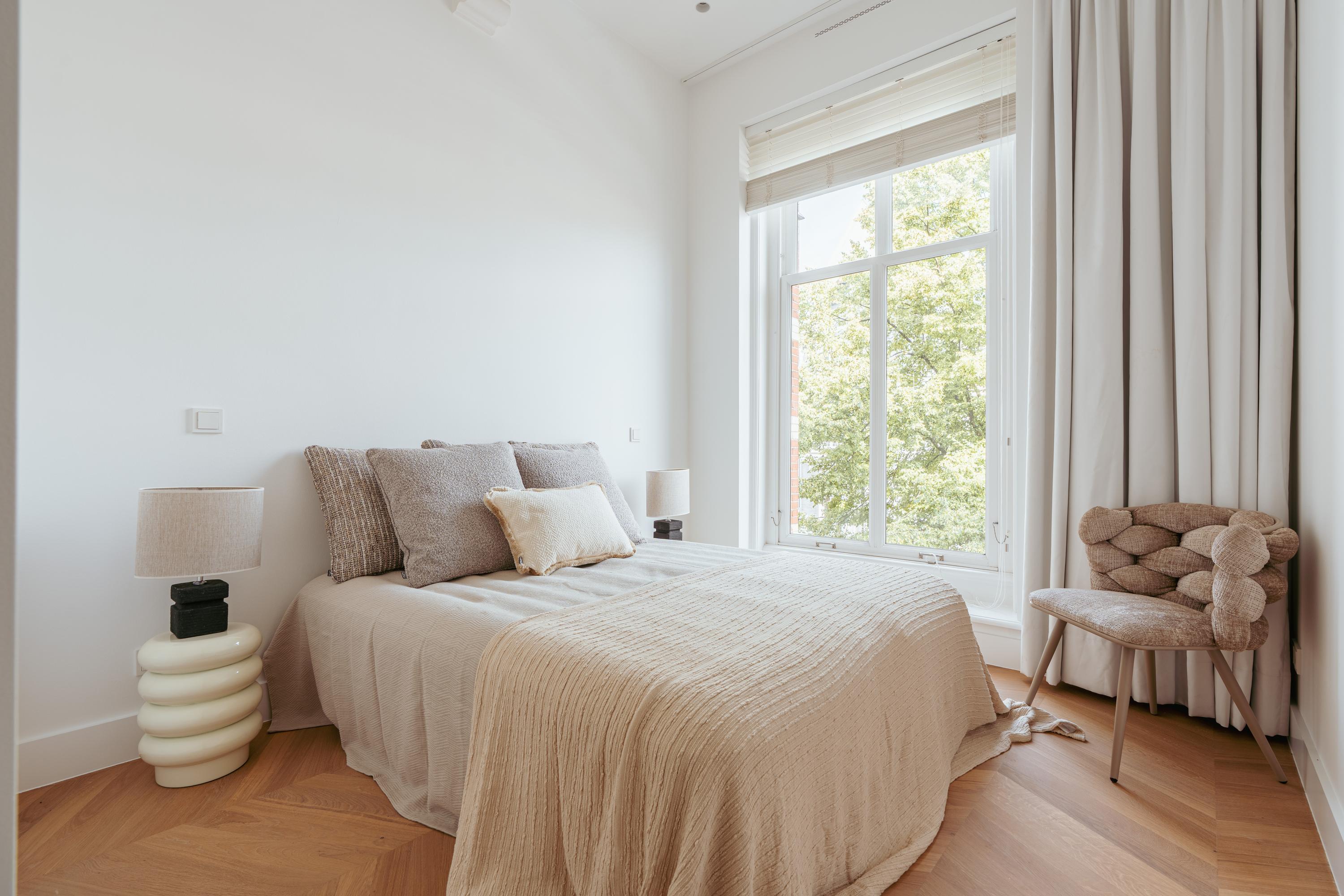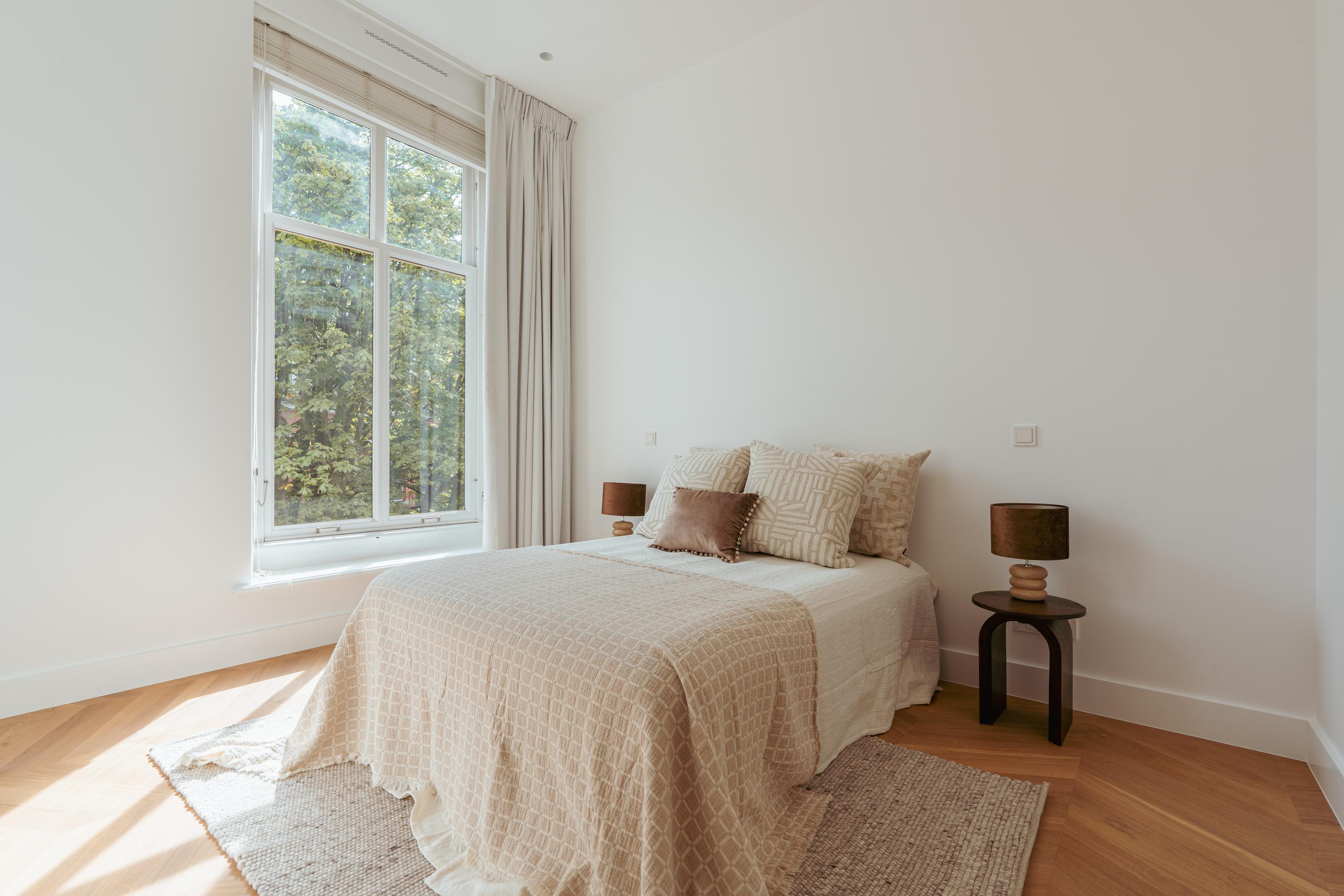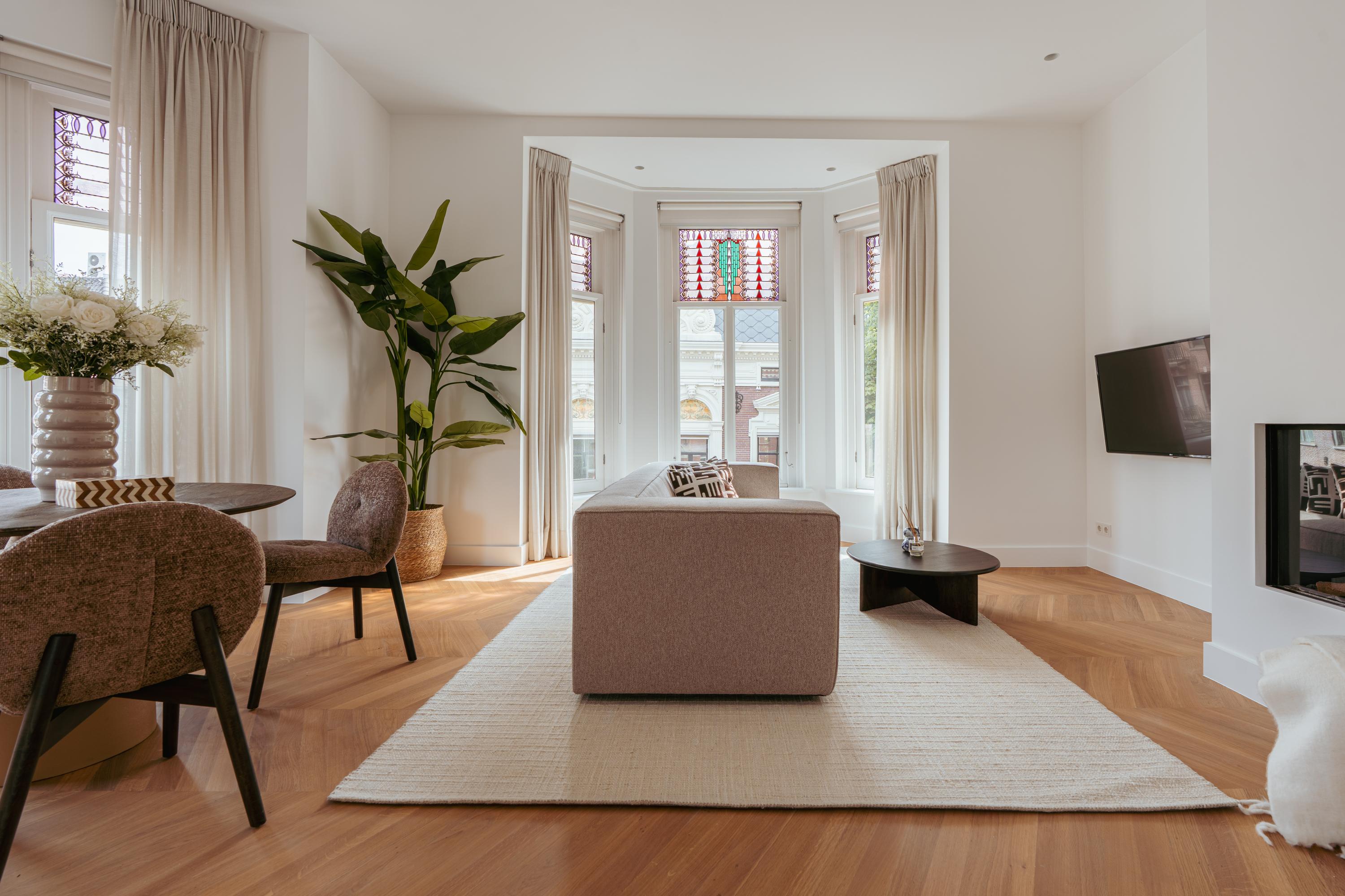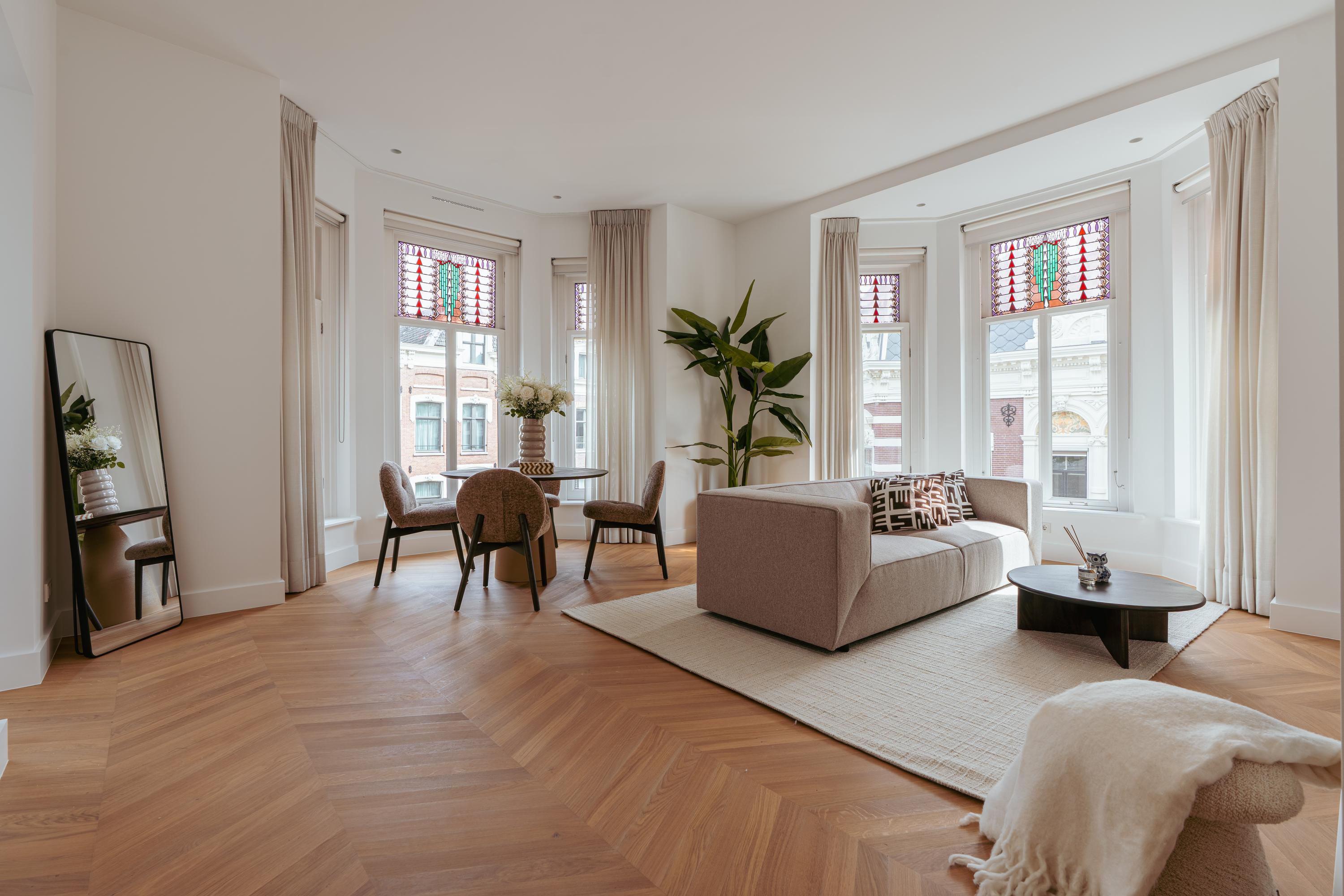 Stylish and bright apartment of approx. 85 m² in the beloved Vondelpark neighbourhood. Situated in a unique location in Amsterdam Oud-West, this wonderfully light and recently fully renovated apartment of approximately 85 m² is located in a monumental building with a lift. The property is finished to a high standard and features two comfortable bedrooms, each with a private en-suite bathroom, a modern kitchen equipped with luxury built-in appliances, and a spacious living room with high ceilings, a charming fireplace, and characteristic bay windows that allow beautiful natural light to flow in. Furthermore, the apartment is located on freehold land – so no leasehold applies!
