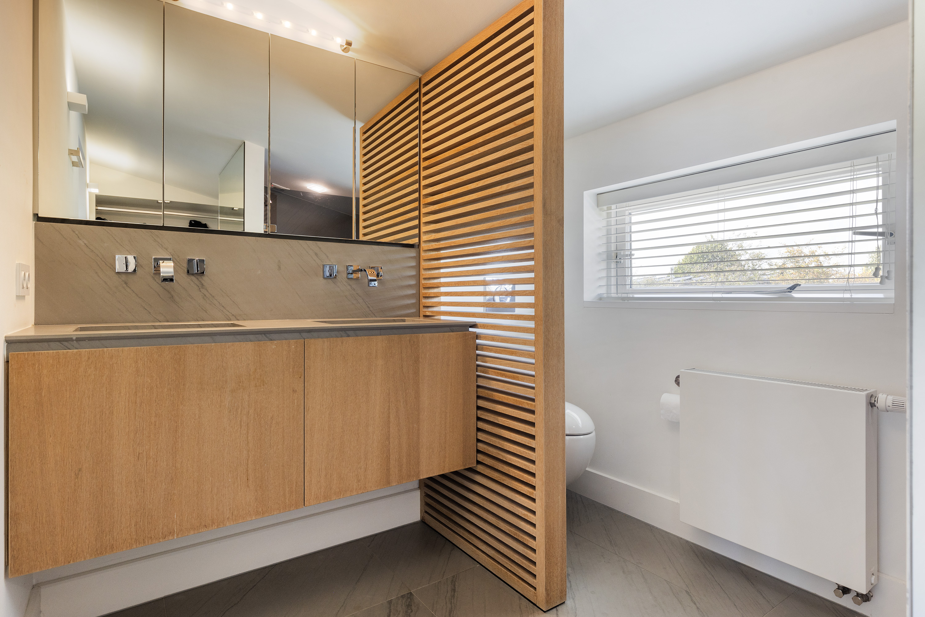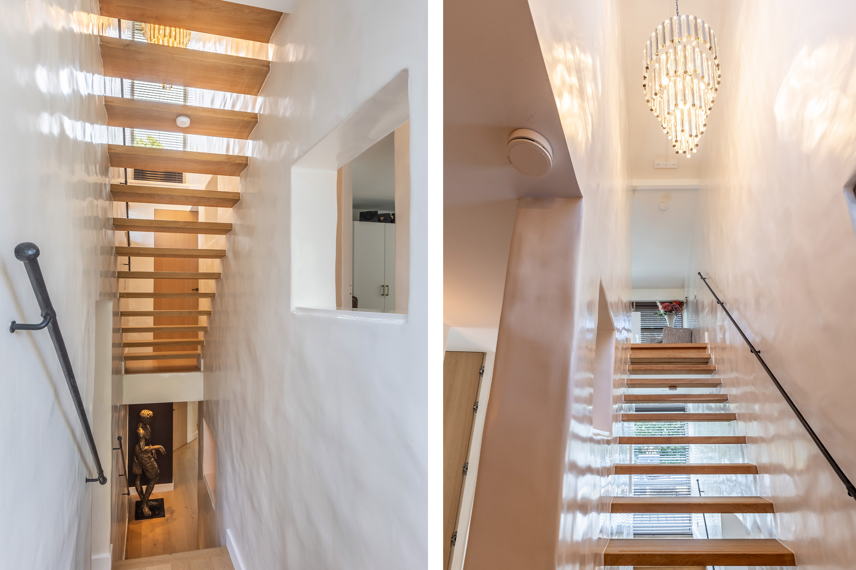 The villa is built on a split-level design, creating intriguing sightlines and playful height variations that together form a dynamic yet harmonious whole. The abundance of natural light and open views create a true sense of freedom and space. All oak interior doors are frameless with concealed hinges, giving a clean and minimalist aesthetic.