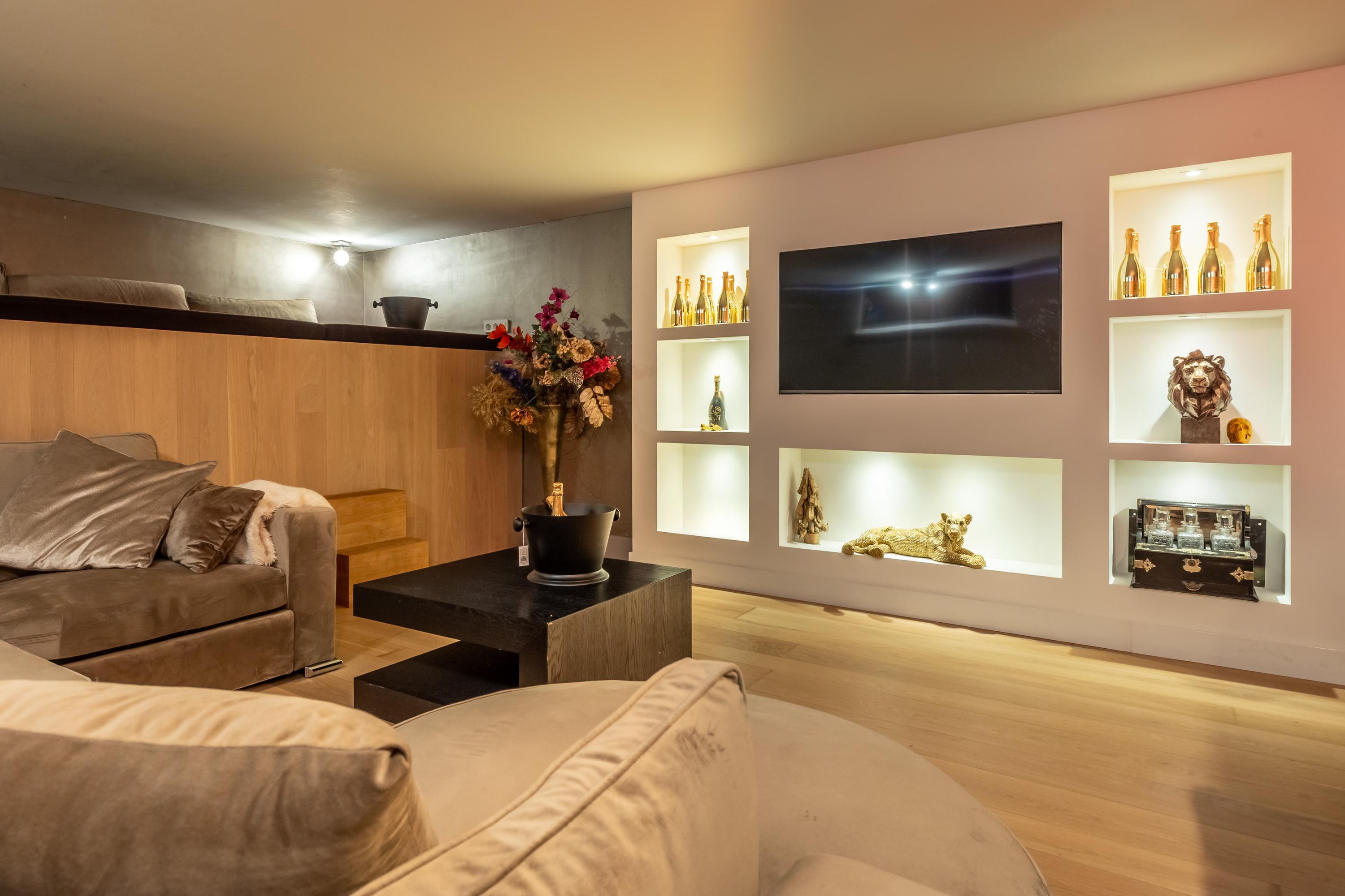 Thanks to its design, you can enjoy the outdoors in every season, with the open fireplace, heater and windscreen providing comfort all year round. Two balconies offer more intimate outdoor retreats. The garden is equipped with automatic irrigation and lends itself perfectly to barbecues or long summer evenings.