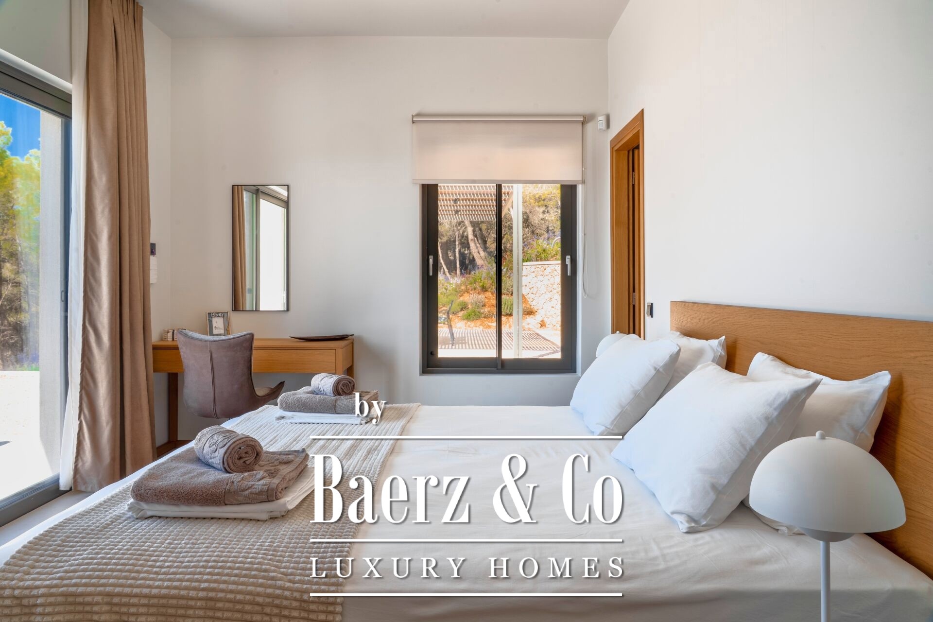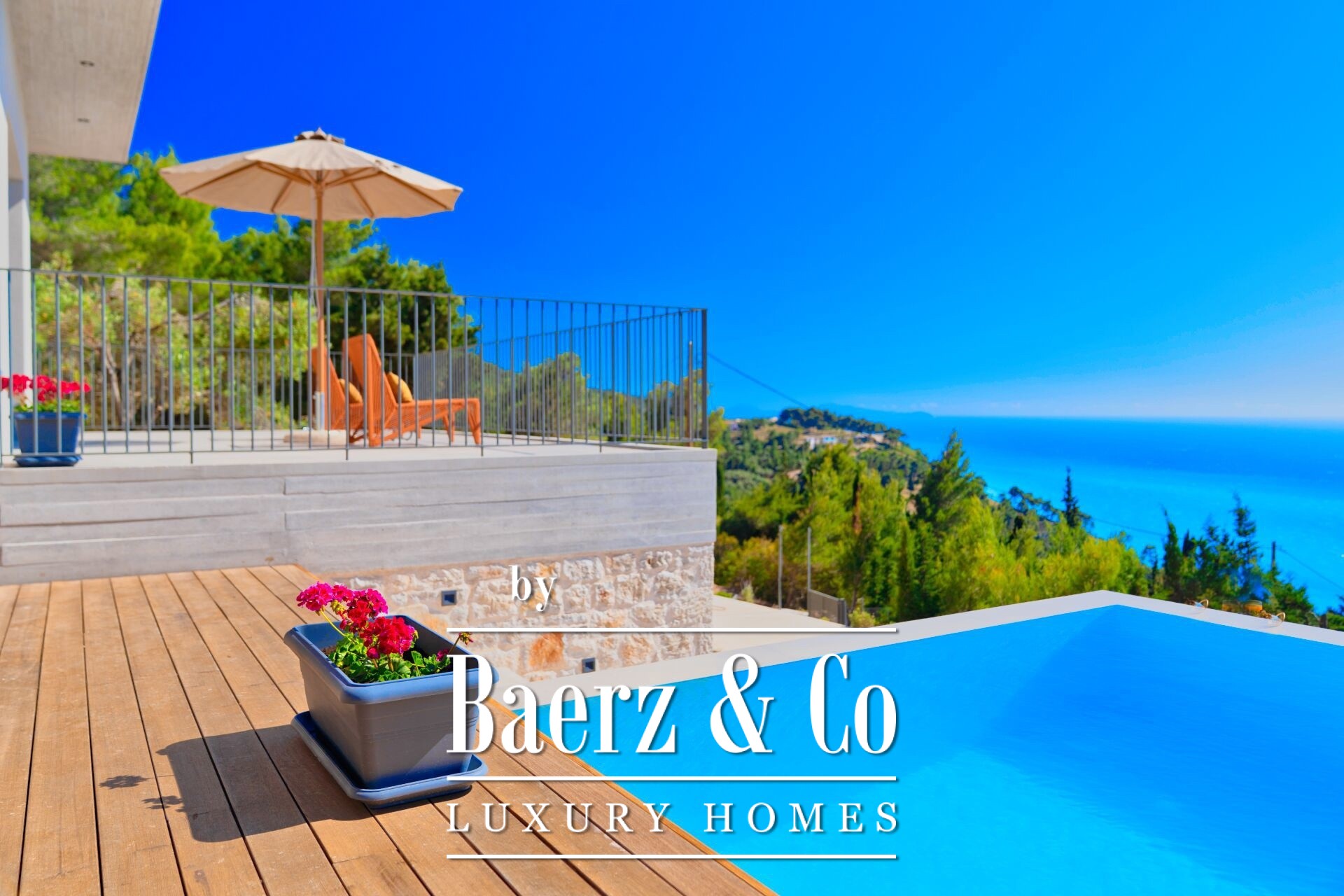 Nestled in an idyllic pine forest, just 600 meters from the sea, this newly built luxury villa of 247 sq.m. stands on a private plot of 4.679 sq.m., offering total privacy, a refreshing breeze, and the delicate aroma of pine trees that defines the surrounding landscape. The villa enjoys breathtaking panoramic views of the Ionian Sea, the mountains, and the lush greenery of Lefkada.