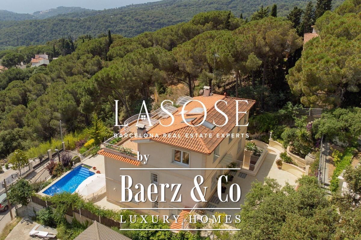The home’s amenities are considered and complete: air conditioning, ducted heating and radiators, aluminum electric blinds, and a five-car garage. Outdoor spaces include a pool with pergola, barbecue, and garden, all oriented to maximize sea views and natural light. Located minutes from the beaches and vibrant marina of Arenys de Mar, with Barcelona accessible in forty minutes, this villa places quality of life and discretion at the forefront.
