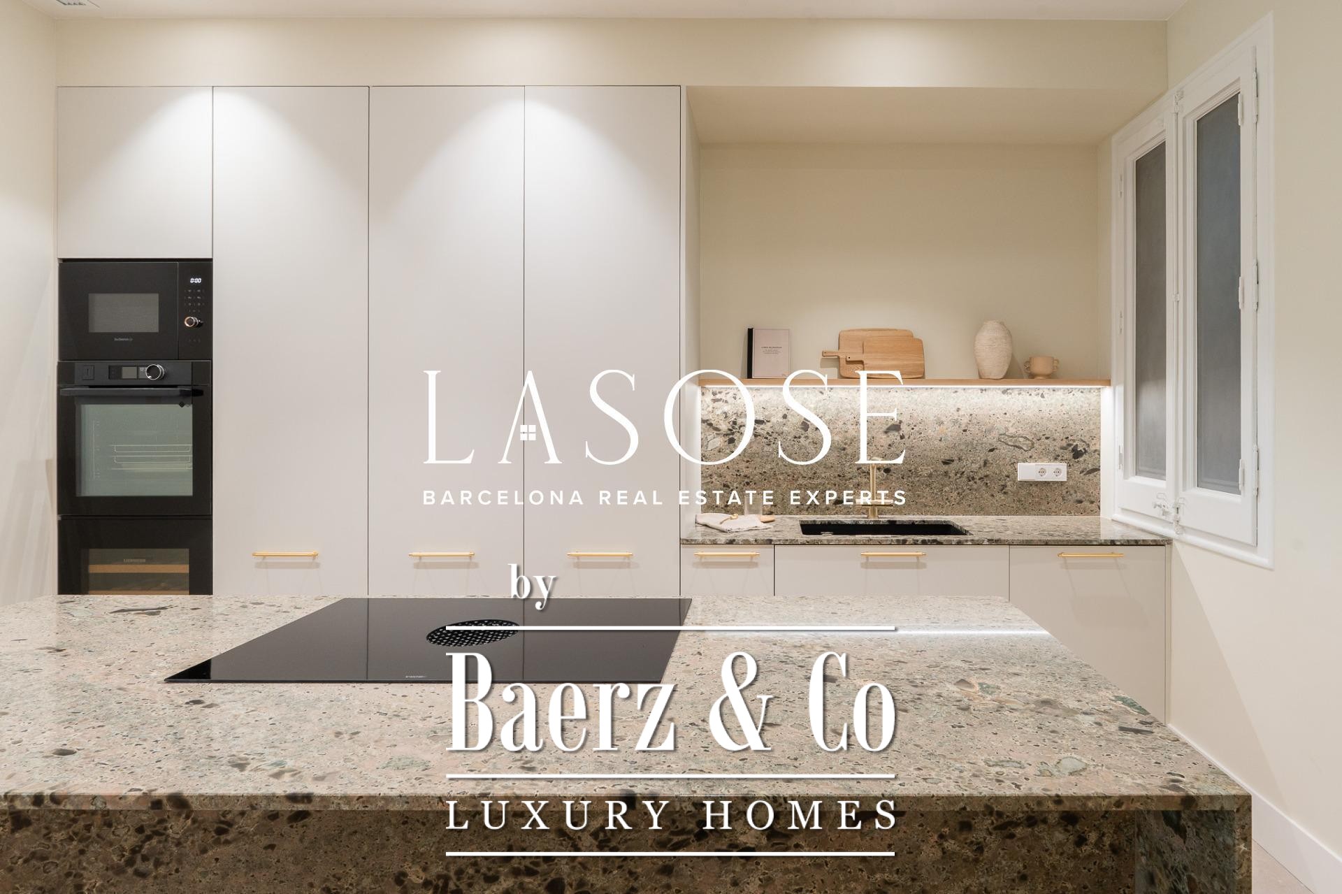 LASOSE is privileged to present this magnificent high-end residence, located in the heart of Barcelona's coveted Eixample district.. . Located in an elegant listed royal estate dating from 1900, this property stands out for its stately architecture, its historical value and its unmistakable character. It is a unique apartment, where the charm of Barcelona's modernism merges with the most demanding comfort and contemporary design.. . Located on a bright 2nd floor with double orientation, the property enjoys abundant natural light throughout the day. Its careful distribution maximizes every corner, offering spacious, functional and stylish spaces.. . The property has three elegant double suites, all with full bathroom, and one of them equipped with an exclusive glazed gallery, perfect as a chill out corner or as a sophisticated workspace.. . The spacious living-dining room is harmoniously integrated with a designer kitchen with central island, equipped with top-of-the-line materials and appliances: polished marble countertop by Levantina, porcelain flooring, and high-end appliances by De Dietrich, Bora and Liebherr (including refrigerator, dishwasher and wine cooler).. . In addition, the dining room - bathed in natural light - can easily be transformed into a fourth bedroom according to the buyer's needs.. . This exclusive home offers luxury finishes such as natural wood floors, original hydraulic tiles and high ceilings decorated with moldings and rosettes, which