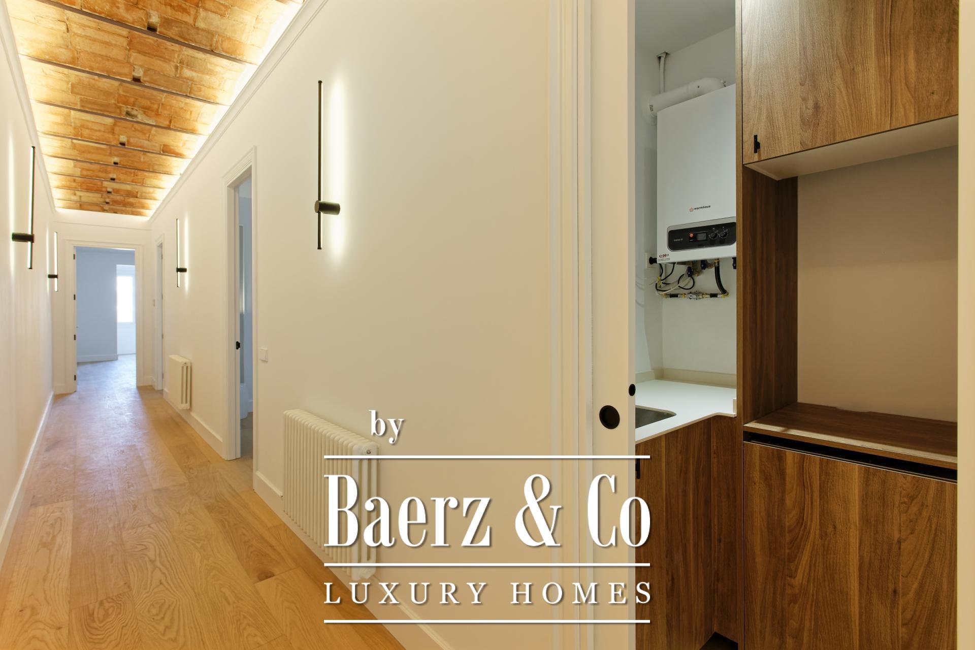Apartment Barcelona in the celebrated Eixample Dreta quarter presents a refined encounter between heritage and renewal. Set on the authentic fourth floor of a grand 1900 Finca Regia, this 218 m² residence traces the lines of original architecture with balanced modern craftsmanship. The through-apartment takes full advantage of its north-west orientation, gathering light through two exterior balconies and a sequence of generous spaces.
