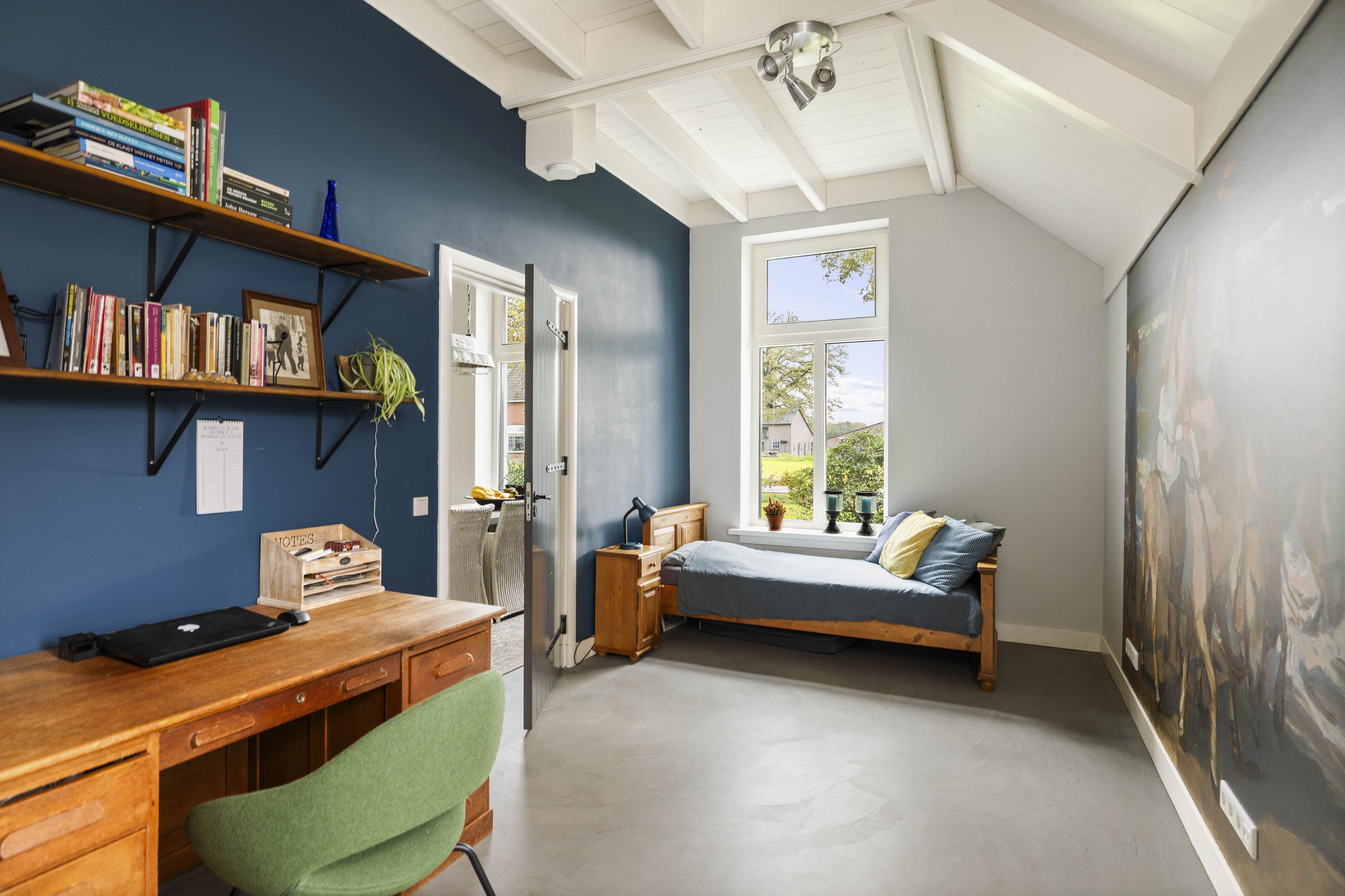 Perhaps you have your own business, maybe with staff, and you want to work from home. That's possible! There is a more than spacious U-shaped annexe consisting of an office with presentation room (approx. 84 m²), toilet, pantry with close-in boiler, and a workshop (90 m²) where you can get straight to work. Like the main house, the entire building is equipped with fibre optic Cat6 Ethernet cables.
