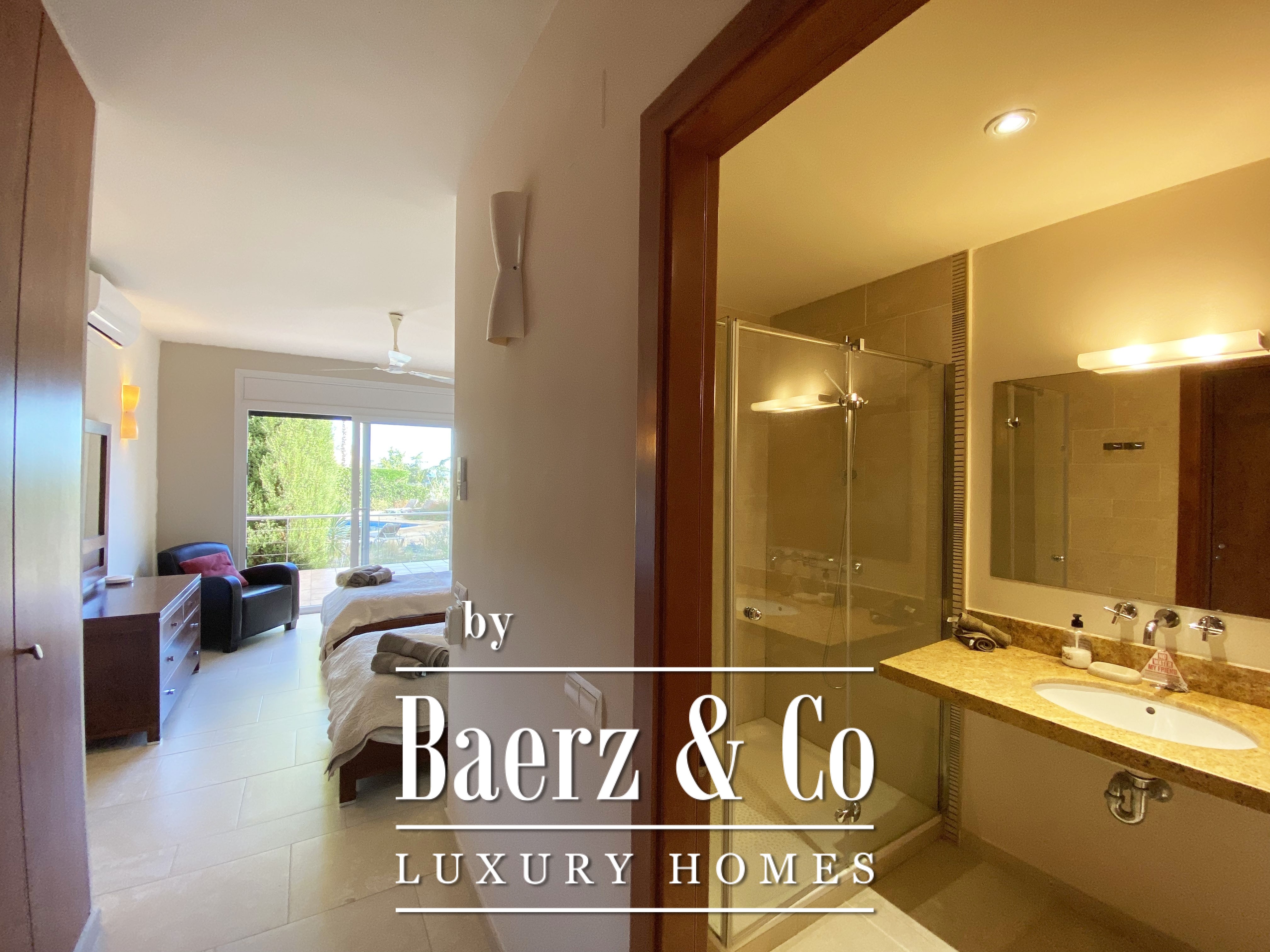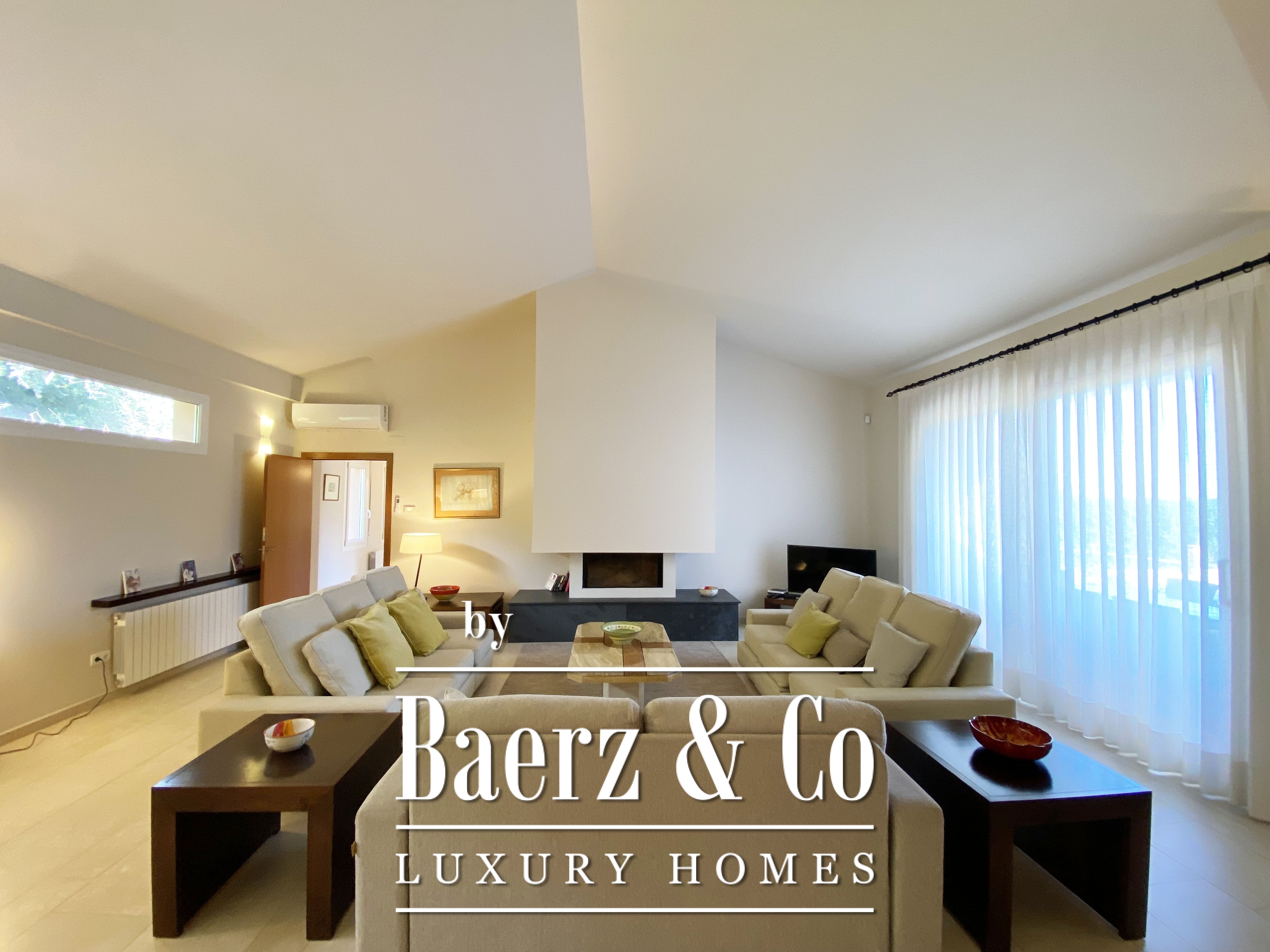 Upstairs, a sitting area leads to a solarium terrace, crafted for quiet moments and panoramic sea views. Outdoors, the 15 x 6 metre swimming pool becomes a central feature, inviting relaxation under Mediterranean skies. The villa’s recent installation of a solar panel system in 2024 enhances energy efficiency, while a tourist licence offers flexibility for discerning investors.