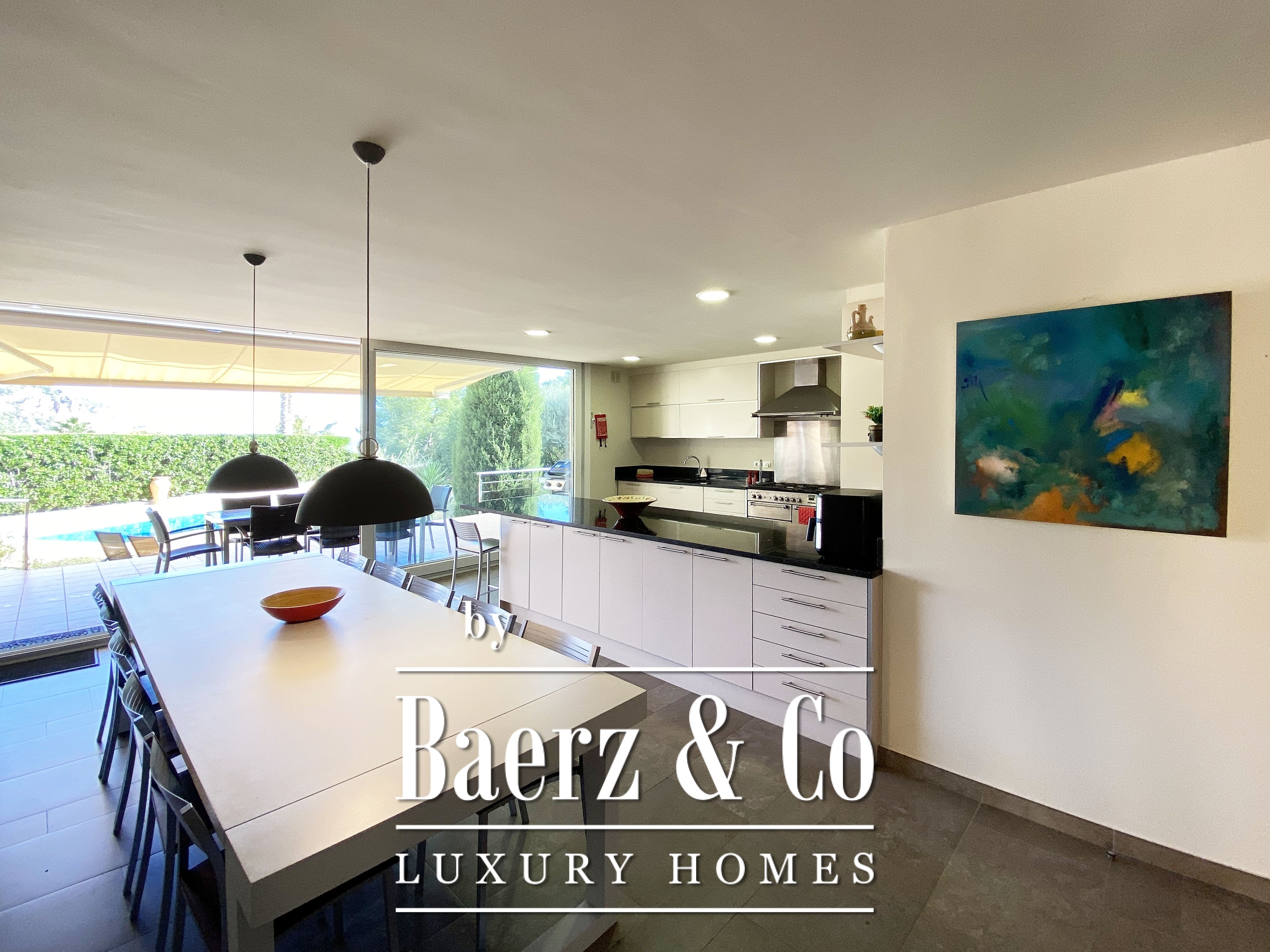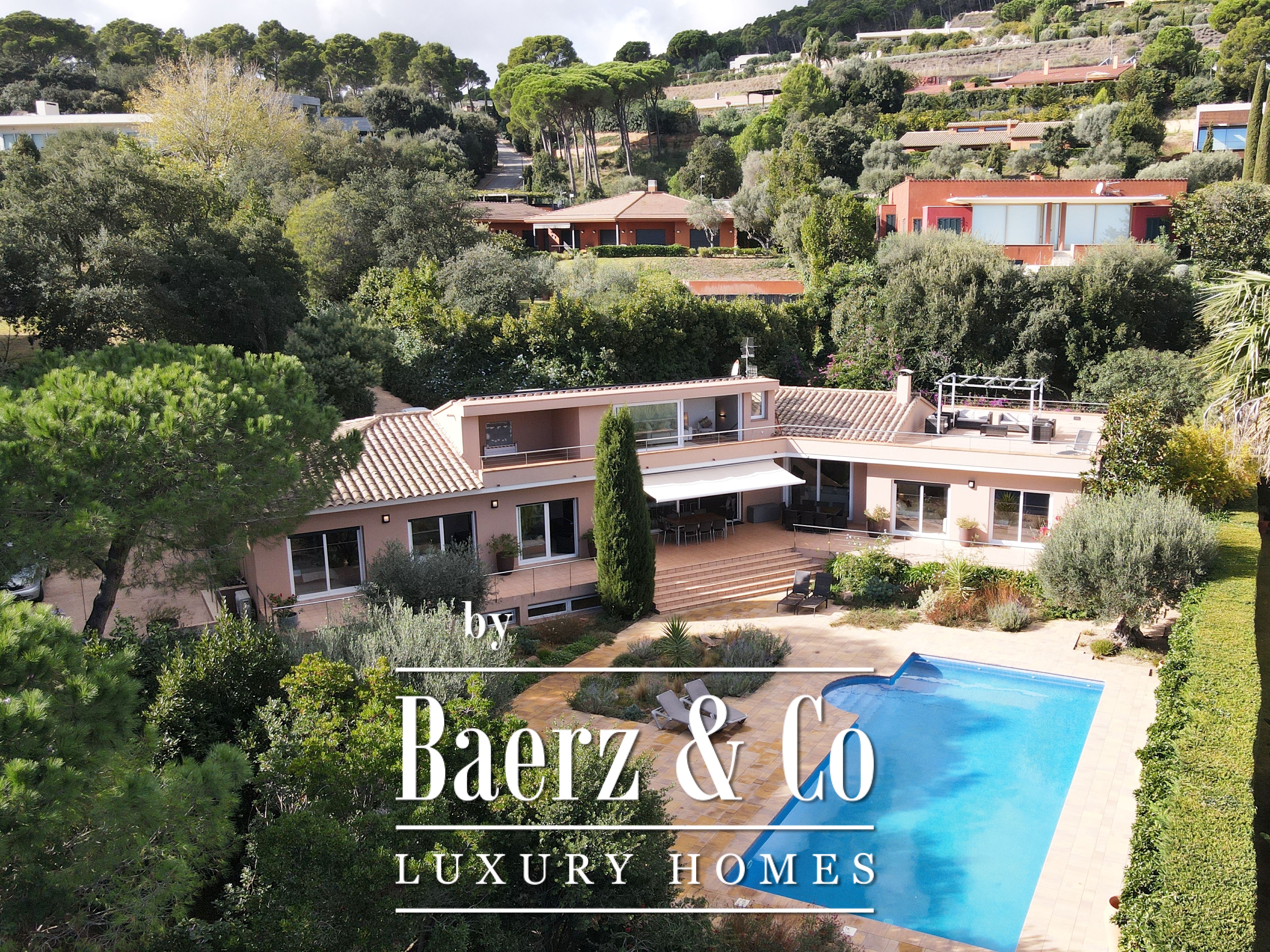 Villa in Begur offers refined living in the heart of the celebrated Costa Brava, set within the sought-after Ses Falugues enclave. This villa is defined by its 560 m² of carefully designed interior space, delivering a sense of openness and natural light throughout. All five double bedrooms are en suite, complemented by a guest toilet, a spacious American kitchen, and an inviting living room with a fireplace, each space opening effortlessly to a landscaped garden filled with native plantings.