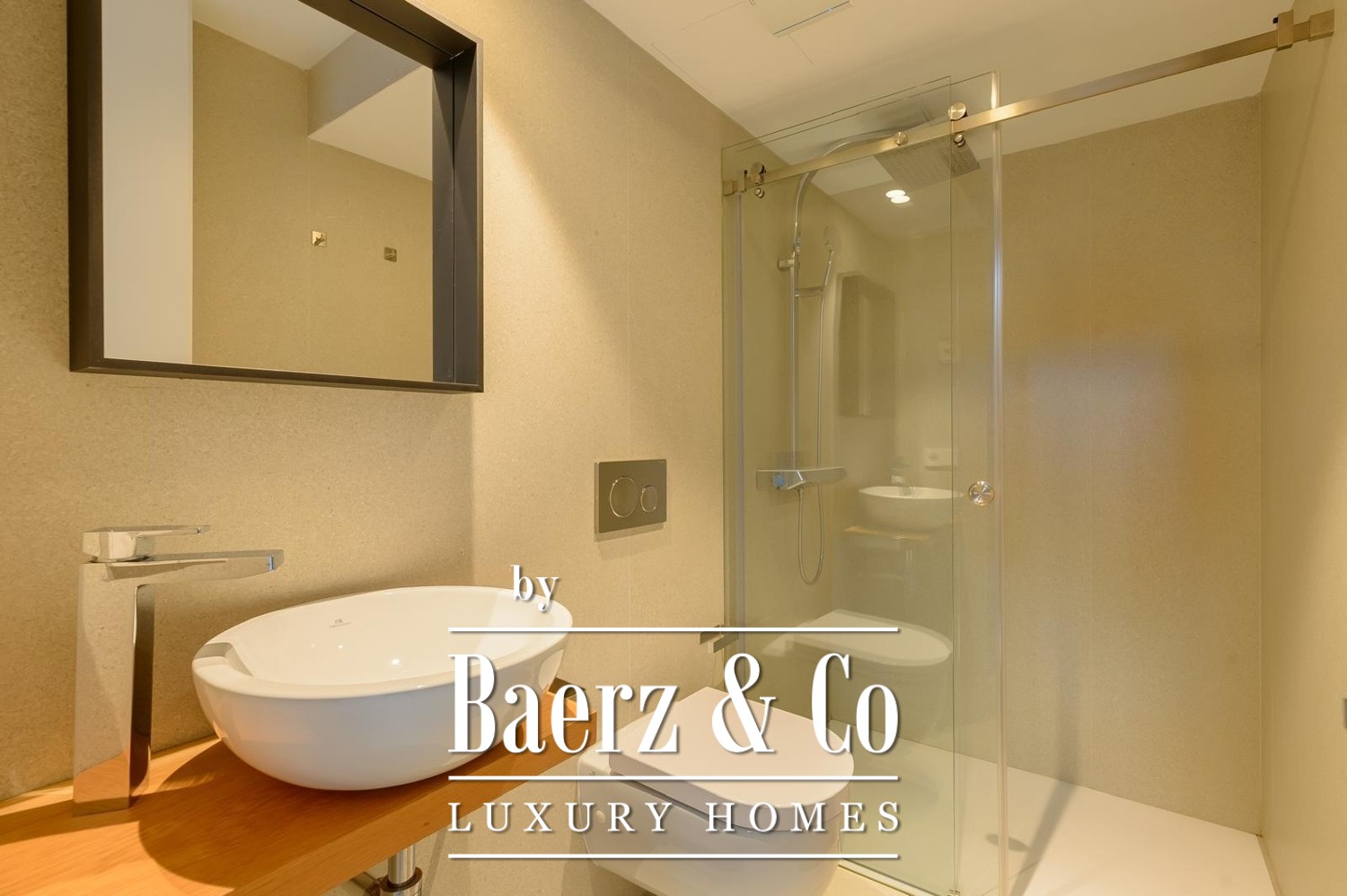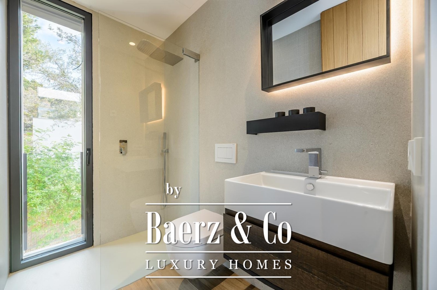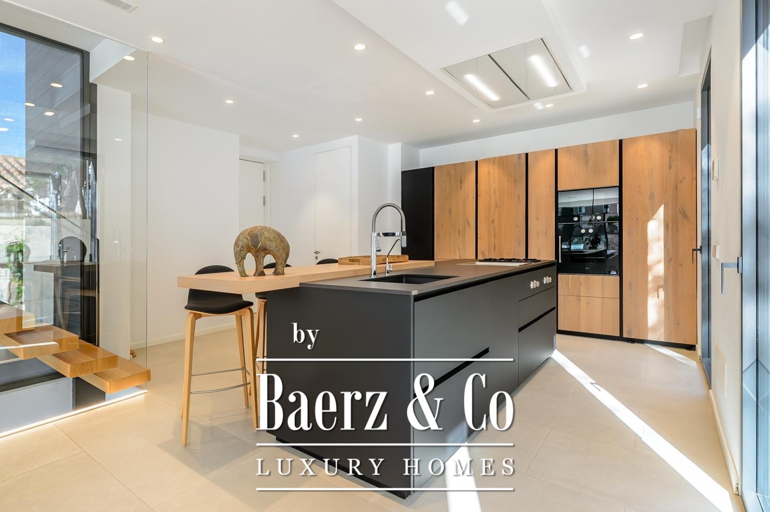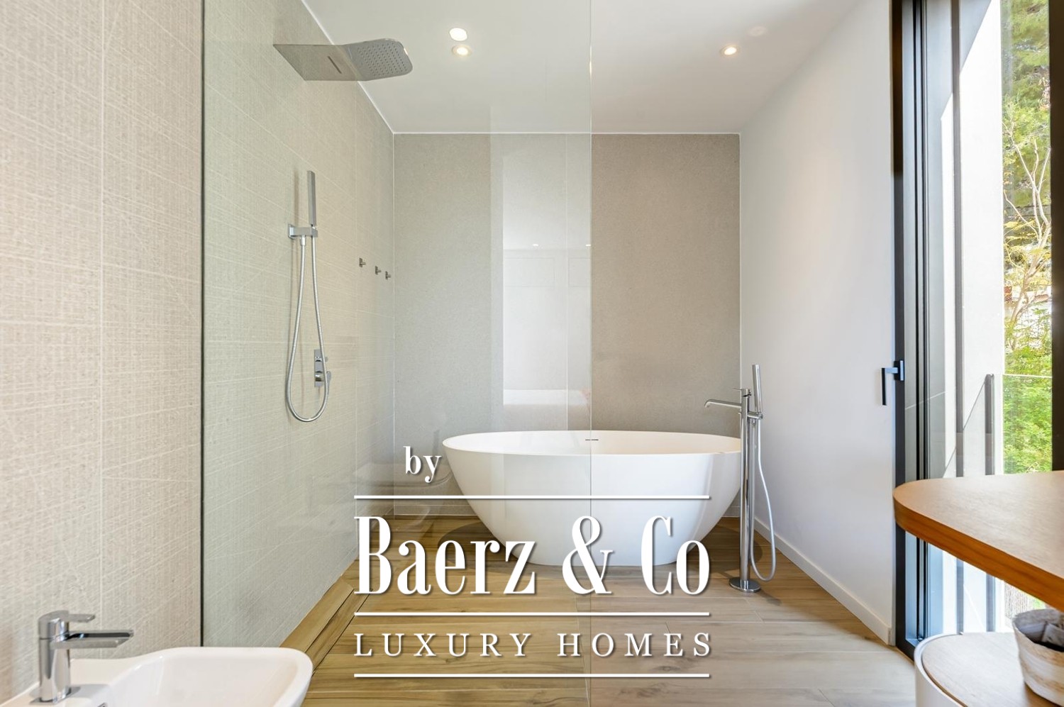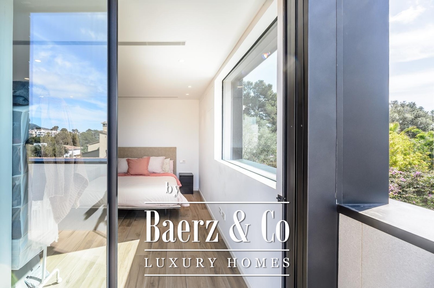 Upstairs, the master suite offers a private terrace oriented for panoramic sea vistas, accompanied by two guest bedrooms and an elegantly appointed bathroom. The ground level holds a fully independent guest suite, a two-car garage, gym, laundry, and storage, meeting every requirement for both owners and visitors. Premium features include a ventilated façade system, underfloor heating, air conditioning, and a designer fireplace, reflecting a commitment to quality that distinguishes a luxury villa for sale in Bendinat.