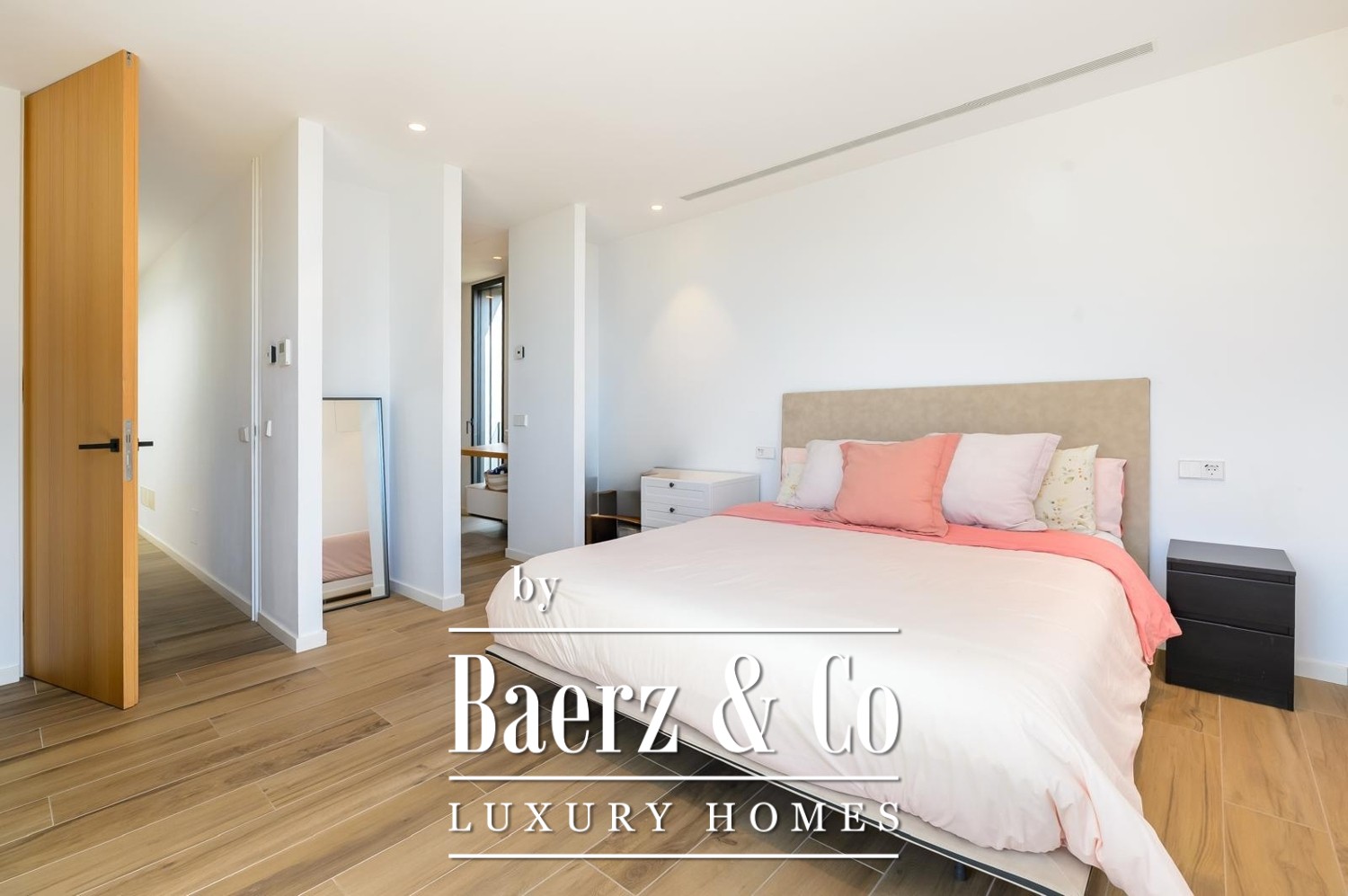 A rooftop solarium crowns the property, providing 360-degree views of the Mediterranean. Airy yet secluded, this villa also benefits from proximity to Puerto Portals marina, acclaimed restaurants, sandy beaches, and Palma city. Thoughtful amenities such as pre-installation for an elevator and the overall attention to spatial flow complete an address defined by architectural clarity and enduring value.