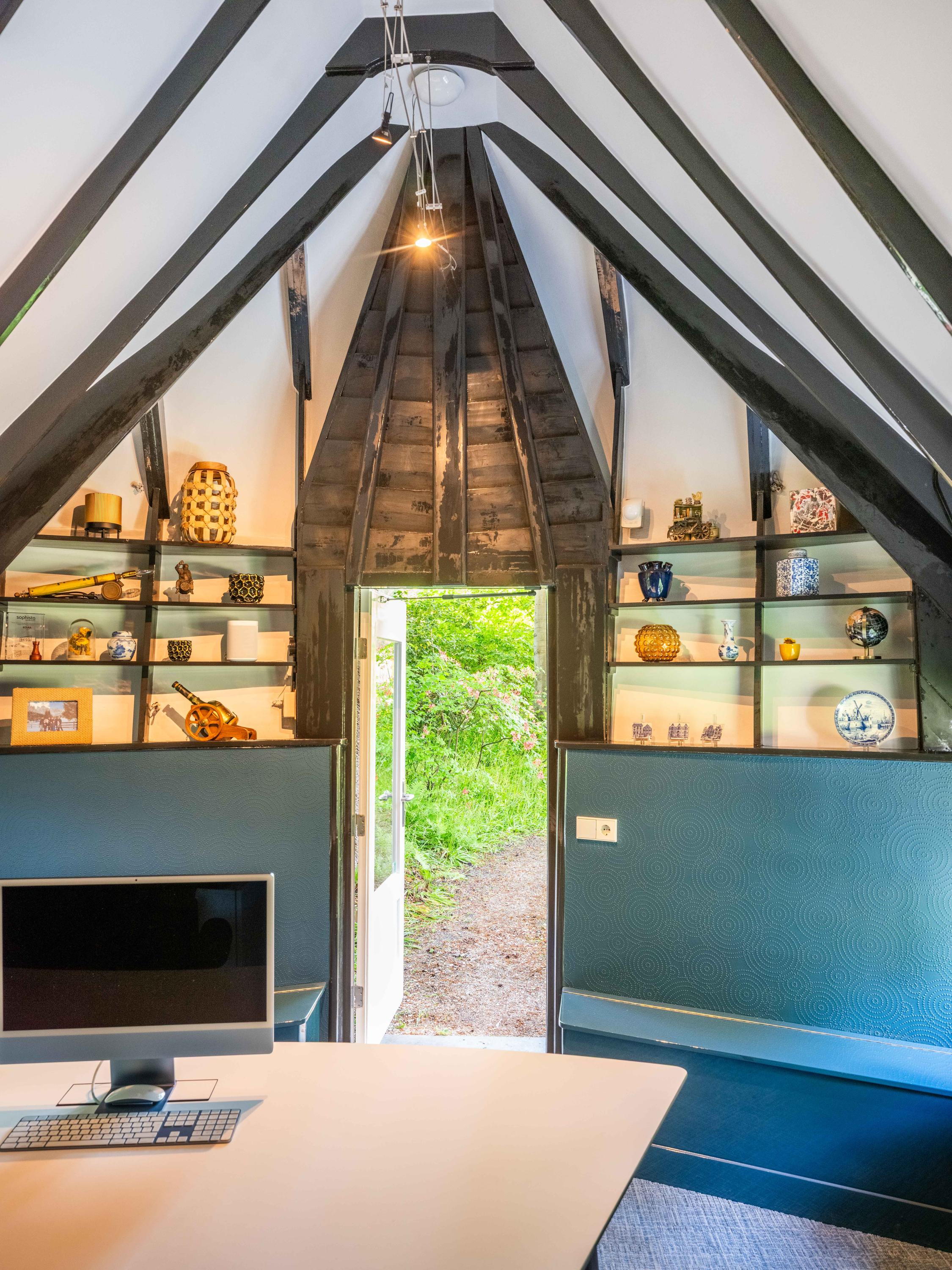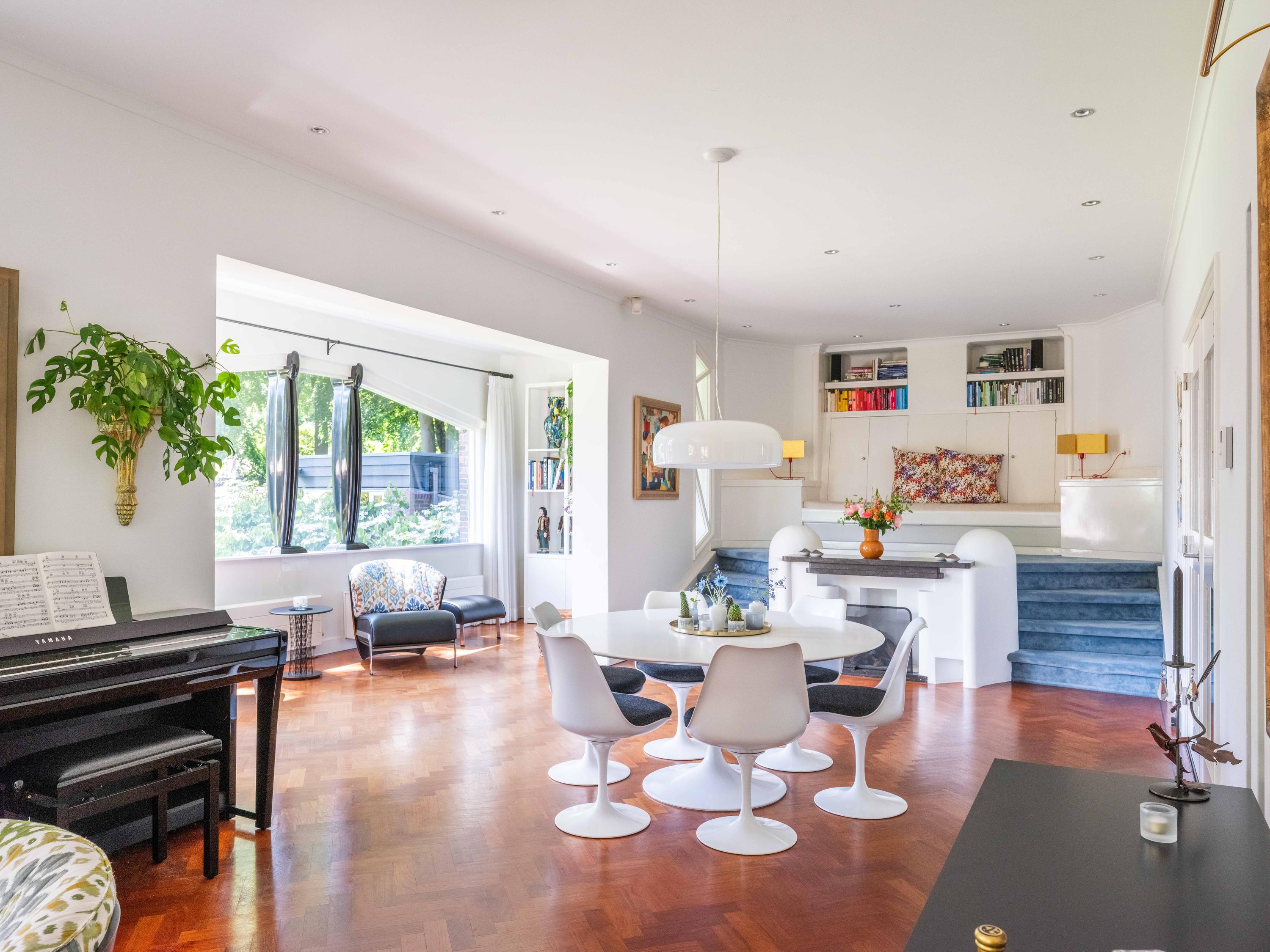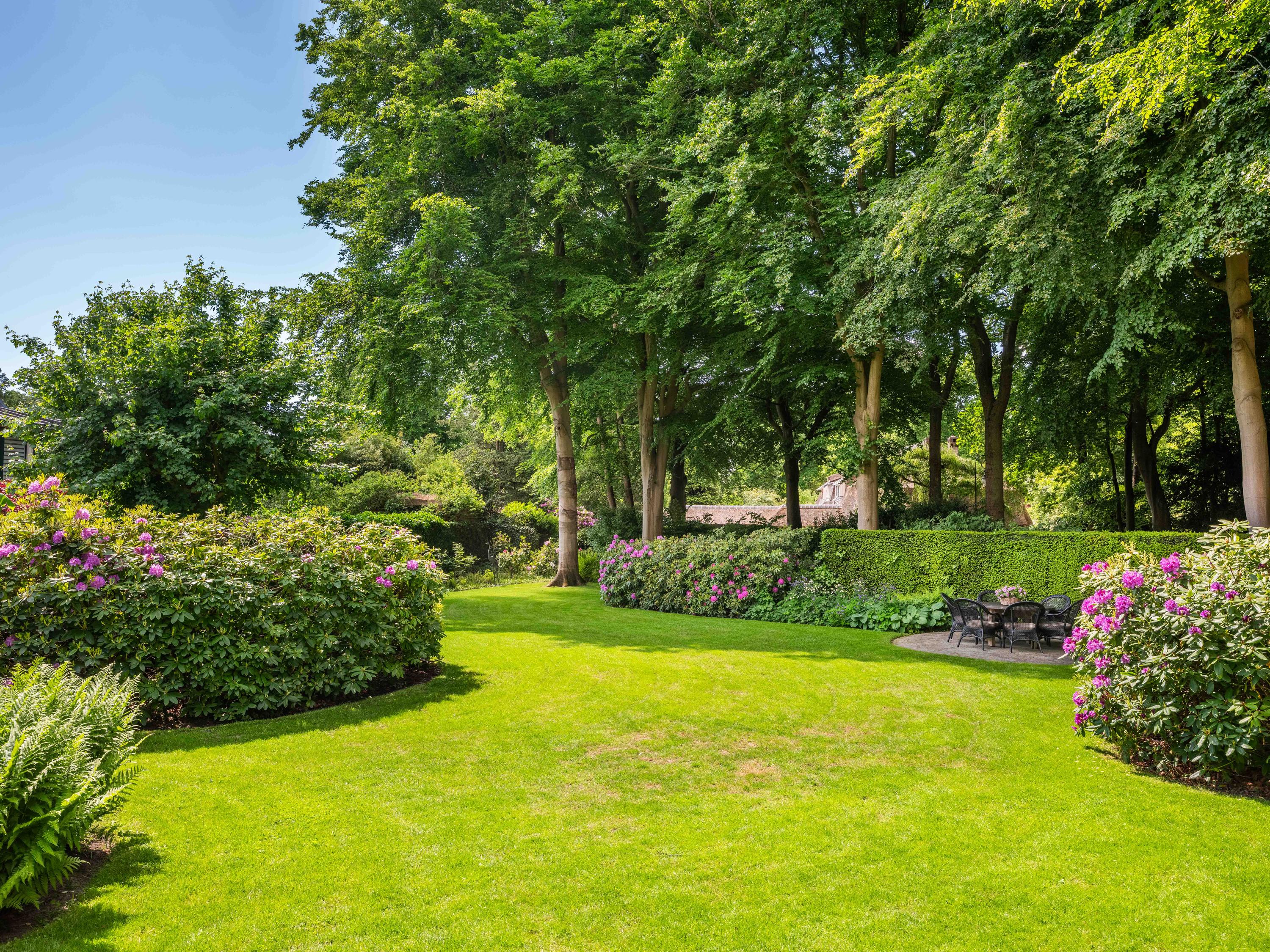 The 2,720 m² plot is enveloped in flowering borders and monumental trees, with a detached garden cottage and entrance house—reminiscent of a moored sloop—both restored in period style. This villa for sale in Bergen invites a life of quiet dignity, architectural provenance, and seclusion, in harmony with the heritage of Park Meerwijk.
