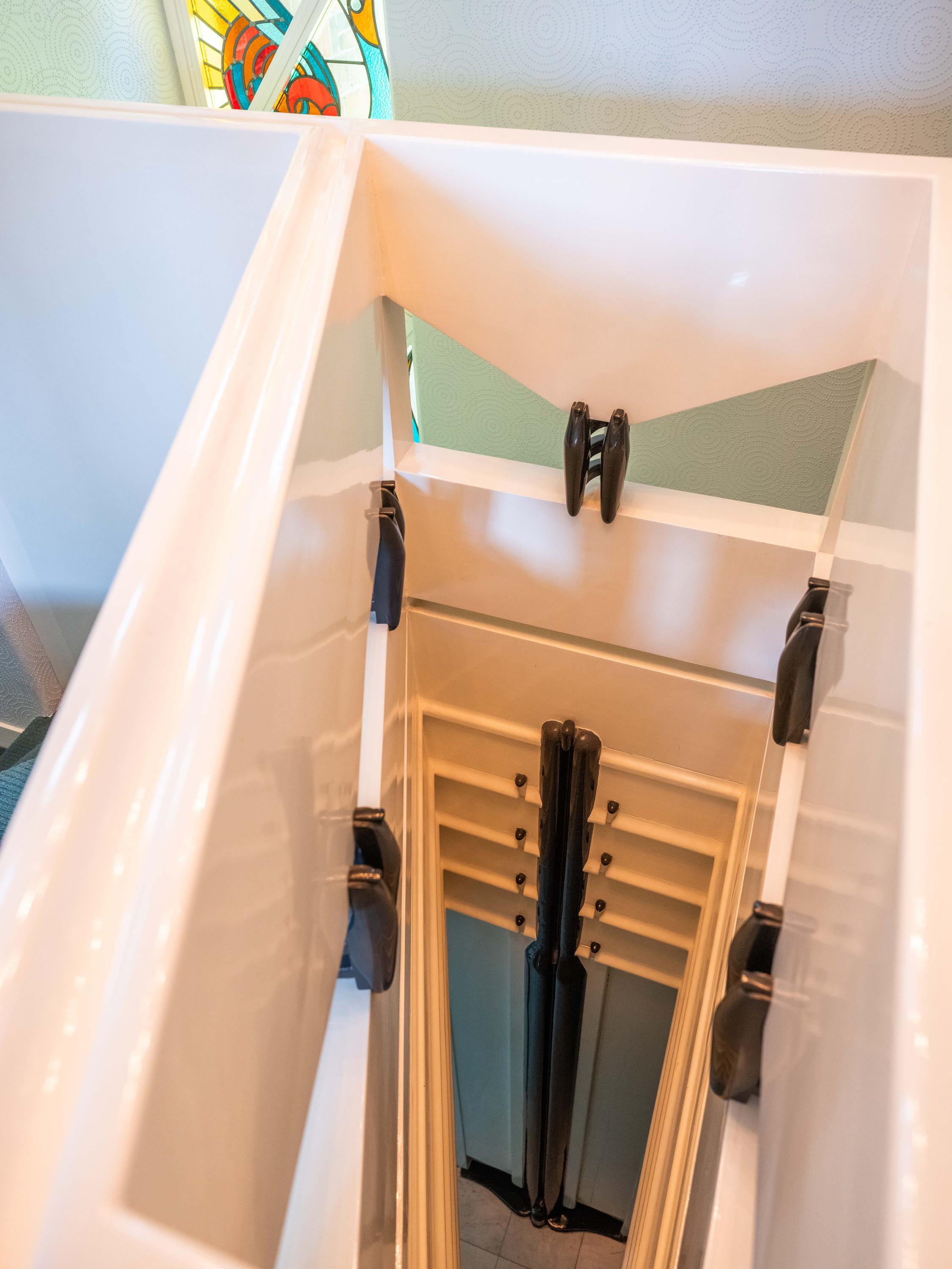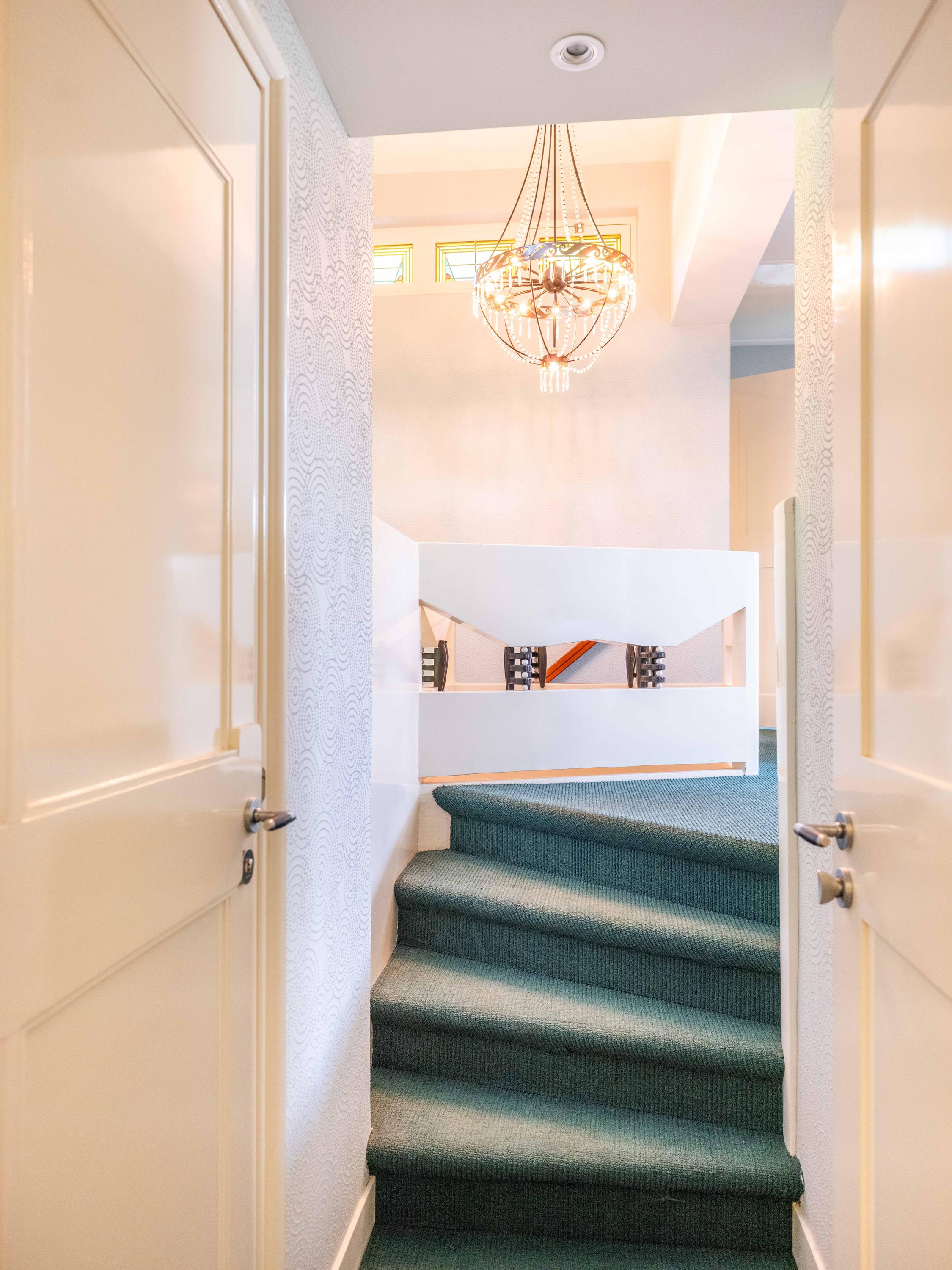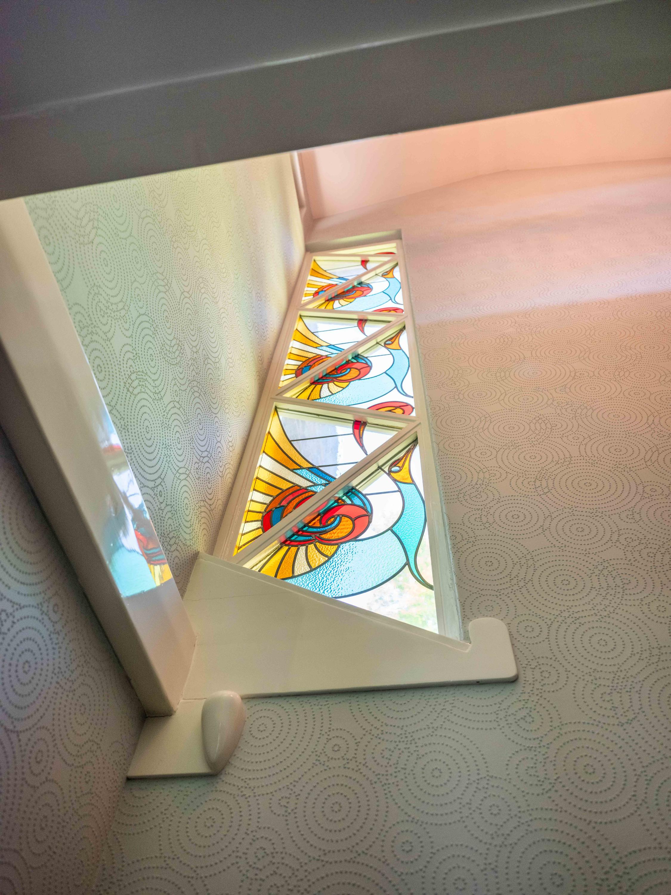 The layout unfolds behind a winding path carved through privet hedges, granting privacy and a sense of arrival. Entering via the concealed door, guests are drawn through a hall with cloakroom, ascending staircase and cloakroom, then into a living space framed by French doors, fireplace, and the sculptural 'wheelhouse'—a raised, monumental feature. Parquet floors, curved masonry, stained glass and Belgian bluestone create a tangible interaction of material and light.