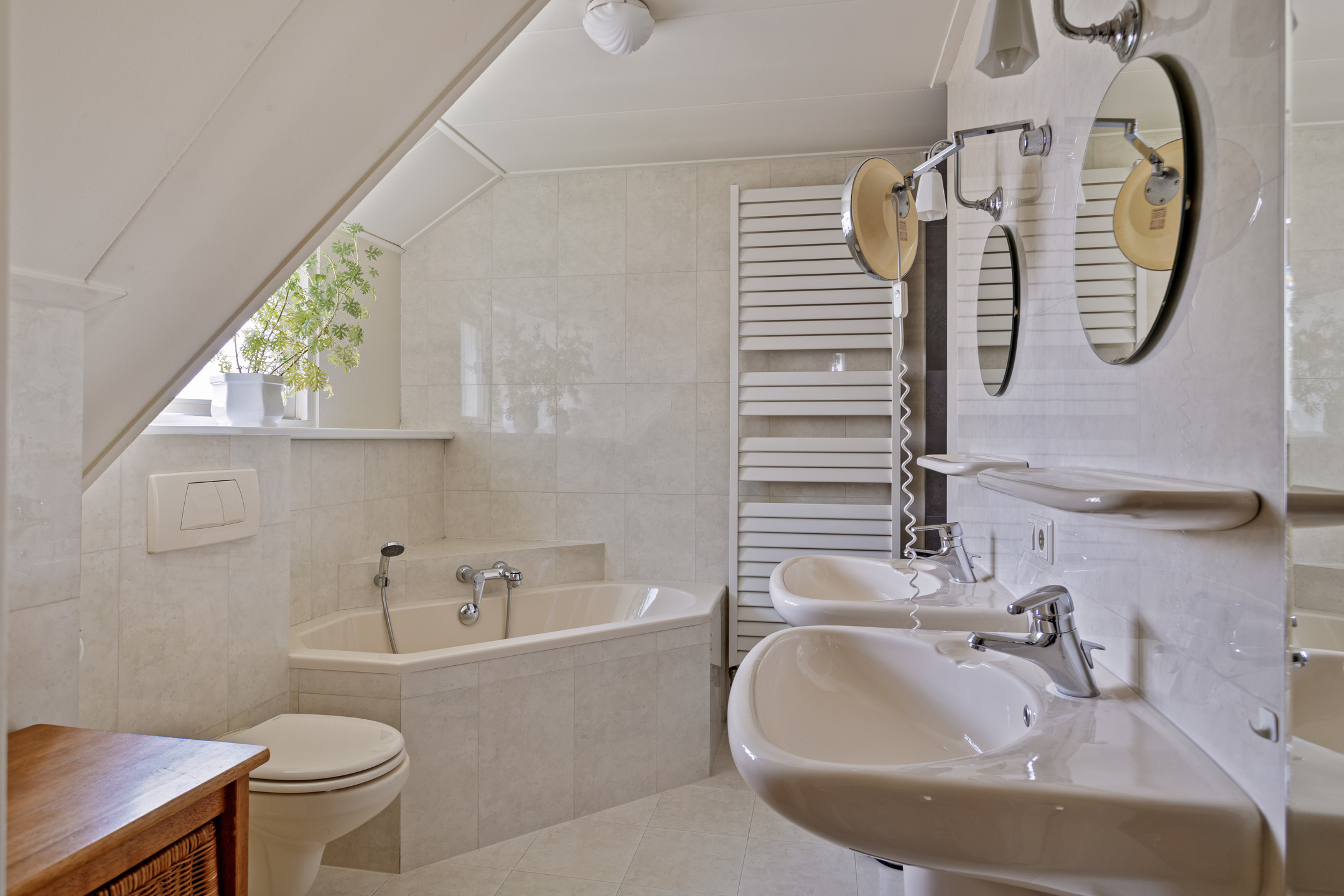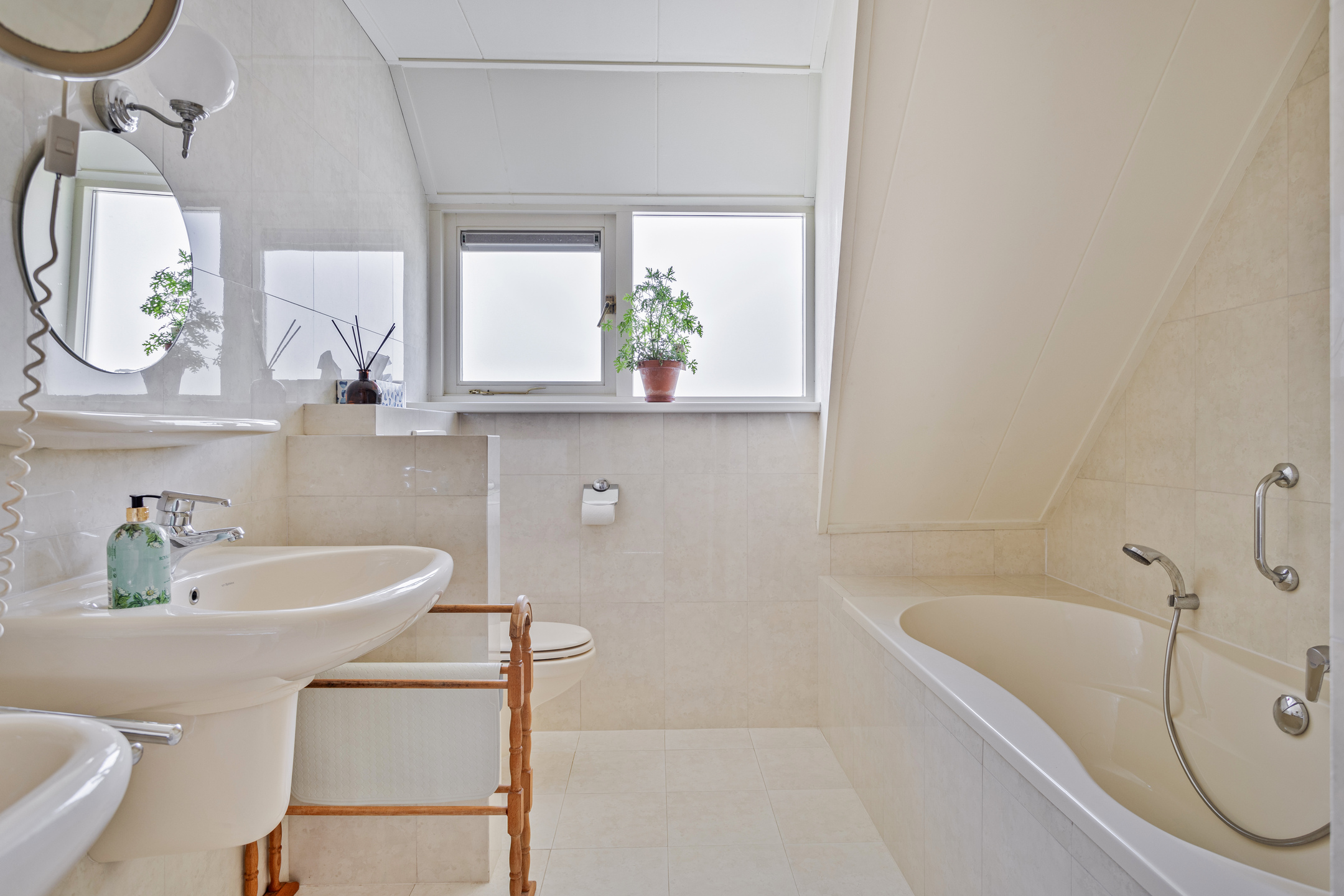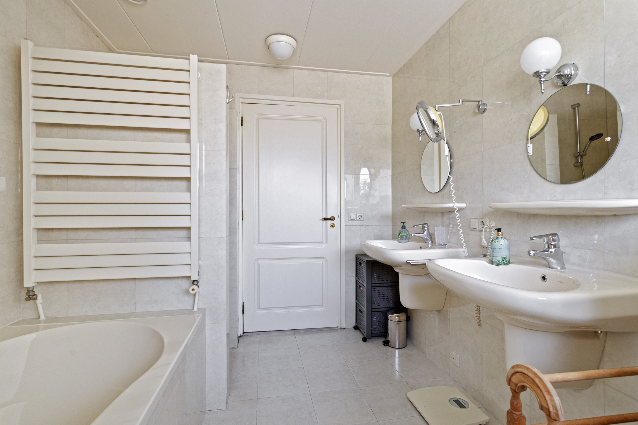2e badkamer, betegeld en voorzien van een ligbad, inloopdouche, wandcloset, dubbele wastafel, designradiator en een dakkapel;