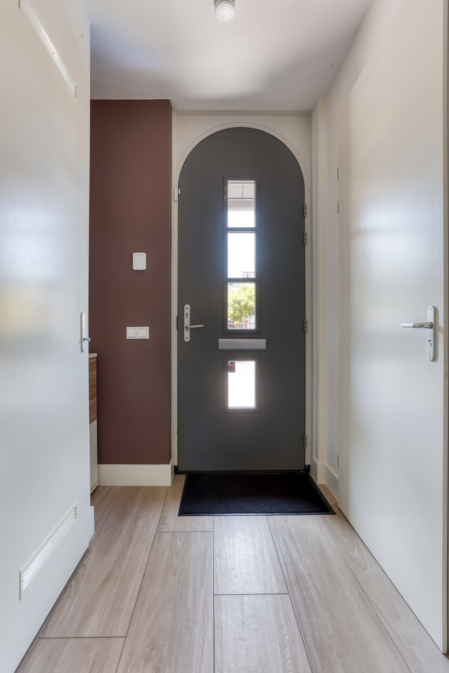 Entrance hall with toilet, meter cupboard, staircase to the first floor, and access to the living room.