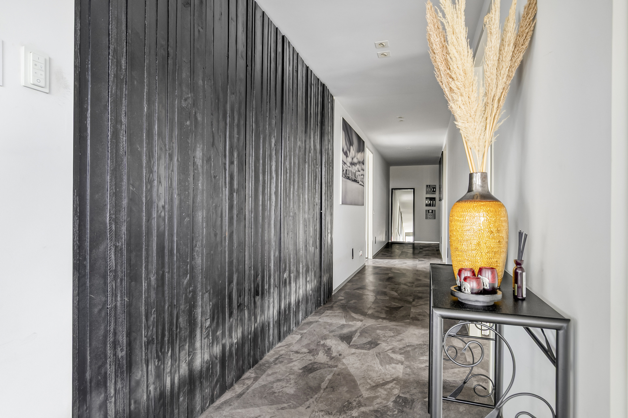 Secured main entrance with elevator access to the 4th floor. Internal access to the penthouse, spacious hallway with toilet, laundry room, access to all rooms, and a large built-in closet.