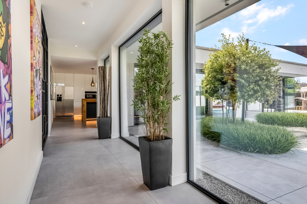 Secured with an electric double designer gate. The design elements of the gate are reflected throughout the property.