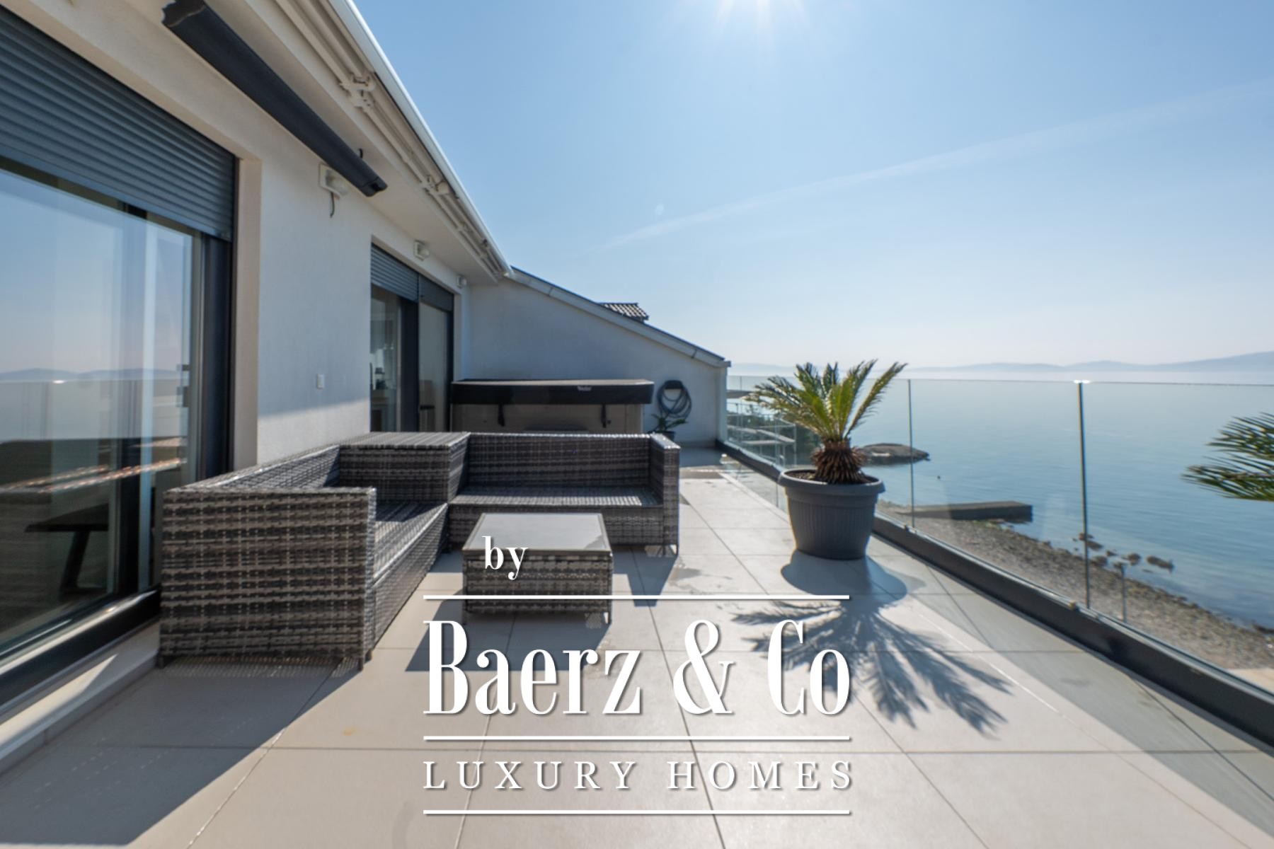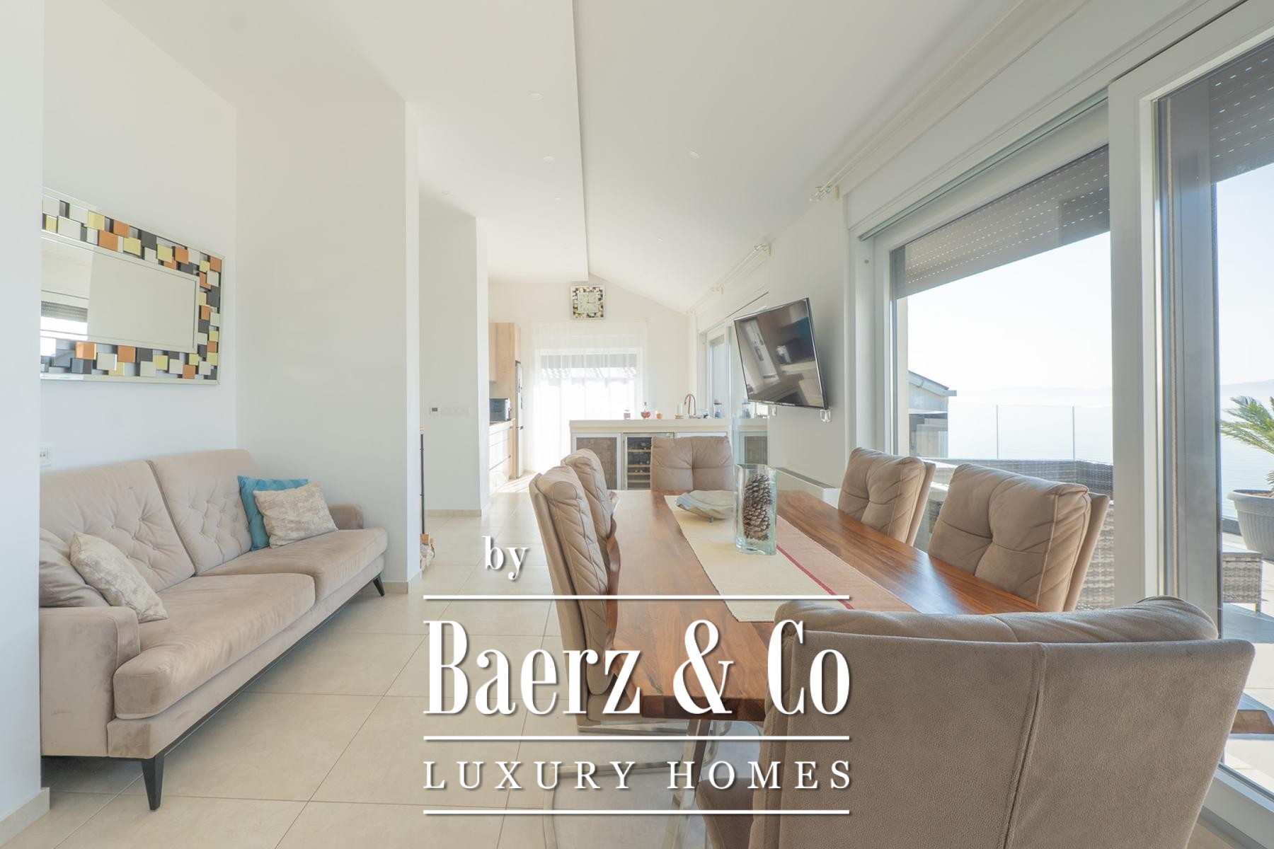 Penthouse Bibinje offers a rare harmony of privacy, space and location, set in the first row by the sea. This penthouse, with a total living area of 153 m², is designed for those seeking both tranquility and proximity to the Mediterranean coastline. The apartment is composed of a light-filled living room connecting seamlessly to the kitchen and dining area, enhanced by two bedrooms and two bathrooms, each space oriented for comfort and daily ease.