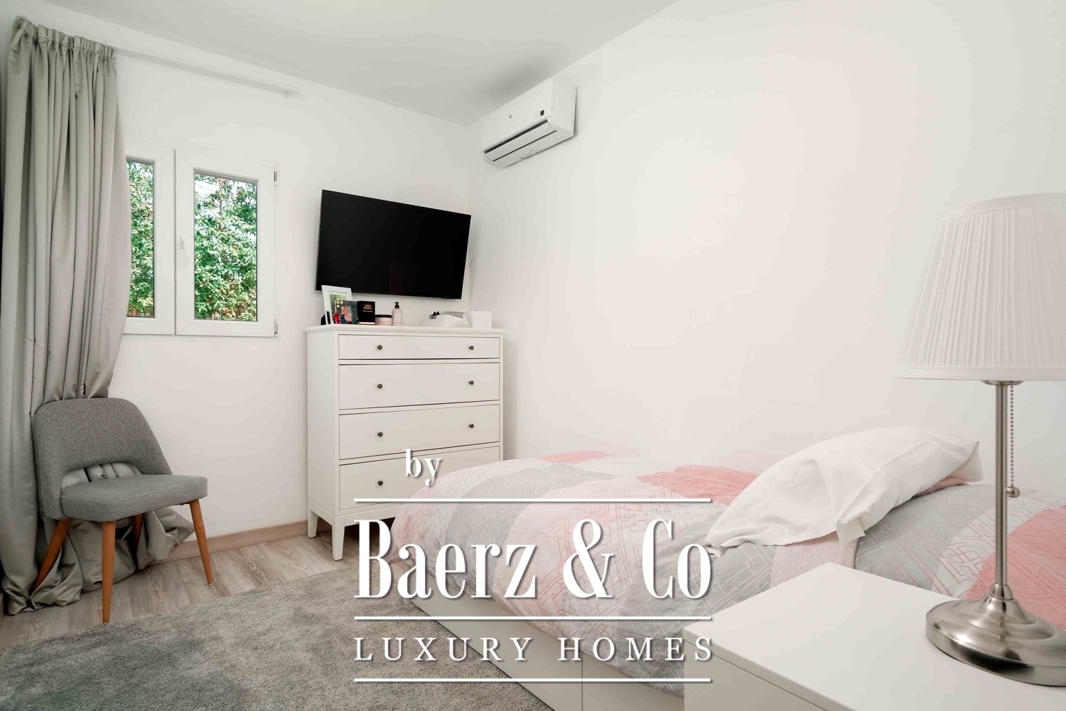 Set within an 11,000 m2 plot, the estate features panoramic views of the Tramuntana mountains and a seamless indoor-outdoor connection. Mediterranean light fills each room, while the grounds invite leisurely days beside the 12 × 6 m saltwater pool or evenings in the al fresco kitchen equipped with barbecue and pizza oven. Lush gardens with twelve varieties of fruit trees and an automated irrigation system surround the terraces, creating an atmosphere of cultivated ease.
