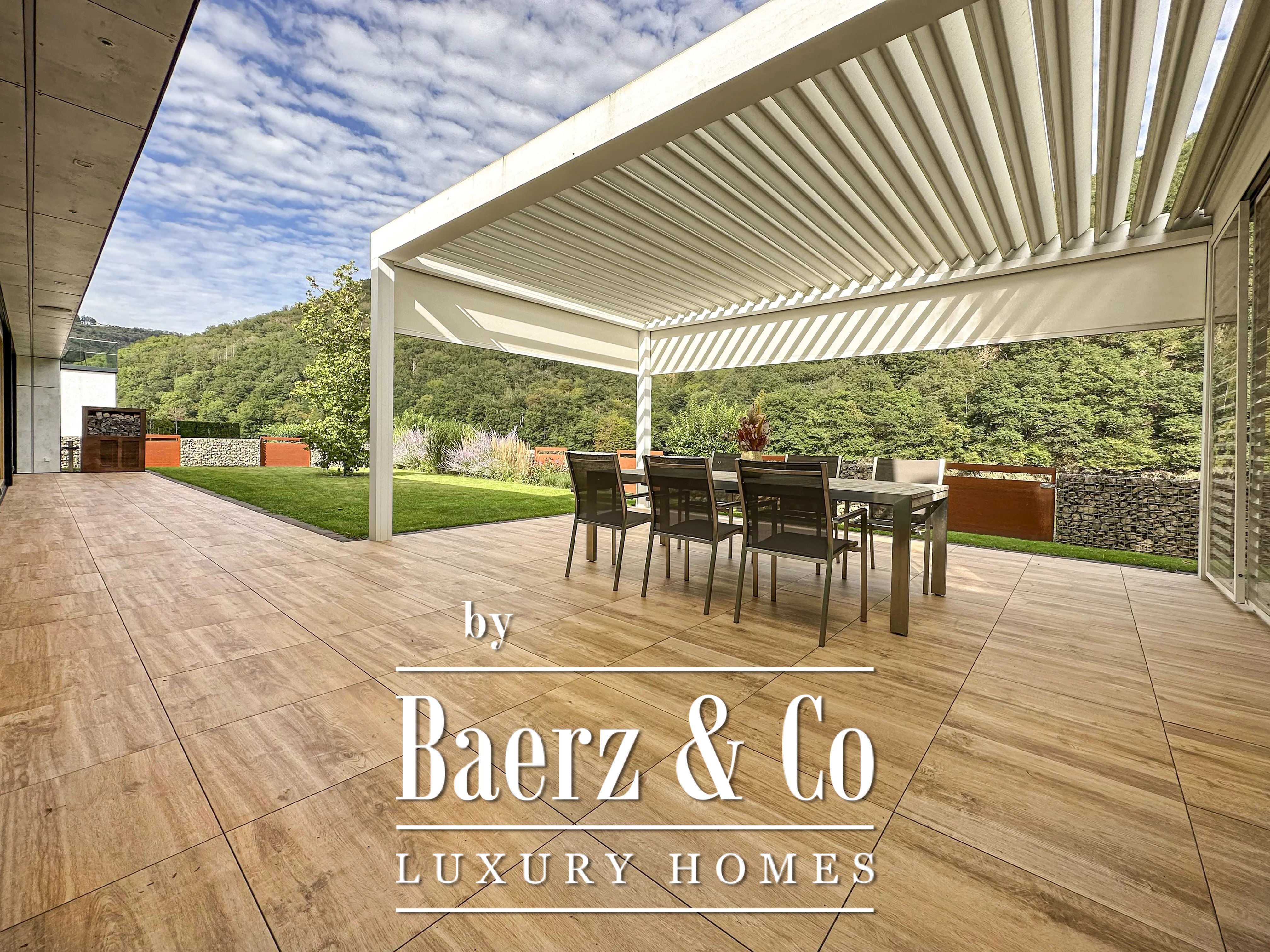 The interior is carefully appointed with elegant furnishings, a cozy fireplace and a Jacuzzi for relaxation. Technological equipment includes a connected thermostat, fiber optics for fast internet connection, and a videophone for security. The fully equipped kitchen features all modern appliances such as an oven, microwave and dishwasher.