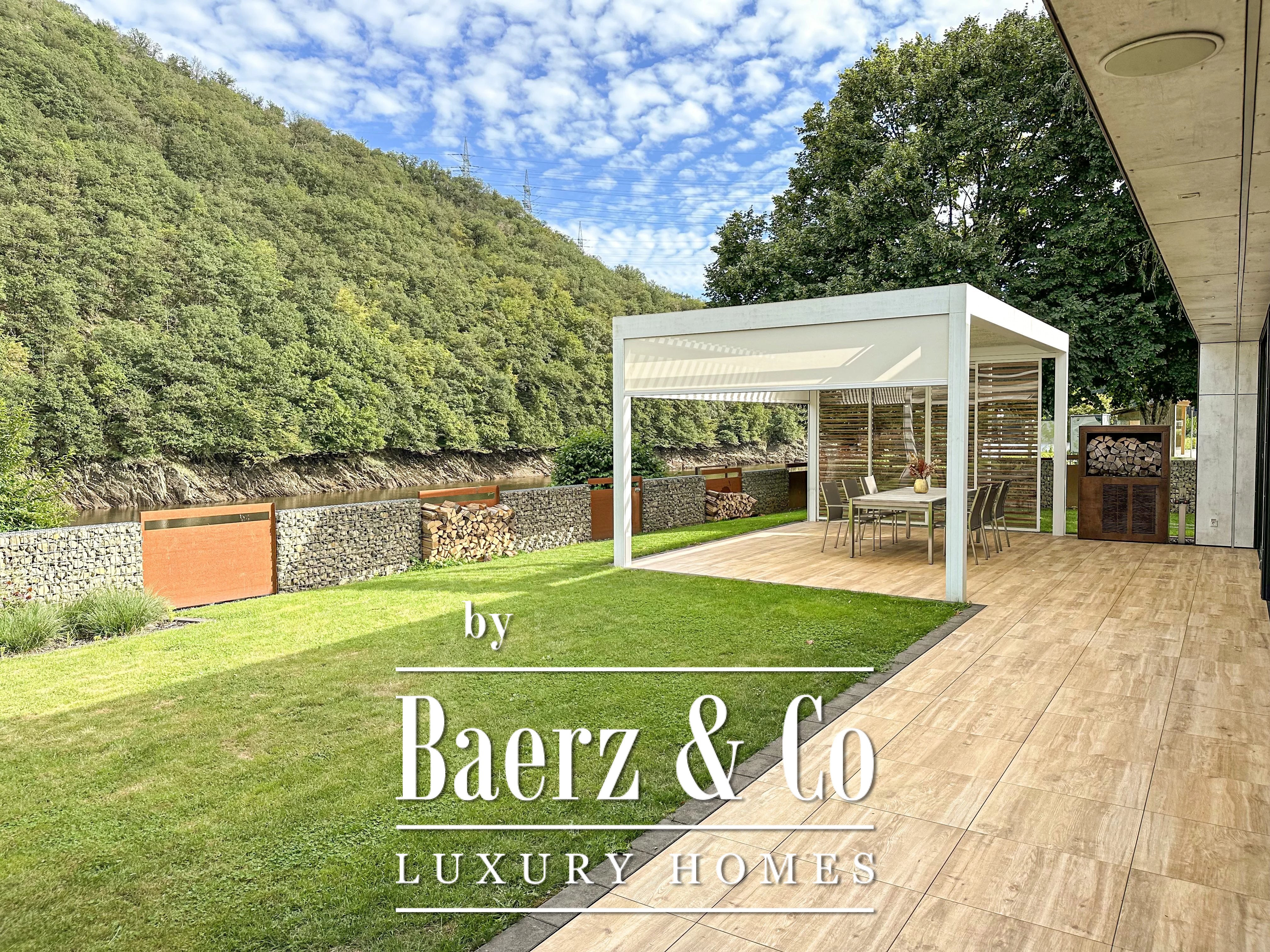 This bungalow Bivels Luxembourg offers a measured approach to riverside living. Arranged across 138 m² and set within a 600 m² plot, the property comprises three bedrooms and six rooms, providing a calm and refined environment. Large sliding windows welcome light and open to river and countryside views that form the rhythm of daily life.