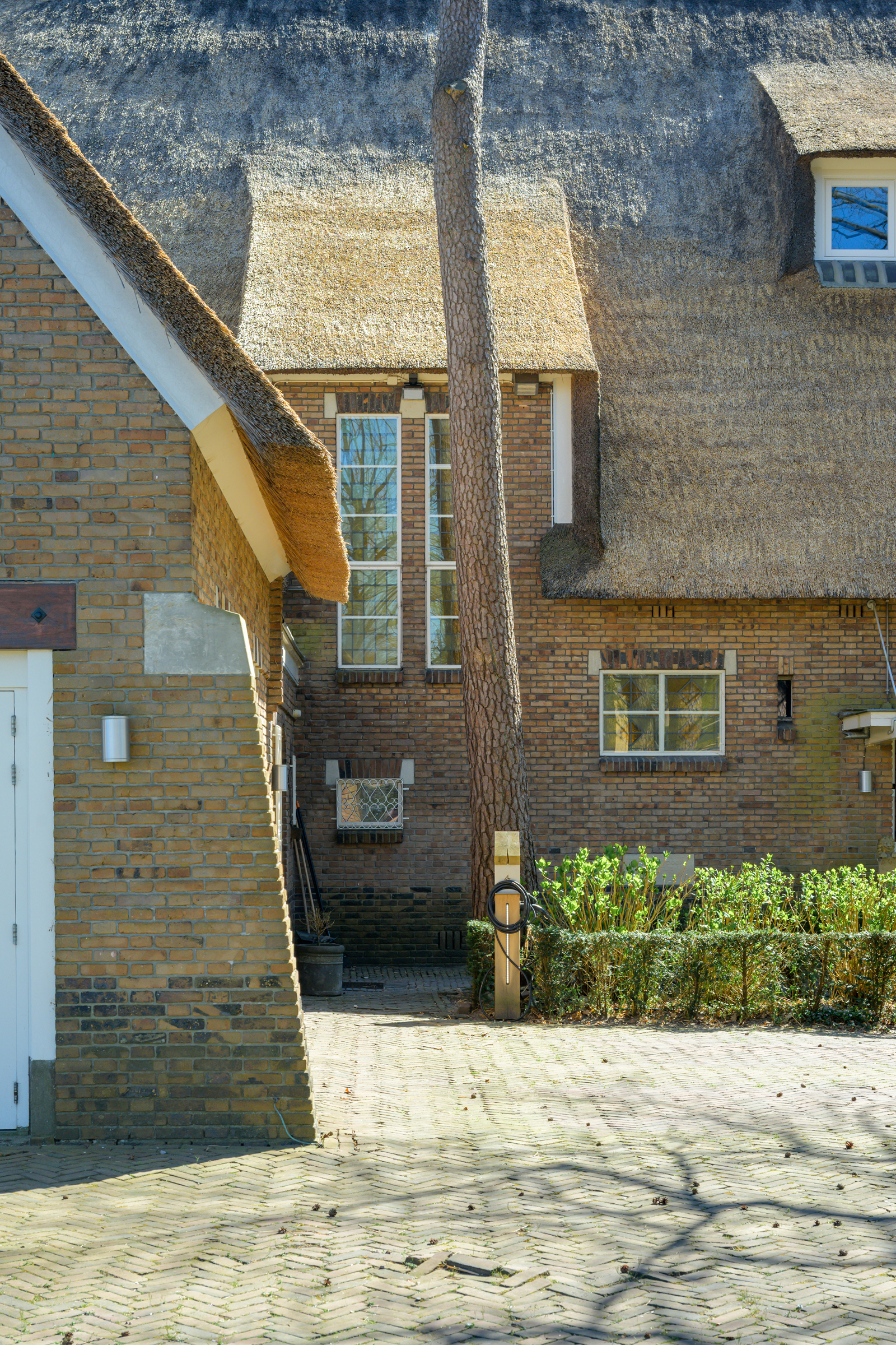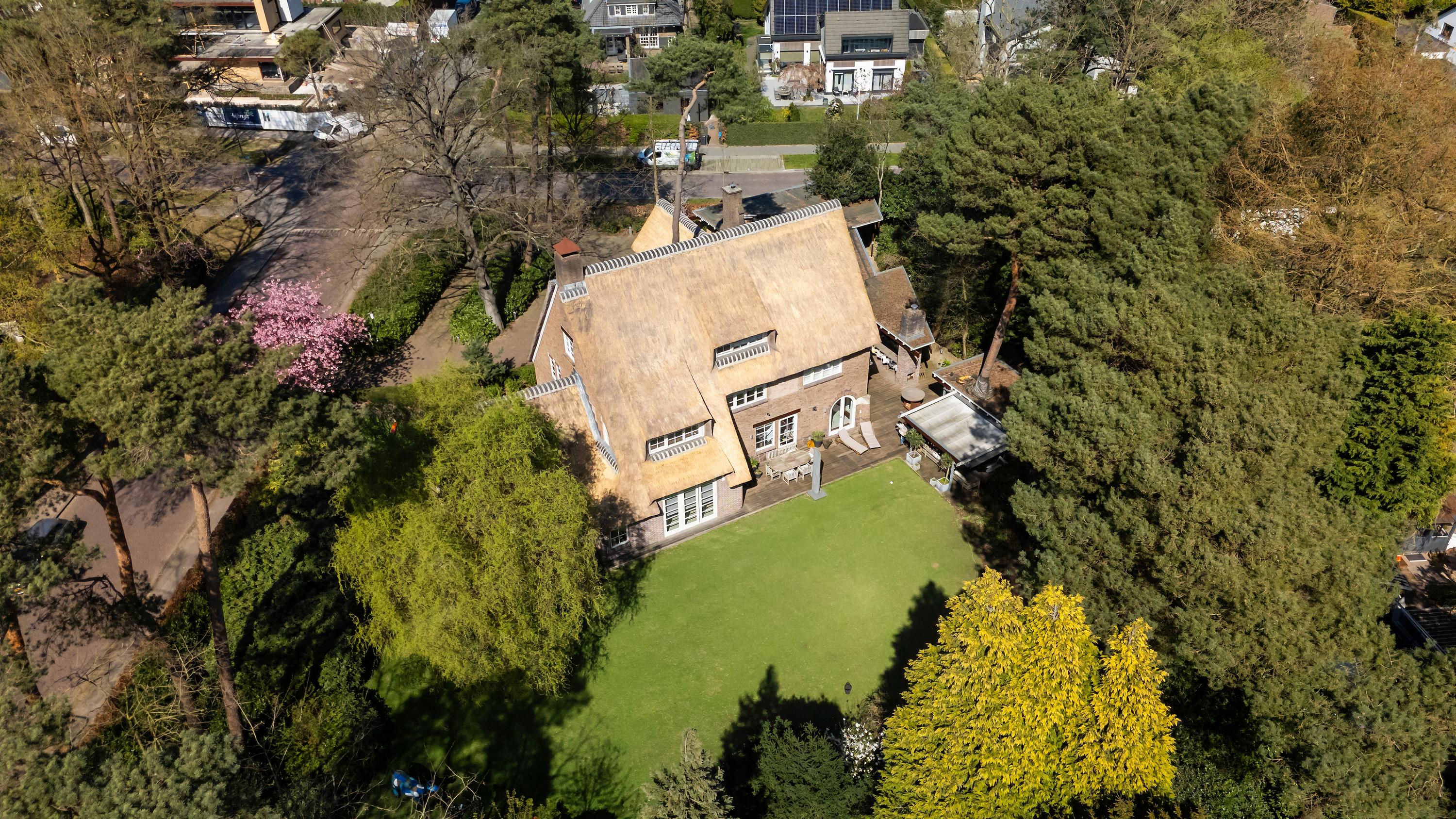 Very unique, perfectly maintained, thatched country house with, among other things, a luxurious wellness area with indoor swimming pool and fantastic outdoor space, situated at a prominent point in the middle of the popular and stately residential area "Ruitersbos" with its beautiful trees and within walking distance of the Mastbos.