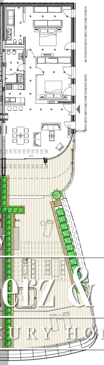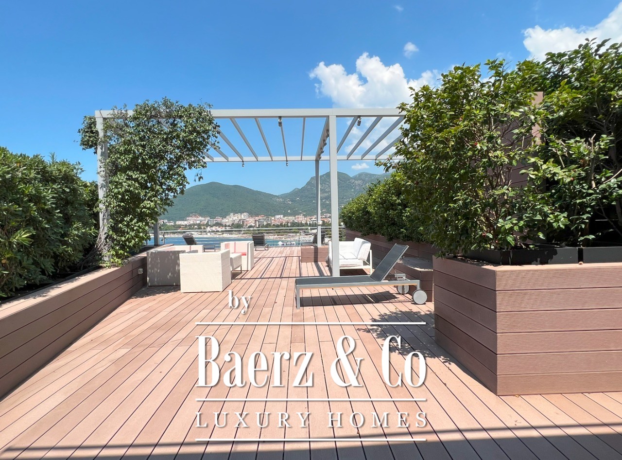 Structure of the apartment: hallway, living room with kitchen and dining table, 2 bedrooms, 2 bathroom and a large rooftop terrace. The apartment has a view of the sea and the view of the mountains that surround it. The apartment can be bought furnished and unfurnished. The price of furniture is 30 000e.