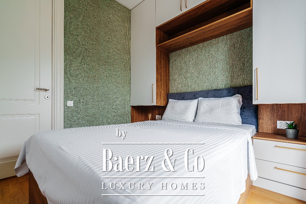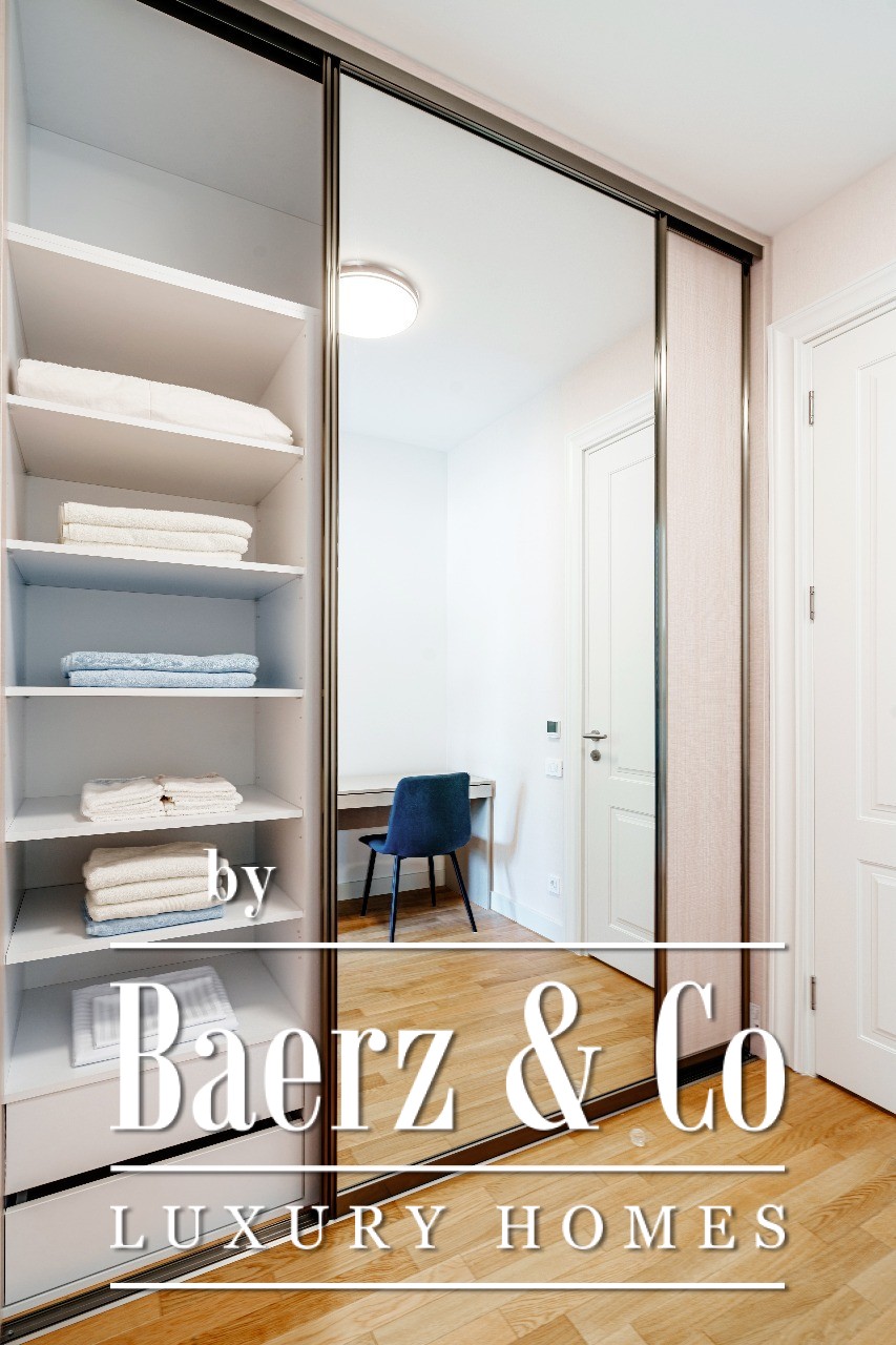 The building has 14 floors, while the apartment is on the 11th floor. It offers outstanding amenities, including an indoor and outdoor pool, three different saunas (Russian, Finnish, and Swedish), a gym, a spa center, a restaurant, and is part of a luxurious 5-star hotel. The building has reception area for tenants and guest management. It is connected by an asphalt road to the main road.
